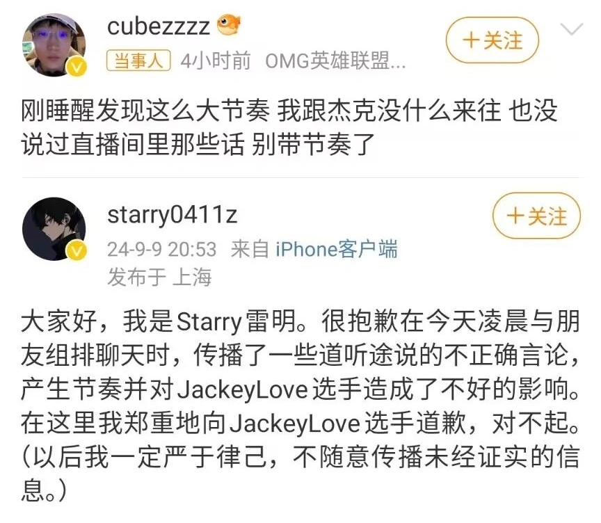 距离LOL天下赛到来,还有快要半个月的时间,近来的休赛期,各人应该都在看解说杯,Letme战队0-4开局,革新了本年解说杯最差成绩,照这个势头输下去的话,Letme队应该是无缘线下赛了, 现在面对被镌汰的队伍,除Letme队之外,Icon队、Zzm队成绩也很差,一个1-3一个1-2。 除了上述三队,剩下的队伍,晋级线下赛的可能性都不小,领跑积分榜的957、狼X队,在拿到4分之后,已经确定晋级了,排名在第3至第6的四队,现在都是2分,只剩四个名额的环境下,竞争照旧比较猛烈的,垫底的两队,还生存晋级盼望,但后续再输的话,就没有去线下赛的机会了。 白色月牙发文怒撕Ning王解说杯固然是娱乐型赛事,但也有不少队伍,请来了专业锻练作引导,如比姿态队,就邀请了前TES、LNG主锻练白色月牙,不外在近日,BYSS和Ning爆发了辩论,Ning在观看比赛时,直言白色月牙是“野鸡锻练”,结果对方气愤了,直接发文开撕:你是不是有什么大病,先把游戏看明确。 解说杯的这波互撕节奏,确实是Ning口无遮拦引发的,不外BYSS的执教本领,老观众应该都知道是什么水平,固然带队拿过冠军,但TES和LNG粉丝都不认可他,被开团之后,NIng回应:我熟悉姿态,BSYY也熟悉,他可以要接洽方式,私下给我一阵输出,都发微博了,我还怎么回应? OMG辅助造谣JKL赌博正在备战环球总决赛的TES,在近日也突然爆发节奏,下路的JackeyLove选手,被OMG的现役辅手Starry造谣赌博,雷明在跟小草包等人组排时,由于不知道有人正在直播,聊着聊着,就聊到了赌博上面,背面语出惊人,说了一句:Cube跟我说,JackeyLove玩德州,一把就输了几百万。 有人提示小草包在直播,爆料人Starry直接被吓到,赶忙让小草包关直播,但已经为时已晚,JKL赌博的谎言,其着实客岁7月份,就已经被带过一次节奏,其时正处于亚运会选人阶段,水子哥和369,在被造谣之后,就由于身材原因,不得不放弃了亚运会参赛资格,一度引发了不小的争议。 Cube告急辟谣,雷鸣发文致歉Starry这番言论一出,直接就把自己、哥哥、Cube三人一起奉上了热搜,躺枪的Cube得知消息后,第一时间发文澄清:刚睡醒就发现这么大节奏,我跟杰克没什么往来,也没有在直播间里说过那些话,然后命令各人别带节奏,而赌博变乱的造谣者Starry,后续也发微博向JKL选手致歉。 雷明致歉声明如下:很歉仄本年破晓与朋侪组排谈天时,流传了一些耳食之闻的不精确言论,产生节奏并对JKL选手造成了不好的影响,谨慎的向他致歉,作为职业选手、公众人物,造谣偕行确实挺离谱的,以后语言,照旧得深图远虑,嘴上口嗨别人又拿不出证据,但是要吃状师函的。 结语:Ning王和白色月牙互撕这事儿,确实是Ning不隧道,他自动调侃别人是“野鸡锻练”,被发文回怼之后,居然还想让别人自动找自己息争,说实话挺过分的,天下冠军的谱,摆的有点太大了,口嗨别人,也得有个度啊,而且跟人家都不熟,就直接人身攻击,属实有点难绷。 对于水子哥被造谣赌博,你们怎么看呢? 接待留言讨论! |