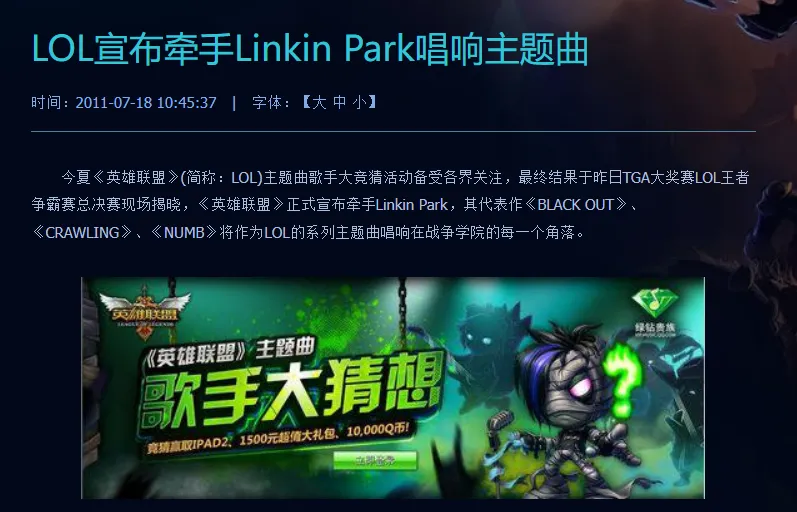 9月10日,拳头游戏宣布了豪杰同盟2024举世总决赛主题曲的发布时间。今年的主题曲和MV定于9月24日亮相,即入围赛开赛的前一天。这标志着天下赛主题曲发布时间史上最晚,通常这类主题曲会提前数天乃至两周发布,以预热年度电竞盛事。今年的延迟发布大概意味着MV制作上投入了更多心血,究竟T1和Faker应该是今年主题曲的叙事主角。 今年的举世总决赛重返欧洲,关于主题曲的具体信息尚未公布。现在,官方仅发布了一张预报图,图中的金色皇冠与佛耶戈的皇冠颇为相似,而今年的举世总决赛皮肤正是冠军佛耶戈。这不禁让人推测,佛耶戈大概会在MV中占据一席之地。 别的,知名摇滚乐队林肯公园近期重组,而豪杰同盟赛事官方在9月6日对林肯公园的干系信息在推特和Instagram上举行了复兴,均利用了“皇冠”心情,这引发了外界的广泛推测。许多玩家举行分析后以为,林肯公园大概会成为今年举世总决赛主题曲的演唱者。sara很等待豪杰同盟能林肯公园相助,带来一首摇滚十足的电竞主题音乐,新的女主唱气力也不错。 现实上,林肯公园与豪杰同盟有着肯定的接洽。自2014年和梦龙乐队相助了《兵士》开始,拳头游戏便开始约请其他音乐人制作主题曲。在此之前,举世总决赛还处于探索阶段,连赛制都没有确定下来,更别说天下赛主题曲。但在2011年7月,豪杰联友邦服即将推出之际,国服筹谋举行了“LOL主题曲歌手大料想”运动,让玩家投票选择主题曲歌手。 最终,林肯公园击败了飞儿乐队和五月天,成为LOL主题曲歌手。这一方面是由于许多游戏视频利用了林肯公园的歌曲作为配景音乐,另一方面,林肯公园当时也是热门IP《变形金刚》电影的演唱者。腾讯在TGA大奖赛豪杰同盟王者争霸赛上宣布了这一结果,并宣布与Linkin Park相助,利用其代表歌曲《BLACK OUT》、《CRAWLING》、《NUMB》作为豪杰同盟的系列主题曲。 此中,《NUMB》因其高传唱度被部门玩家误以为是林肯公园为豪杰同盟特别创作的主题曲,只管这首歌早在2003年就已发布。2011年7月,腾讯将其选为豪杰联友邦服主题曲。这首歌曲并非S1主题曲,由于2011年举世总决赛在6月就已结束,而拳头游戏直到2014年才开始正式制作举世总决赛主题曲,S1至S3期间并不存在举世总决赛主题曲。拳头游戏自2013年起开始认真制作音乐,《双城之战》的创作者Linken开始为豪杰制作主题曲和MV。 只管拳头游戏从未与林肯公园正式相助,但《NUMB》的知名度极高,不光在国服成为LOL主题曲,在国际上也是许多豪杰同盟视频的配乐。因此,假如林肯公园此次复出,拳头游戏大概会与他们相助制作举世总决赛主题曲。同时,也有粉丝分析指出,林肯公园大概参加了《双城之战》第二季的配乐工作,我们不久就能验证这些信息的真实性。 |