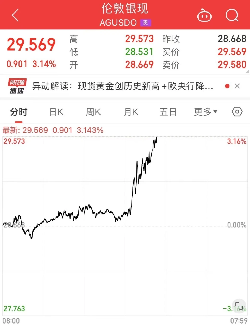 每经编辑:张锦河 北京时间9月12日深夜,黄金忽然暴涨,现货黄金连续上扬,革新汗青新高至2550美元/盎司。 制止发稿,国际现货黄金报2554.07美元/盎司,再创汗青新高,日内上涨1.68%;白银现货报29.569美元/盎司,日内涨超3%。 国际原油代价也快速拉升。制止发稿前,布油涨2.52%,报71.94美元/桶;美油涨2.82%,报68.48美元/桶。 美股三大指数微涨。道指上涨0.02%,纳指上涨0.65%,标普500指数上涨0.34%。 美股大型科技股涨跌不一。英伟达、谷歌涨超1.5%,Meta上涨1.40%,特斯拉上涨0.05%,微软下跌0.53%,苹果下跌0.27%,亚马逊下跌0.01%。 欧洲央行公布:降息消息面上,据央视消息,当地时间12日,总部位于德国法兰克福的欧洲央行决定,下调存款机制利率25个基点至3.5%;下调再融资利率60个基点至3.65%;下调边际贷款利率60个基点至3.9%。 本年6月,欧洲央行把三大关键利率均下调25个基点,为客岁10月制止加息以来首次降息。7月,欧洲央行决定维持欧元区三大关键利率稳定。 欧洲央行管理委员会体现,根据对通胀远景、潜在通胀动态和钱币政策传导力度的最新评估,如今是时候接纳步伐来和缓钱币政策限定的程度。 另美国8月PPI数据、9月7日当周首次申请赋闲接济人数也相继出炉,市场广泛预计美联储将在下周集会上降息25个基点,预计美联储2024年年内总计降息幅度为100个基点。 美国赋闲金、PPI数据出炉据券商中国,北京时间9月12日晚间,美国劳工部公布的数据表现,美国8月PPI同比增长1.7%,为自2月以来最低;环比增长0.2%,高于预期的0.1%;8月核心PPI同比增长2.4%,符合预期,与前值保持同等;环比增0.3%,高于预期;8月终极需求服务代价涨0.4%,7月跌0.3%, 另据美国劳工部公布的数据,美国9月7日当周首次申请赋闲接济人数23万人,预期22.7万人,前值22.7万人,这是三周以来的首次回升,与雇用渐渐放缓的趋势同等。 别的,美国至8月31日当周续请赋闲金人数为185万人,小幅增长0.5万人。续请赋闲金人数在7月份飙升至2021年底以来的程度后,到8月份大多呈降落趋势。这一降落与上个月赋闲率的降落同等。 金融咨询公司Zeal Intelligence的首创人亚当·汉密尔顿(Adam Hamilton)体现,黄金代价达到了亘古未有的程度,在不到11个月的时间里上涨了38.7%,不绝创出汗青新高。随着美国投资者从传统股票转向黄金,以及人工智能(AI)泡沫破碎,金价或将进一步上涨。 美联储9月利率决定下周将至,多家机构推测美联储将在9月降息。 据第一财经,中金以为,8月通胀数据根本锁定美联储在9月降息25个基点,但不支持大幅宽松。开源证券也以为,当前的数据对于美联储9月降息并不构成拦阻。 中信证券研报体现,预计年内美国通胀同比将大抵稳固,仍以为租金通胀降温趋势并非出现反转,维持美联储年内降息三次、每次25bps的推测。 逐日经济消息综合自央视消息、券商中国、第一财经、公开信息 |