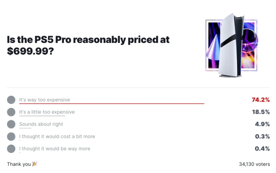 《黑神话:悟空》发售到现在差不多一个月了,但热度还在。 固然 3k 左右的代价,照旧比花 7k、8k 组一台高性能电脑打游戏,来得更加划算。 但现在这二手价……我还不如等 Pro 款或者下一代 PS6 呢,对吧。 这波突袭来得很突然。 整场发布会不到 10 分钟,主打一个简单直接。 表面根本连续 Slim 款的纤薄机身,但一条杠酿成了三条杠。 其他根本没怎么改。 图片泉源网络 既然是 Pro 款,性能升级肯定是重点。 从官方给出的先容来看,CPU 好像没有变,仍旧是 PS5 的谁人 8 核 Zen 2 处置惩罚器。 性能跟 AMD 锐龙 7 3700X 差不多。 固然对于游戏主机来说,GPU 的升级更加告急。 对比老款多了 67% 的盘算单元,渲染速度直接拉高了 45%。 理论上来讲,性能大概跟 AMD RX6800 显卡差不多。 官方乃至表现,PS5 Pro 的光追性能已经逾越了目前 AMD 的 PC 显卡。 在这项技能加持下,能够通过 AI 逐个像素分析,提拔画面有效分辨率,参加更多画细节。 这玩意儿有点儿像英伟达的 DLSS(深度学习超等采样)。 只不外索尼的 PSSR 是用 AI 加强画面,DLSS 是通过 AI 改善帧率。 整套组合拳下来,PS5 Pro 能够做到流通的 4K 分辨率 + 60fps 游戏画面输出。 固然前提是,游戏内容自己得支持这个画质结果,否则主机性能再猛也是白搭。 除此之外,PS5 Pro 的内存速度也提拔到 560GB/s,存储空间加大到 2TB。 别的还支持最高8K 分辨率、VRR(可厘革新率)、Wi-Fi 7 等规格。 但是,我要说但是了。 代价是这次的最大槽点。 国行代价临时没出,其他地域的版本代价看图。 反正全部都很感人,换算下来美版已经是最自制的了。 关键是这次 PS5 Pro 还砍掉了光驱版,只有一个数字版提供入手。 有媒体针对新机的订价问题,做了一项投票。 觉得「太贵」和「有点贵」的,一共占了约 92.7%。 组装一台和 PS5 Pro 设置靠近的 AMD 百口桶电脑,代价约莫在 863 美元。 相称于在 PS5 Pro 代价的底子上再添辣么 100 多美刀,就能全款拿下的水平。 你想啊,PC 醒目的变乱,可比游戏主机多得多。 咱们买游戏主机,不就是图它用更少的代价,也能得到高设置 PC 划一的游戏体验嘛? 固然,先定个高价,过一段时间看市场环境再调价,这种事儿索尼也不是没干过。 像 PS3,就由于友商 XBOX 360、Wii 卖得太猛,发布两年后自动贬价 100 美元。 锋潮评测室 一个值得让你吹爆的公众号 |