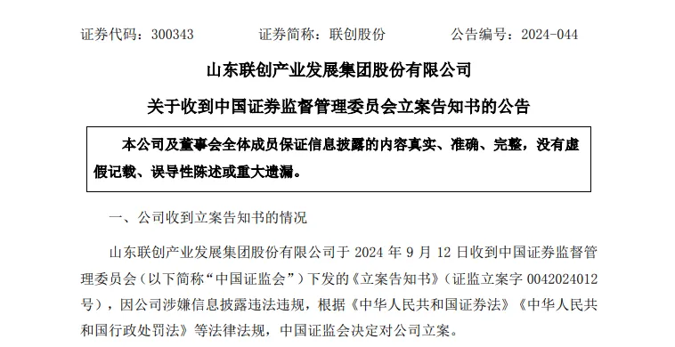 9月13日晚间,联创股份(300343)公告,公司于9月12日收到中国证监会下发的《备案告知书》,因公司涉嫌信息披露违法违规,中国证监会决定对公司备案。 公告披露,公司就上述备案调查事项举行了自查。 2022年11月,联创股份对外披露了山东省淄博市中级人民法院出具的(2022)鲁03刑初1号《刑事讯断书》,2023年10月公司对外披露了山东省高级人民法院出具的(2022)鲁刑终354 号《刑事裁定书》。 上述讯断认定联创股份此前收购的上海鏊投前股东孔刚等涉案职员在公司收购上海鏊投股权事项中存在条约诈骗行为。该事项导致公司获取的上海鏊投财政报表信息错误,导致公司从前年度财政报表部门项目存在不对。公司已对相干年度财政报表举行管帐不对更正及追溯调整,并约请管帐师事件所出具了相干审计陈诉。 除此之外,联创股份体现,制止公告披露日,经公司自查,现在没有其他根据法律法规应披露未披露的重大事项。现在,公司各项生产谋划活动均有序开展。 联创股份专注于含氟新质料的研发、生产和贩卖,现在业务形成了包罗根本配套质料、含氟制冷剂、含氟聚合物、含氟风雅化学品等在内的完备的氟化工产业链。 财政数据方面,8月28日,该公司披露2024年半年度陈诉体现,上半年公司实现营收3.93亿元,同比降落18.40%;归母净利润亏损1272.26万元,上年同期红利2376.31万元;扣非净利润亏损1966.33万元,上年同期红利1954.41万元。 现实上,本年5月,因信披违规,联创股份及相干职员还收到了山东证监局下发的警示函。 彼时公告体现,联创股份于2019年3月25日与北京信投签署《战略互助备忘录》,北京信投拟对公司控股子公司华安新材举行增资,累计金额不高出3.8亿元,后于2019年3月29日签署《增资扩股协议》。制止2019年12月31日,北京信投按协议现实付出增资款8888万元,并得到华安新材9.999%股权。公司仅于2019年4月9日披露了《关于签署战略互助备忘录的公告》,未实时披露《战略互助备忘录》签署环境及后续现实增资环境。 联创股份上述行为违反了《上市公司信息披露管理办法》第二条、第三十条、第三十二条、第三十三条的相干规定,山东证监局决定对联创股份及相干责任人李洪国、齐海莹、胡安智采取出具警示函的监视管理步伐,并记入证券期货市场诚信档案数据库。 除了联创股份外,尚有多家上市公司发布公告称,因涉嫌信披违法违规,遭证监会备案调查。 朗源股份(300175)9月13日晚间公告,收到中国证监会下发的《备案告知书》。因涉嫌信息披露违法违规,证监会决定对公司备案。 公告披露,经朗源股份自查,本次备案的缘故原由紧张是公司原控股子公司优世团结涉嫌到场虚假生意业务,公司前期已举行了积极整改。如后续存在尚未整改完毕的事项,公司将依法推行相干信息披露义务。现在,公司各项生产谋划活动均正常开展。 资料体现,朗源股份于2011年在创业板上市,公司紧张从事鲜果和干果莳植管理、加工、仓储及贩卖等业务。2018年,朗源股份跨界收购了优世团结控股权,结构数据中心业务。 不外,优世团结没有完成业绩答应,还连续4年造假。本年5月,朗源股份公告,拟将优世团结资产出售给上海虞长翊实业有限公司,生意业务对价8500万元。此次生意业务完成后,优世团结将不再纳入公司归并报表范围;公司2021年至2023年度非尺度审计意见涉及事项的影响将得以消除。 9月13日晚间,*ST银江(300020)也发布公告称,收到中国证监会下发的《备案告知书》,因公司涉嫌信息披露违法违规,证监会决定对公司备案。不外,公告并未指出*ST银江因何事涉嫌信息披露违法违规。 值得一提的是,本年5月27日,据浙江证监局官网消息,*ST银江及相干责任职员收到警示函。*ST银江于2024年4月30日披露的《2023年年度陈诉》体现,公司2023年净利润为亏损23395.1万元,公司未按规定实时披露2023年度业绩预告。 浙江证监局认为,*ST银江上述行为违反了《上市公司信息披露管理办法》第三条规定。*ST银江董事长王腾、总司理韩振兴、财政总监任刚要、董事会秘书吴孟立违反了《上市公司信息披露管理办法》第四条、第五十一条规定,对上述违规行为负有紧张责任。根据《上市公司信息披露管理办法》第五十二条规定,浙江证监局决定对*ST银江及相干责任职员分别采取出具警示函的监视管理步伐,并记入证券期货市场诚信档案。 |