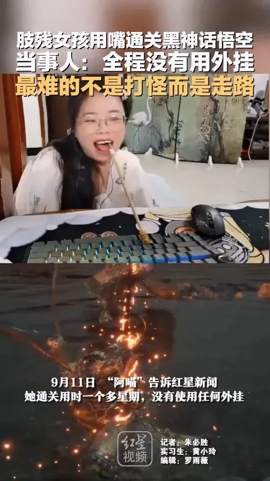 来自湖南常德的残肢女孩博主@阿喵的小生存分享了自己嘴叼筷子击败虎前锋的视频后引发关注。日前,博主通关《黑神话》后担当了媒体的采访,女孩表现自己全程没有利用修改器外挂,游戏中最难的部分不是打怪而是走路。 博主表现自己通关《黑神话》用时一个多星期,没有利用任何外挂。这个游戏对她来说最大的难度不是打怪,却是利用“悟空”走路。“阿喵”坦言小时间抱病导致骨骼变形、四肢活动停滞,现在和离异的母亲住在一起。“阿喵”说她的第一份工作是网络客服,由于身体不能长时间坐姿和收入极低,辞掉了这份工作。几年前她在朋侪的保举下,打仗了电脑游戏,成为了一名游戏主播。 |