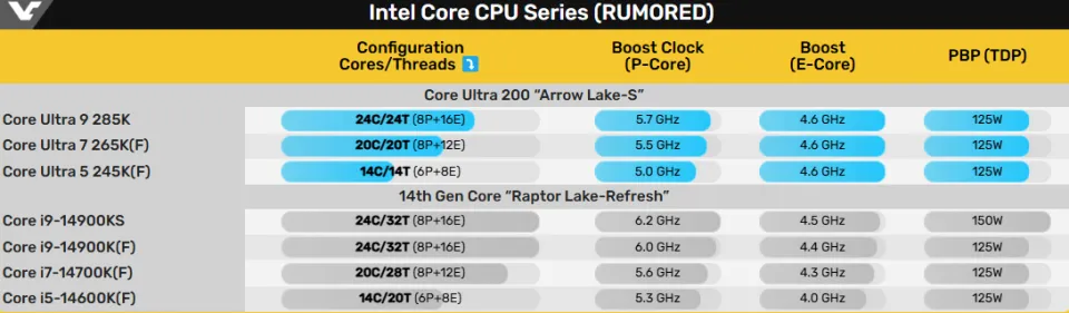 如今,AMD的新一代条记本电脑处理器Ryzen AI 300系列和台式机处理器Ryzen 9000系列均已正式发布上市,英特尔的新一代条记本电脑处理器Lunar Lake系列也已正式发布上市,如今唯一有挂念的是英特尔的新一代台式机处理器Arrow Lake系列(即Core Ultra 200系列)到底什么时间发布上市。 尤其是近期故意装新平台呆板的朋侪,都非常关注这个问题,想对比、相识AMD的Ryzen 9000系列和英特尔的Core Ultra 200系列到底谁性能更强,性价比更高。 关于Core Ultra 200系列处理器的正式发布时间,英特尔官方不停语焉不详,迄今尚未正式公布具体发布时间。坊间不停流传多种说法,之前有一种听说称将于10月17日发布,克日,香港媒体HKEPC 透露,发布时间将推迟至10月24日,请参阅上图。 ——HKEPC方面未透露发布时间推迟的具体缘故原由,但是鉴于该媒体的信誉良好,因此可信度较高。 据传英特尔将于10月24日发布Arrow Lake-S系列处理器中的“K”系列,总共有五款,分别是:Core Uitra 9 285K、Core Ultra 7 265K、Core Ultra 7 265KF和Core Ultra 5 245K。 预计该系列处理器中的非“K”系列将在几个月后发布,大概率将在CES 2025活动期间发布。 至于Core Ultra 200系列处理器的价格,根据如今已知的多种消息泉源来看,将大致和14代酷睿根本持平大概略贵,请参阅上图,这是加拿大某零售商公布的预售价格。 如今,环球很多零售商已经入库了Core Ultra 200系列处理器,而且已经在公开预售了,因此总的来看,Core Ultra 200系列处理器发布时间推迟属于“技术性调解”,影响不大,各人“不消怕”。 关于Core Ultra 200系列处理器的参数和价格,请读者在小编的主页上搜刮,这类文章小编之前已经写过很多,在此不再赘述。 谈起Core Ultra 200系列处理器的性能,如今坊间有一个关注核心: 它取消了多线程,内核数目和线程数目是对应的,总线程数目比14代酷睿处理器少了不少(请参阅图三),新架构和新工艺能否补充、抵消这种劣势?实在际性能(尤其是多线程性能)到底怎么样,能不能打?能不能比上一代有显着提升? 如今看来,这是最值得关注的问题,但是暂时坊间尚无比力权势巨子、客观的评测可以回复这个问题,小编将在第一时间分享更多干系动态和爆料,敬请关注。 |