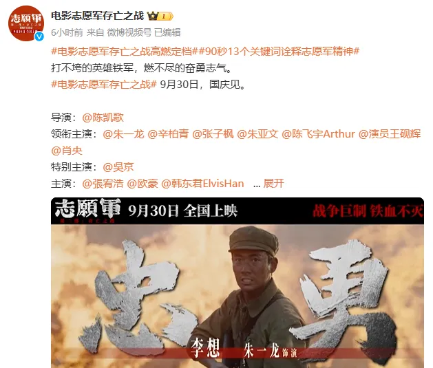 暑期档的影戏市场争取战落下帷幕后,紧接着就是国庆档的精彩“战役”。 此中,赵丽颖手握两部大制作,一部打拐犯罪动作影戏《浴火之路》,一部悬疑影戏《乔妍的心事》,每一部影片都将张力拉满,令人期待值倍增。 除此之外,刘德华主演的《危急航线》、肖央领衔的《收支安全》、王俊凯独挑大梁的《749局》等都是备受观众瞩目标国产大片。 不外,悬疑片、动作片、情绪片都有了,国庆档最紧张的一类题材——战役片有动静吗? 当然有! 由陈凯歌导演执导的《志愿军》第二部曲《志愿军:生死之战》(以下简称《志愿军2》)正式官宣定档。 该影片将于9月30日天下热映,演员阵容雄厚,预告片更是满屏的硬核气味。 看完预告片后我想说:国庆档的“最强王者”,它来了! 热血战役史,主演太惊喜《志愿军:生死之战》陈诉了抗美援朝战役中,第二次战役到第五次战役的故事。 镜头聚焦在铁原阻击战上,我军63军将士以2.5万军力反抗敌方5万雄师,猛烈酣战12个昼夜,在我军的强悍气力下,敌军终于认识到了我方的不好惹。 实在光看剧情简介观众并不能感受到场面有多么猛烈,但当点开预告片的那一刻,我被深深地动撼到了。 炮火连天,战火绵延数百里,坦克、轰炸机连番上阵,我军在云云猛烈又气力悬殊的战役中,以一倍的军力反抗两倍的仇人,这场战役,该有多么惨烈而悲壮? 而看着预告片末了,被战火灼烧的鲜红旗帜在硝烟弥漫的战场上迎风舞动,现在的激动心情已经不足以用言语来表达了。 可以说,《志愿军2》绝对是国庆档观众最不容错过的经典战役大片。 而这样一部充满了热血的影片,演员自然要能扛得住角色的气力派。 陈凯歌导演的选角眼光相称毒辣,男主是本年刚荣获影帝桂冠的青年演员朱一龙,他的气力绝对不容小觑。 但,我照旧替他捏了把汗,毕竟与吴京、郭涛等老戏骨飙戏很难不被吊打。 预告片一出现,我放心了,怪不得能得到陈凯歌导演的青睐,朱一龙是真的会演。 影片里,朱一龙扮演的李想是63军的前线兵士,战场上,看着不远处的仇人,没有望远镜的他一双眼睛犹如捕食的苍鹰一样寻常锐利。 整个人身上带着浓厚的肃杀之意,冷凝的气场带着蓄势待发的狠劲儿,仅一个眼神就够味儿。 鼓舞士气时,李想看似随意的在前方不停走动着,但是话却说的铿锵有力。 而且最令我感到不测的是,朱一龙可以或许突破“偶像包袱”,一张脸晒得粗糙黝黑,打眼一看,真的不敢信赖这是红毯上光芒万丈的影帝。 看来,朱一龙对待这部影片拿出了十足的诚意。 前线抗战时,李想面对死后不停轰鸣的炮火,脸上没有一丝惧色,火光冲天之下,他举枪上膛,牙关紧咬,身上迸发出猛烈的战意。 这种不畏生死的精力状态,显现了当年先辈们的铮铮傲骨,能将志愿军的风骨描画出七八分,朱一龙的演出已经富足令人惊艳。 从预告片来看,朱一龙在影片中的演出绝对可以或许让观众大饱眼福,一身的糙汉气味将会给大家带来另一种视觉享受,狠狠期待住了。 大概,《志愿军2》将会是朱一龙再次摘得影帝桂冠的强有力“法宝”。 全员王炸,这一把绝对是高手局能让朱一龙稍有不慎就有大概压不住的阵容该有多强—— 第一位,吴京。 国家一级演员吴京的演技不容置疑,作为内娱“闻名”的热血硬汉,吴京在《战狼》系列、《长津湖》系列等大荧幕制作中都显现出了绝对强悍的气力。 在《长津湖之水门桥》中,吴京扮演的伍千里令人数次感动的落泪。 此中,最令人印象深刻的,就是末了伍千里用手轻抚伍万里的包子脸的那段戏。 笑中带泪的心情看得人止不住地跟着哭泣。 《志愿军2》中,吴京将扮演傅崇碧一角。 预告片里他的镜头不多,但仅仅一个回眸就令人噤若寒蝉。 锐利又愤恨的眼光看向死后,心情严肃充满了寒意,这个角色绝对不是小人物,我期待吴京在影片中的精彩演出。 第二位,辛柏青。 戏骨辛柏青的演出已经到了“至高无上”的阶段。 在《人世间》里,他扮演的中年周秉义从出场就可以或许引领观众,将大家带入剧情之中,而后,又用博识的演技俘获民气,可以说,周秉义这个角色被辛柏青给演活了。 而在《志愿军:雄兵出击》中,辛柏青扮演的“儒将”李默尹也给观众留下了很深的印象。 《志愿军2》中,辛柏青扮演的李默尹有些变革。 预告片中,他身上少了些文弱书气愤,多了一丝“草泽”气。履历过战场厮杀的他脸上满是血迹,转头的一刹时,似劫后余生,又似搏命一搏。 在影片中,身为李想父亲的李默尹在战场与儿子再次相逢,心田的感情绝对相称复杂,以辛柏青的气力,这绝对是充满泪点的一段戏。 已经预备好纸巾了。 第三位,郭涛。 老戏骨郭涛是观众的老熟人了。 《父辈的光彩》中,郭涛扮演的顾长山一举一动都带着期间的韵味,角色的人情味儿和每一处感情的变革,都被郭涛拿捏得非常精准,让人看着相称有代入感。 此次加盟《志愿军2》,郭涛的演技我不担心,我只怕他的戏份太少,让人不够品。 第四位,王阳。 王阳在《追风者》中的演出念念不忘,他在剧中扮演的沈图南岑寂岑寂,在亲情和大义之间的情绪挣扎被王阳演绎的入木三分。 而他也依附剧中的精彩演出,提名了白玉兰最佳男主的称呼,这次扮演《志愿军2》中龙道权一角,想必是手拿把掐。 第五位,肖央。 我敢说,肖央绝对是国庆档最大的赢家。 《浴火之路》、《收支安全》两部待上映影戏不说,此次又