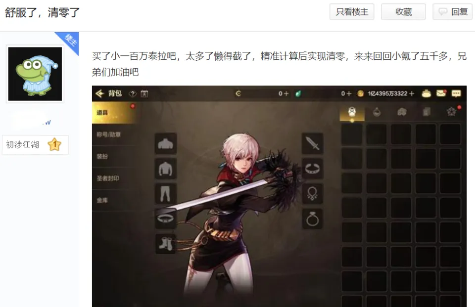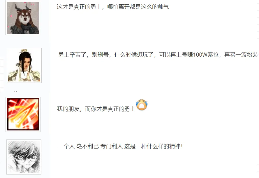 DNF手游这游戏的玩家数量照旧非常多的,固然各人都是最忠诚的勇士,否则也不会入坑这游戏了。但偶然间脱坑每每都是在不经意之间的,各人大概会因为一时的强化败北,或者是对筹谋的不满而直接脱坑了。但其实这种激动型脱坑照旧不当的,毕竟这账号角色都是各人花费了不少的心血和努力才打造美满的,就如许直接脱坑了那是对自己努力的否定。 以是说,纵然各人真的想要脱坑的话,那么也必须得好好思量清晰才行,这也算是给自己的游戏角色划上一个美满的句号。有些玩家为了让脱坑更加彻底一些,在脱坑前会选择把身上的装备都给直接分解掉的,如许纵然再想回归那也是很难了。说实话,这着实是没有必要,这装备照旧可以留下来的,万一哪一天后悔了想回归的话,那么照旧很容易追上大部队的脚步的。 别的另有一些玩家脱坑前做出了差别的选择,这些玩家选择在脱坑前为其他玩家做出最后的贡献。这不就有玩家买空一个区的流光星陨刀,而为此玩家花了100万泰拉,各人纷纷夸赞。固然说神器粉装的品格仅次于史诗级装备,但如今神器装备的代价却黑白常低微的。纵然是这粉装代价一减再减也是无人问津的,毕竟各人对于粉装也是没有多少需求了。曾经价值十几万泰拉的流光星陨刀也是云云,如今纵然都卖1.2万泰拉一把也是没人买的,似乎这只能是烂在手里了。 交易交易,有卖家并且另有买家才算是达成了交易,而假如只有卖家却没有买家的话,那么纵然这件装备卖十几万泰拉,那也是毫偶然义的。而这个流光星陨刀也是云云,固然这把神器的最低价另有1.2万泰拉,但是没人买的话,那这武器也只能丢市肆卖金币了,最后也只值几十万金币而已。 不外近来有一名选择了做一名逆行者,这是一名即将脱坑的玩家。在脱坑前这名玩家决定为还留在这游戏的其他勇士们做点事,那就是花掉了自己身上全部的泰拉,用这一百万泰拉几乎买空了这一个区的流光星陨刀。 固然这名玩家的活动看上去似乎是微不敷道,毕竟这拍卖行中卖不出去的粉装可不光仅只有流光星陨刀,另有许多的粉装都是卖不出去的。但这名玩家已经是尽了自己全部的本领,也只能资助很少的一部分玩家,而这大概也是这名玩家最后为各人做的贡献。 可以想象到突然收到了拍卖行邮寄过来的1.2万泰拉,许多玩家都会感到莫名的欣喜吧。是啊,挂了这么久的粉装终于是卖出去了,这真的是遇到好人了啊。而对此,各人也是纷纷夸赞的,表现这名玩家才是一名真正的勇士啊。纵然快要脱坑了,也还挂念着还在奋斗着的其他勇士们,这是一种什么样的精力! |
