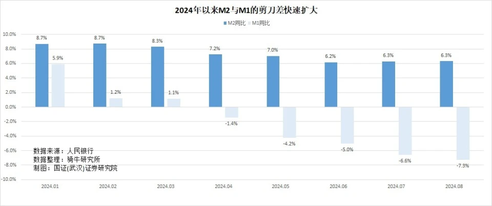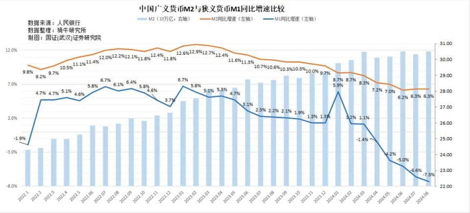 内容提要: 8月份,广义货币和狭义货币铰剪差继续扩大,市场主体与央行货币政策的分歧继续扩大。家庭与企业融资继续缩减,社会融资端赖公共部门债券融资独角戏。降低利率的工具在我们这完全失效,意味着我们必须在货币政策之外探求推动经济复苏的有效工具。 8月21日,央行在美联储降息前,冒着打击汇率的风险,自2021年12月以来,第7次降息,1年期贷款市场报价利率LPR从3.45%下调至3.35%,5年期LPR从3.95%下调到3.85%。固然8月份金融数据不及预期,但不少人预期央行再次降息后,9月份会扭转形势。现实怎样? 广义货币和狭义货币铰剪差继续扩大,市场主体与央行货币政策的分歧继续扩大。 8月末,我们的广义货币(M2)余额到达305.05万亿元,同比增长6.3%;公众持有的纸币和硬币,以及贸易银行在中央银行的存款准备金,即流通中货币(M0)余额11.95万亿元,同比增长12.2%。 M0增长了12.2%,表明央行积极向市场投放现金,增长底子货币为货币扩张创造条件。M2增长6.3%,意味着央行继续实行货币宽松政策,货币乘数从2月份以来,不绝站在8以上,7-8月份,高出了8.3。利率降落,底子货币增长,货币乘数扩大,这是央行货币宽松政策的根本特点。 但货币构成中活动性较强的狭义货币(M1)余额,从7月份的63.23万亿元,萎缩到63.02万亿元,环比降落0.3%,同比降落7.3%,这是M1自4月份以来第五个月紧缩。 M2继续增长但M1连续紧缩,导致广义货币M2与狭义货币M1的铰剪差连续扩大至13.6%,不但到达本年以来的最高值,也至少是三郎数据库中收录的2000年来的最大值。 M2与M1的铰剪差越小,意味着活动性较强的M1在M2中的比例越大,家庭、企业对经济增长的预期较强,家庭消耗和企业投资的态度越积极。反之,意味着M1在M2中的比例缩小,更多的资金从消耗和投资范畴转入恒久存款大概理财渠道,分析企业和住民对自身收入和团体经济增长预期较差,经济活力严峻减弱。 M2-M1的铰剪差,在2017年之前,央行还可以通过货币政策来进行调解。比如2008年金融危急中,M2-M1的铰剪差一度从之前的-4.4,突然上升到8.7,央行降息降准后,第二年就回落到-4.8%。 2014年开始国内经济下行,当年M2-M1的铰剪差又回升至7.8,2015年央行一年内5次降息,敏捷将M2-M1的铰剪差压回-1.9,2016年继续回落到-10.1。 今后自2018年就又敏捷扩大,2020年环球制造业因疫情短停息摆,外部订单集中回流,才使铰剪差有所缓解,降落到1.5。 今后铰剪差便连续回升,纵然2021年底央行开启了降息降准的货币宽松周期,也未能影响M2-M1的铰剪差继续扩大的趋势。这表明央行的货币政策,自疫情之后便开始失效了,市场主体与央行货币政策的分歧继续扩大。 家庭与企业融资继续缩减,社会融资端赖公共部门债券融资的独角戏。 8月份M2继续增长,意味着社会融资仍在增长。8月末社会融资规模存量为398.56万亿元,同比增长8.1%。但8月份的社会融资增量只有30311亿元,同比淘汰了3%。1-8月,社会融资规模增量累计为21.9万亿元,比上年同期淘汰3.32万亿元,淘汰13.1%。 社会融资规模增量同比萎缩,是因为家庭与非金融企业部门的融资意愿严峻减弱。社会融资重要依靠公共部门债券融资唱独角戏。 8月份,公共部门债券净融资16177亿元,同比猛增37.6%,占到当月新增社会融资的一多半--53.4%。1-8月公共部门债券净融资5.64万亿元,同比增长13.6%。 与央行降息,盼望企业、家庭等市场主体增长融资扩大投资、生产与消耗的优美愿望相反,陪伴着央行降息的脚步,企业和家庭部门选择了继续紧缩资产负债表,在较弱的经济预期中通过淘汰债务来降低债务风险。 8月份,企业部门新增社会融资10831亿元,同比降落22.8%。1-8月企业部门新增社会融资13.79万亿元,同比淘汰15%。 此中,8月份企业部门新增贷款8479亿元,同比淘汰28.9%;1-8月,新增贷款11.99万亿元,同比淘汰14.3%。 由于我们央行报表中的企业部门,现实上是指企古迹单位,既包罗铁总、建总、三桶油等央地国有企业,还包罗教诲、医疗等古迹单位,以是可以或许独立判断市场预期做出独立信贷决议的民营企业修复资产负债表的结果,被国有单位增长信贷的动作弱化了。 因此纯粹的市场化的家庭部门,其与央行货币政策的分歧就更为显着。8月份,家庭部门新增贷款1963亿元,同比淘汰一半。1-8月,新增贷款1.43万亿元,同比淘汰52.2%。 现在令央行货币政策非常尴尬的是,不印钱不可,因为要维持公共部门债务、公共部门隐性债务的展期和借新还旧。公共部门发债的来由都是为了投资公共项目,为什么三郎要说是为了展期和借新还旧? 一是上半年天下财务付出中的利钱付出为6304亿元,同比增长6.5%,占到上半年公共部门新增债券融资33379亿元的18.9%。亦即接近五分之一的新发债,用于付出存量债券的利钱了。 二是公共部门存量债务停止6月尾为73.13万亿,纵然按平均10年期盘算,每年要还本7.3万亿元,半年要还本3.65万亿元。但本年上半年新增债券3.34万亿元减去利钱后剩余2.71万亿元,还不敷还本,可以公道推测,此中一部门展期了。 以是,在企业和家庭部门与央行货币政策存在巨大分歧后,看似公共部门在唱继续融资的独角戏,为央行捧场。现实上其新增融资用于推动经济规复的比例,也是有限的。 因此,继续印钱没用。因为新印出来的钱大多流向了公共部门,另有一部门流向了国有企业和古迹单位,在他们付出了存量债务的利钱、到期的本金后,如有剩余,也酿成了存款和固定收益的国债,