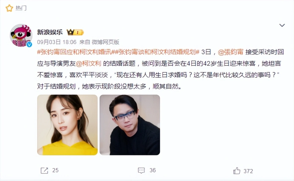 而坊间听说,赵又廷的父亲、演员赵树海也不低调,曾在节目中公开透露:“张钧甯学历高,我们不能一眼看透她。” 总之,那之后女方奇迹确实一起开挂,接连又演了《武媚娘传奇》《少年四大名捕》等作品。 感情方面,她也从不遮遮蔽掩,被狗仔拍到恋情也能大方承认,但这段和身价上亿的CEO男友的恋情,也仅维持了两年。 这之后张钧甯绯闻不少,都是互助过的男艺人,好比张翰、邱泽等,但没有一个是真的。 直至2019年,她因拍摄网剧《唐人街探案》结识了比自己小3岁的导演柯汶利。 男方是马来西亚人,少年期间便显现了照相方面独特的天赋,初中毕业后没有继承读书,而是到处打工赚钱,渴望从事干系的职业。 为了出国留学,柯汶利还曾在银行担当业务员赚取学费,厥后辗转回到台湾,又在世新大学主修口传和公共流传学。 2014年,他因拍摄首部短片《自由人》仅筹到45万,剩余的60万就自己出去借,甚至还卖掉了心爱的汽车。 终极,柯汶利依附此片斩获金钟奖最佳导演奖、编剧奖等多个奖项,甚至还入围奥斯卡金像奖实景短片奖。 出众的才华令他得到了业内人士的关注,此中就包括导演陈思诚。 两人之后互助了影戏《误杀》,同年又执导了悬疑剧《唐人街探案》。 也是这部戏,让柯汶利与张钧甯结缘。 只管恋情被曝后,网友评价一边倒,都说男方配不上她。 但张钧甯却在采访中说,男友“幽默、风趣、性格合得来”。 坊间听说,知识分子身世的、向来挑剔的张妈妈对柯汶利也赞口不绝。 前段时间,面对网友对自己的催婚,张钧甯也高情商地回应: