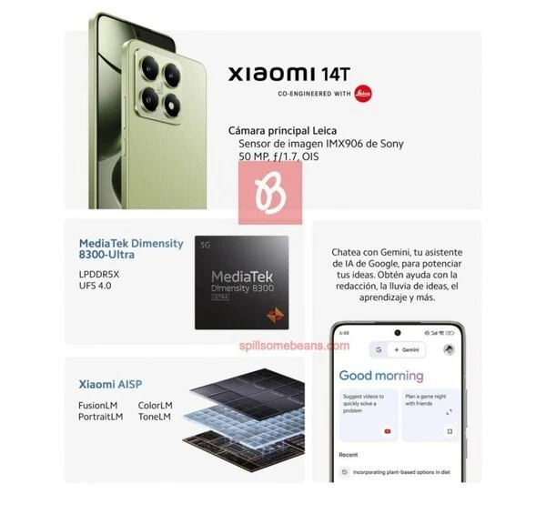 【CNMO科技消息】根据走漏的官方宣传质料,即将于9月26日正式发布的小米14T和14T Pro将预装Circle to Search(即圈即搜)。别的,部分AI功能和核心参数设置也提前曝光。 小米14T系列 据悉,除了即圈即搜,小米14T系列将搭载多项由谷歌Gemini提供支持的AI功能,如AI条记、AI翻译、AI字幕和AI灌音机等。 走漏的官方宣传图片还证实,小米14T将搭载联发科天玑8300 Ultra芯片,搭配12GB RAM和512GB可扩展存储空间。这款手机将配备5000mAh电池,支持67W有线充电,可在45分钟内从0充电至100%。相机体系包罗一个利用索尼IMX906传感器的50MP主摄像头、一个50MP长焦摄像头、一个12MP超广角摄像头和一个32MP自拍摄像头。 小米14T Pro预计将与小米14T根本同等,只是利用联发科天玑9300+芯片,而且充电速率可能也会更快。这两款新机都将配备6.67英寸1120×2712像素OLED屏幕,革新率为144Hz,防尘防水品级为IP68,并将运行Android 14和汹涌OS。 外貌方面,如图,小米14T系列两款手机在颜色和机身质感上有着渺小差别,但团体设计保持同等,均接纳圆角矩形镜头模组,模组中央还有徕卡的标记。 |