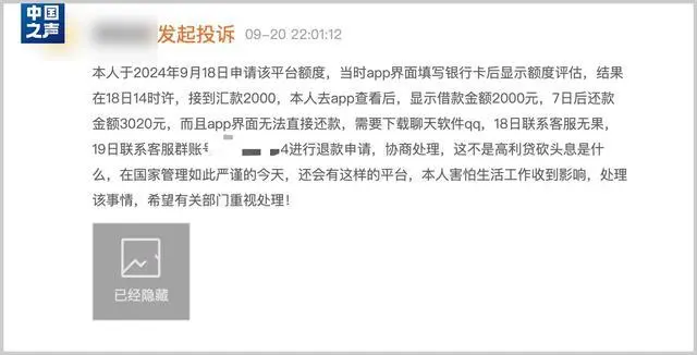 除了认识的车贷、房贷,你听过“强制贷”吗? 近期,有人反映在网贷平台查询额度后,不测背上贷款,部分用户甚至收到2000元却需在7天后还3000元,不少人被强行放款后还遭遇了暴力催收和威胁。遭遇黑网贷怎么办?黑网贷背后有哪些灰财产? 点击短信链接被强制下款 “乞贷”1700元 需还2567元 “您的9000元乞贷申请已乐成到账。”本年8月23日,广西柳州的全老师收到如许一条短信,来信方自称是金豆花。全老师表现,本身此前并未提交过任何乞贷申请,他明白这是网贷公司的一种营销战略。出于好奇,他点开了短信中的链接,验证本身是否真的有这9000元贷款额度。 “我点进去看看能借多少钱,并没有申请乞贷。效果让我下载金豆花App,然后填写了工作信息、亲人和本身的电话号码,另有银行卡和身份证信息。”全老师以为这些资料将用于评估本身的光荣情况,所以按要求填写了相关内容,并未操纵贷款,没想到一个小时后,他的银行卡收到了1700元转账。 填写资料时,平台并未提示任何乞贷利率等信息。收到转账后,金豆花紧接着又给全老师发来短信称,他已经乞贷1700元,需在7日后还款2567元。 被强制下款的全老师想要投诉,但翻遍了软件却没找到客服通道。在公告的引导下,他下载了另一款软件。“金豆花App说假如不想要这笔贷款,原路返回不算还款。App内里没有客服,需要下载另一款名为米言的软件,加为挚友后才气得到还款渠道。你问什么他都不理你,只能还款去找他。” 全老师的贷款明细表现,此份乞贷声称利钱为0,但需要付出867元的服务费。这意味着,这笔乞贷现实年化利率到达2622.86%,远超乞贷利率的正当范围,属于高利贷。面对巨额利率和匿伏的暴力催收威胁,全老师选择哑忍,并在8月30日还了乞贷。 “黑网贷”诱导贷款后暴力催收 部分借贷年化利率 甚至高达5000% 记者在网络投诉平台上搜索发现,有840条关于“金豆花”的投诉,主要涉及“诱骗诱导贷款”“强制贷款”“高利贷”“暴力催收”等投诉。别的,另有上千条关于“速递宝”“88分期”“心贝优选”等其他网贷平台的投诉,投诉内容也与上述投诉如出一辙。