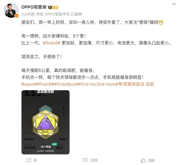 本日,OPPO Find系列产品负责人周意保发文称:8将比上一代更加轻,更加薄,尺寸更小,电池更大,摄像头凸起更小,Find X8 Pro也同理。看来本年的Find X8系列将会以一个全新的姿态出现在大家面前,我们再联合其他爆料信息看一下。 根据干系爆料信息表现,OPPO Find X8系列的标准版和Pro版有望在本年10月发布,而Ultra版本将会稍晚一点。配置方面,标准版和Pro版都将搭载天玑9400,均支持无线充电。 标准版屏幕接纳1.5K“相对小尺寸”直屏,搭载光学指纹,支持IP68/69防尘防水,三摄单潜望后置影像体系。而Pro版接纳1.5K大尺寸等深微是曲屏,搭载四摄双潜望后置影像体系。 别的,OPPO Find X8系列全系或将支持磁吸无线充/磁吸生态,同时带来一款磁吸充电宝,将会进一步拓展无线充电的场景。 编辑点评:由此来看,OPPO Find X8 / X8 Pro的设计理念又发生了改变,以更加轻巧的姿态界说中杯和大杯,但又以影像作为区分,产品定位更加清楚了,对于消耗者而言,选择上也会更加明白。固然,最紧张的还是磁吸生态的到场,将会扩充产品的使用场景,同样是对用户体验的进一步优化。更多干系信息,可以关注OPPO官方的最新动态。 |