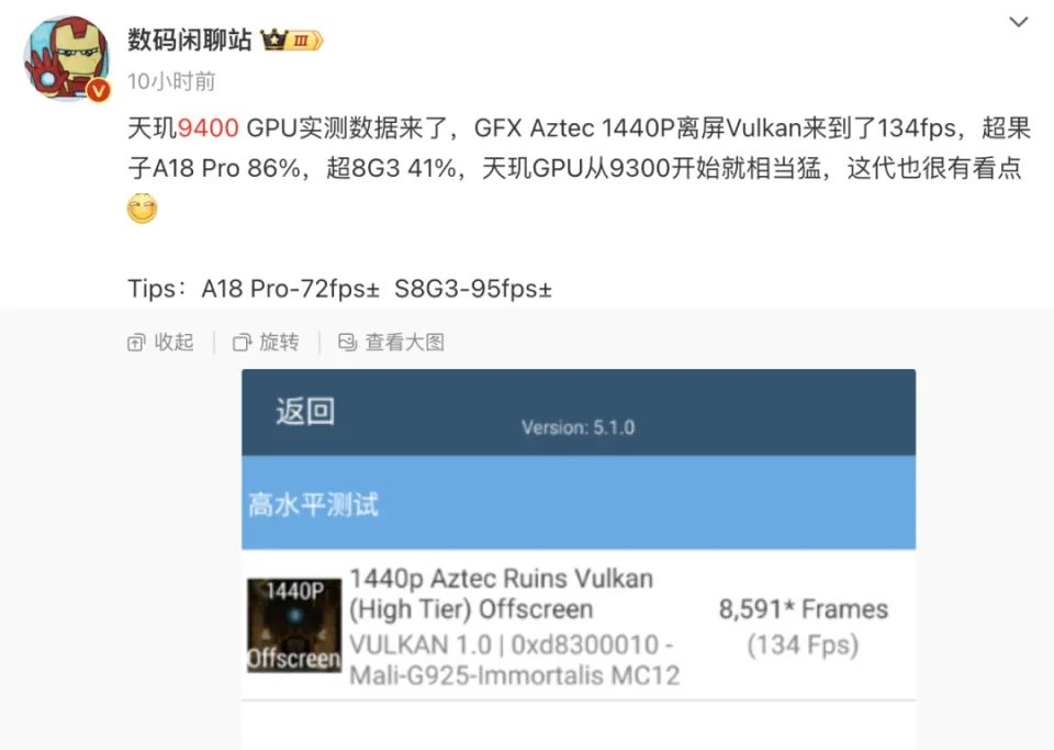 之前机哥就聊过,本年的安卓手机处理处罚器,高低是要腾飞的。 一边是高通,骁龙 8 Gen 4 预计会用上全新的自研架构 Oryon。 而且,高通一狠心,直接将超大核的最高主频拉到凌驾 4.0GHz… 天玑 9400用上了 ARM 全新的公版 CPU 和 GPU。 CPU 预计是 1×ARM X5+3×ARM X4+4×ARM A7 的八核架构,CPU 性能之前也爆料过。 和隔壁骁龙 8 Gen 4 动辄 3200+ 分的单核,10000+ 分的多核结果比,照旧有不小差距的。 不外,如果用更低的主频换来更冰凉的体验,那也不是完全不能反杀。 究竟,以往略弱的 GPU,天玑 9400 也来了个猛料。 图片字照旧多,机友们就看一句话 —— GPU 测试软件的效果,天玑 9400 比 A18 Pro 高 86%,比骁龙 8 Gen 3 高 41%。 作为参考,天玑 9300 的数据是 90Fps 左右。 也就是说,天玑 9400 的 GPU 性能比天玑 9300 有将近 50% 的提升。 要知道,客岁天玑 9300 的 GPU 性能就提升了 40%,靠近骁龙 8 Gen 3 的数据。 这一回又搞了个 50%… 机哥脑筋里就飘过了四个字:外星科技。 按照最新的爆料,天玑 9400 的发布会预计在 10 月 9 日左右。 蓝厂调校+ARM 的外星科技,这一次天玑 9400,可能真要和骁龙 8 Gen 4 坐一桌了。 不外话又说返来。 如果价格同等,在骁龙和天玑之间,机友们会优先选天玑照旧骁龙呢? 图片来自网络 这…要是功耗压下来,就真·外星科技了 ↘↘↘ |