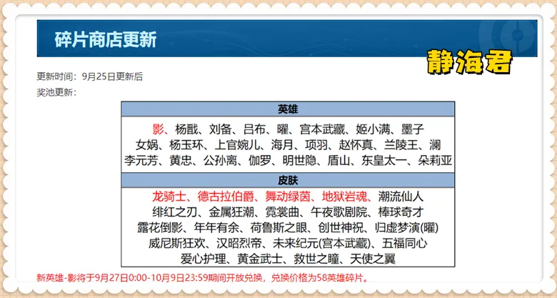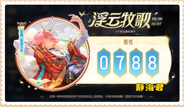 这里姑且就按498点券算。 第二款限定皮肤是末了一次直售返场的妲己的「时之彼端」。 该皮肤的返场时间是9月28日~10月4日,代价是888点券。 以上两个皮肤全入的话,必要预备1386点券。 ⑶2款直售皮肤 非常突然的,马可波罗有史以来的第一个高级皮来袭,且这个皮肤还是王者光彩和合金弹头:觉醒的联名皮肤。 这款联名皮肤的名字叫做「星界特工」,品格是史诗,从9月27日开始上架商城,首周的代价是710点券,过后是888点券。 庄周终于迎来了自己的第一款传说皮肤(轻微有些遗憾的是这款皮肤是传说),这款传说的名字叫做「牧神诗旅」,代价是1688点券。 但是,假如通过浮云牧歌活动来得到该皮肤的话,玩家只必要预备788点券即可。除了牧神诗旅皮肤外,还有4个自选商品栏,玩家可以从备选列表中选择心仪的商品到场。 另外,在勇者栏位,玩家还可以以288点券的代价得到牧神诗旅个性按键和传说播报。 Ps:假如通过解锁5个商品栏,玩家还可以额外得到一个随机皮肤宝箱。 以上两个皮肤全入的话,必要预备1498点券。 ⑷5款8折限定 在9月25日正式服更新完成后,回想礼册的扣头奖池将会重新开放,从现在公布的内容来看,新一期会有镜--匿光追影者、马可波罗--贪图实况、花木兰--燃星之曲、鲁班各人--匿光启智者、干将莫邪--画中仙等5款限定皮肤返场。 此中,花木兰--燃星之曲和干将莫邪--画中仙是传说级皮肤,其余三款皮肤为史诗级皮肤,思量到最多只能选择三款,且代价最低为8折,以是这里假如全入的话,必要预备3570点券。 ⑸小结 假如是一个新号,且比力有气力选择全部入手,玩家肯定必要预备120+1386+1498+3570=6574点券。 9款皮肤=6574点券,固然确实不算贵,但我还是建议各人有选择的入手(除了秒杀皮肤,不常玩的英雄都可以再观望观望)。 Ps:788点券的传说,498点券的文创联名,真的无需多言。 其他福利活动除了上面的皮肤活动外,在正式服更新后,还有几个福利各人可以关注一下。 ⑴累充 在9月25日更新完成后,新一期的累计充值活动会上线,一直一连到9月28日结束。 思量到档位和奖励和之前一样,我就不多先容了,各人可以根据自己的实际环境来选择(假如让我保举的话,我感觉60点券这个档位性价比最高)。 ⑵碎片商城更新 碎片商城也会随着新版本同步更新,最必要留意的是,新英雄影会在9月27日~10月9日这段时间内上架英雄市肆(兑换需预备58个英雄碎片)。 至于皮肤市肆,这次有4款高级皮肤上架,分别是龙骑士、德古拉伯爵、舞动绿茵和地狱岩魂。 ⑶冠军阵容扣头 为庆贺AG夺冠,以下10款皮肤8折上架。