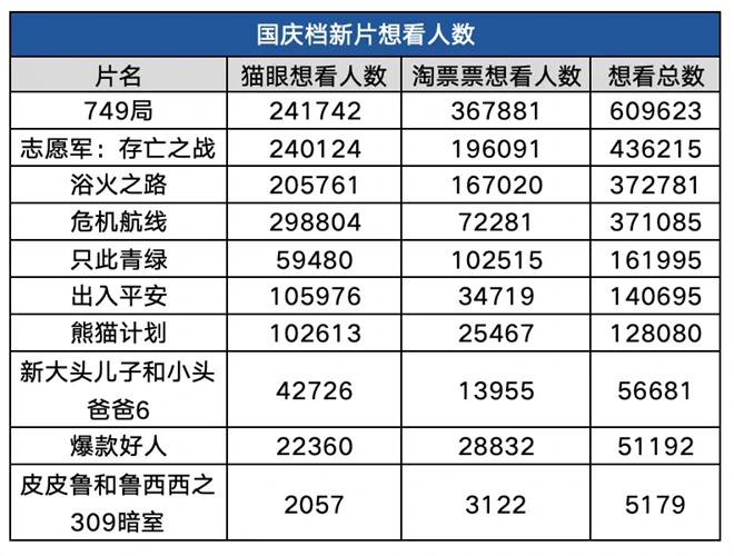 1905电影网专稿 9月24日,2024年国庆档预售正式开启,十部新片闻枪起跑。目前,排片凌驾20%,凌驾10%,位列前四位。《浴火之路》也成为首部预售破百万的影片。 与往年相比,本年国庆档真人影片数量显着更多,竞争更为猛烈,同时涵盖了战役、灾难、犯罪、动作、喜剧、科幻、动画等多种范例,也更为丰富多元。 国庆档进入倒计时,哪些新片将脱颖而出,担当住市场和观众的检验? 四部影片“想看”超35万 阵容“内卷”谁能突围? 从双平台想看人数来看,《749局》《志愿军:存亡之战》《浴火之路》《危急航线》均凌驾35万,临时位于第一梯队。 《749局》是导演历时8年打造的心血之作,历经重重风波终于与观众晤面,想看人数高也与长时间的积聚分不开关系。 电影为超自然科幻范例,创作灵感源于陆川军校毕业后在749局的工作经历,以少年发展为内核,兼具悬疑、冒险、动作、浪漫等多重元素,由、苗苗、、、等构成的阵容也十分吸睛。 直至目前,《749局》相关物料较少,本日刚释出第一支正式预报。影片风致将成为影响票房的决定性因素。 战役片《志愿军:存亡之战》的“热度”也不可小觑。作为打造的《志愿军》三部曲中的第二部,影片将重点出现抗美援朝战役第五次战役中连续12昼夜的铁原阻击战。 该系列第一部曾取得8.68亿的不俗结果,第二部演员和主创阵容同样强大,且将由继承男主角,再加上更为密集的战役和动作局面,都令市场对该片的表现寄予厚望。 打拐题材犯罪片《浴火之路》同样依附范例上风和主演阵容备受等待。 、、饰演三位丢了孩子的父母因一桩买卖业务而相互牵连,组局踏上寻子复仇之路,在蛮荒之地与一众人贩上演凶恶反杀。 肖央和刘烨的演技无需赘述,赵丽颖近期也反复依附《风吹半夏》中的表现劳绩奖项认可。 此番三人都在戏路上有所突破,等待“全员狠人”带来一部犯罪狠片和演技盛宴。 高空犯罪片《危急航线》则显现了犯罪范例的另一种打开方式。 与此同时,反派的演出也引发热议,从温文尔雅的“白月光”张万森变身杀人不眨眼的疯批悍匪,“张万森下血了”的极致反差感也成为影片的另一大看点。 作为国内首部高空犯罪大片,盼望《危急航线》能在视觉结果和动作局面上给观众带来惊喜。 范例多元看点足 各路IP扎堆上新! “想看人数”只是映前多项指标的此中一项,不能和上映后的票房、口碑画等号,其他几部国庆档新片同样各有特色和亮点。 影片根据真实事故改编,以地震后囚犯与警员组队接济的故事为主线,睁开了灾后众生相的描绘,还把西游记的脚色设定奇妙融入此中。 天灾无恋人有情,至暗时刻的人性高光,盼望影片再度带来直击民气的感情气力。 大档期怎么少得了喜剧?和联手弥补了这一空缺。 《熊猫操持》由年老领衔,携手、、等各路新老喜剧人,共同保卫国宝熊猫。 当“猛猛打”的年老遇到大熊猫呼呼秒变“萌萌哒”,勇斗国际犯罪组织,真应了那句话:“七旬老夫守国宝,洋相还得洋贼出”! 导演也再度回归“喜剧”赛道,团结青年导演带来新片《爆款好人》,继承讲述“我和我的”系列中,饰演的“张北京”的故事。 谁人曾经跟萨马兰奇“称兄道弟”的张北京,这次化身“维权哥”帮人维权,继承贯彻“刀子嘴豆腐心”的脚色形象,尚有、、、等各路演员助阵。 葛大爷一脱手就是隧道的北京味儿! 假如说“张北京”是家喻户晓的喜剧IP,那就是国风美学的代名词。这个从春晚走出,红遍大江南北的舞蹈诗剧,如今将由原班人马搬上大银幕。 与舞蹈诗剧的精华一致,影片同样讲述了一位今世文物研究员凌驾近千年时空走入北宋少年画家希孟的内心,见证他以芳华为笔,绘制出传世画卷《千里山河图》的历程。 当先辈的电影技能遇上舞者的倾力演绎和非遗技艺的无穷魅力,共同绘就了一幅极具中国美学理念和中国精力的画卷。《千里山河图》渐渐睁开,邀你大银幕共赏青绿千载、山河无垠。 大头儿子小头爸爸将进入“迷你状态”,皮皮鲁和鲁西西也会解锁暗室的“黑科技”,共同为大朋友和小朋友们带来新的惊喜。 众所周知,国庆档一直都是整年最告急的热门档期之一,曾频频创造佳绩,近10年来总票房均凌驾10亿,2019年和2021年更是突破了40亿大关。从殊效大片、喜剧佳作到新主流大片,我们也一路见证着国庆档卖座影片范例的不断更迭。 与往年相比,2024年国庆档新片题材范例更加多元,各路力派头主创也将联手为观众奉上一场场直击心灵的视听盛宴。等待佳片力作能合力带火市场,为祖国75周光阴诞奉上最好的礼品。 |