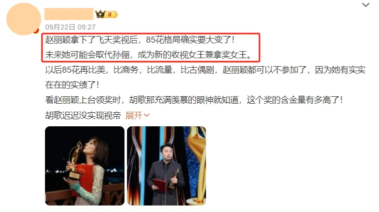 文 | 木然 编辑 | 三元 赵丽颖拿下飞天奖视后,鼓励意味太浓了! 由于同期竞争的提名演员里有刘琳,未提名的演员中更是有殷桃,宋佳,吴越等演员。 真要把这些演员在各自作品中的表现放一起比力,赵丽颖的演技还真不够看。 但数次拉出来被遛,各大主流奖项提名却获不了奖,飞天奖再次化身公理使者,把视后给了呼声颇高的赵丽颖。 诚然,赵丽颖在《风吹半夏》中的表现可圈可点,没有露怯,从其自身来说也有突破。 但关键是,跟谁比? 较之同样被提名的李庚希,唐嫣,拿视后没题目,比起其他85花如杨幂,刘诗诗等人,赵丽颖也简直不是这一层级的了。 然而,要是把赵丽颖和其他飞天视后放一起看呢? 有网友以为,赵丽颖拿下了飞天视后,85花的格局要大变了,将来她可能会取代孙俪,成为新的收视女王兼拿奖女王。 那么对比一下这两届飞天视后,赵丽颖真要成为下一个孙俪了吗? 恕我直言,就算被同一奖项认可当视后,赵丽颖也接不了孙俪的班。 第一,处境差别,出发点差别单从身世来看,赵丽颖和孙俪差不多。 都是没配景没被页粳最初只能演龙套角色的18线小演员。 但就演艺古迹来看,两人所处期间的影视业大环境差别,导致两人的出发点也大相径庭。 赵丽颖碰巧是在古偶这阵风吹得最起劲的时间崭露头角,阿宝色的于正剧风起云涌,《宫》系列也成为了最火爆的剧集范例。 就连赵丽颖也曾演过《宫锁珠帘》,《新还珠格格》等作品,之后挑大梁的《陆贞传奇》,《追鱼传奇》,再到大爆的《花千骨》,都是同一种范例。 因此,赵丽颖的出发点是不那么磨练演技,更看重颜值和人气的古偶时期。 反观孙俪,则碰巧是在古偶盛行之前,她出演的作品如《玉观音》,《甜蜜蜜》,《血色浪漫》等,恣意一部放在本日,人设和尺度都很炸裂的。 包括后续的《红粉世家》,《幸福像花儿一样》等作品,都是有着特定的期间配景,人设又很复杂,每一部剧都是在突破和挑衅。 这就注定孙俪的出发点,不是像赵丽颖一样,演太多流水线生产出来的作品。 而现在的赵丽颖,站在一个只要有点突破,就会被各人鼓掌喝采的大环境里,但孙俪演艺古迹的开始,突破就是常态。 没有人会由于她忽然演了一个不一样的角色,将其界说成转型,只会看她能不能把角色演好。 因此,赵丽颖和孙俪拿飞天奖视后,一个是由于敢于转型和突破,得到了认可,并非自身气力已经达到了不可比拟的高度。 一个却是实打实的打败了秦海璐,殷桃,蒋欣等演员,凭借着《那年花开月正圆》获奖。 第二,流量身世与气力派身世的天然壁垒众所周知,赵丽颖是由于《花千骨》爆火出圈,之后她又挑大梁主演了《加油吧!训练生》,《蜀山战纪》等作品。 而这些作品的质量和口碑,只能用平庸来形容。 但这还不是最关键的,对于演员们来说,有戏可拍,偶尔间比能不能拍好作品更告急,由于首先得有着名度,让观众看到自己。 这也直接导致演员拿到的人物设定相对简单,只必要程式化的演出即可。 拍这种范例的剧,时间短,收效快,成了许多必要在短时间内灵敏攒人气的演员的不二之选。 不外这也使得她们得到了一个统一的头衔:流量。 因此,像赵丽颖一样,各个年岁阶段的大花小花们,都得在年岁到了演偶像剧的临界值时赶快寻求转型。 杨幂,刘诗诗等人是转型失败的案例,赵丽颖则是这其中转型最乐成的一个。 由于在《幸福到万家》里演了村妇,《风吹半夏》里演了钢铁业的女能人,突破了观众们对她的固有印象,从而与其他85花区分开来。 不难发现,赵丽颖在许多作品中,呈现角色是都会显得愣愣的。 明明是必要感情大发作的洗衣粉,但到了她这里就演成了忽然停下来思索,接不住戏。 就像《知否知否》中的大婚名局面,明兰嫁人,祖母不舍,老太太哭的让人鼻子一酸,跟着揪心。但赵丽颖却没有演出与祖母感情深厚的一面。 怔怔的看着祖母,被触动的眼泪都没有,还不如观众哭的逼真。 被划入到气力派的行列里,赵丽颖的演技还很牵强,属于跳出了流量这座围城,但还没正式敲开演技派这座围城的大门。 孙俪这边还没演《甄嬛传》之前,由她主演的《玉观音》,《血色浪漫》,《幸福像花儿一样》等作品,口碑就稳固在8分左右。 剧集质量过硬,孙俪也通过这些作品,一步步的打磨着自己的演技。 抛开固有的演出模式,将自己的风俗突破重建是常态,由于她演的角色,从来不是限定在一个框架里的。 因此,从进入演艺圈开始,孙俪就是各人公认的气力派了,《甄嬛传》是孙俪演技履历充实积累,气力显现后登上的第一个高峰。 在这部剧里,与孙俪演对手戏的是陈建斌,蔡少芬,蒋欣,张晓龙等演员,孙俪依然稳稳地撑住了大女主。 没有孙俪的演技加持,《甄嬛传》的品格大概会大打扣头,换个人演味道就不对了。 这也充实分析孙俪已经是气力派里的佼佼者。 流量身世和气力派身世,在人气和热度上,比气力派更胜一筹。但在观众缘和国民度上,肯定是气力派更吃香。 结语 综合这些来看,虽然赵丽颖拿了视后,但她不可能成为下一个孙俪。 演员后续的发展怎样,归根结底看的还是气力。毕竟随着年岁的增长,人气和流量失效,最告急的就是能否有演好各种角色的本事了。 想要真正成为游刃有余的气力派,而不光仅是一个转型乐成的流量花,对赵丽颖来说,任重而道远。 虽然都是飞天视后,但现在来看,孙俪的班,赵丽颖暂时还接不了。 那么,你以为赵丽