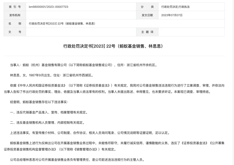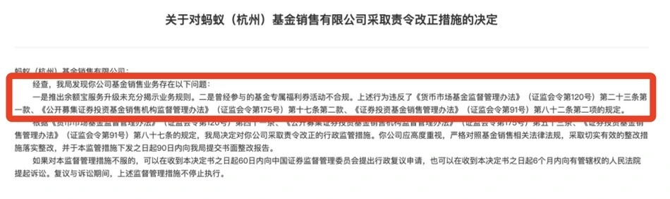 财联社9月30日讯(记者 封其娟)继客岁被处以7000多万巨额罚款后,蚂蚁基金本年再度收到羁系罚单。对此,蚂蚁基金表示积极共同羁系要求,已完成公告中的相干整改事项。 浙江羁系局最新披露,决定对蚂蚁(杭州)基金销售有限公司(以下简称:蚂蚁基金)接纳责令改正的行政羁系步伐,并要求公司应严格对照基金销售相干法律法规,接纳切实有用的整改步伐落实整改,并于该羁系步伐下发之日起90日内提交书面整改陈诉。处罚公告表现,蚂蚁基金存在两大违规题目:一是推出余额宝服务升级未充实展现业务规则;二是曾经参与的基金专属福利券运动不合规。 有知情人士透露,基金专属福利券是蚂蚁基金2020年的历史运动,实际上该运动早已下线。而余额宝的整改告急为引导基金更换的规则提示不充实,当前也已充实加强了相干提示。据相识,目前余额宝已接入45只钱币基金,投资者可以自行选择、切换收益更高的产物。 有公募人士称,蚂蚁基金发红包、送券等专属福利运动确实早就没有了,最初也告急面向个人客户,拉拢人气。 同样出于浙江羁系局之后,早在2018年3月,蚂蚁基金已被查出旗下“财富号红包运动”存在以送现金红包方式销售基金的举动。由此,该局也决定对蚂蚁基金接纳责令改正的监督管理步伐,并要求公司全面开展自查自纠,进一步进步对违规销售举动的熟悉,提升合规管理水平,切实将投资者恰当性管理工作落实到位。 蚂蚁基金客岁已遭巨额罚单 就在客岁,蚂蚁基金遭遇巨额罚单一事引起业内诸多关注。 据客岁7月7日罚单披露,浙江羁系局决定对蚂蚁基金及总司理林思思给予告诫,并分别处以7368万元、15万元罚款。 经查明,蚂蚁基金销售存在两大违法事实:一是违反代销基金产物准入、宣传、档案管理有关规定;二是违反基金销售机构职员管理、内部控制有关规定。该局指出,前述违法举动反映出公司在开展基金销售业务过程中,未能恪尽职守,未推行老实名誉、审慎勤勉的任务,违反了有关规定。 作为公司总司理,林思思对公司开展基金销售业务负有管理责任,是前述违法违规举动的主管职员。 同一日,中国证监会官网发布要闻,指出针对蚂蚁集团及旗下机构过往年度在公司管理、金融消费者掩护、参与银行保险机构业务运动、从事付出结算业务、推行反洗钱任务和开展基金销售业务等方面存在的违法违规举动,决定对蚂蚁集团及旗下机构处以罚款(含充公违法所得)71.23亿元,并要求蚂蚁集团关停违规开展的“相互宝”业务,并依法赔偿消费者长处。 9月13日,中基协披露了2024年上半年度基金销售机构公募基金销售保有规模百强榜单。与此前不同,这次榜单新增披露了“股票型指数基金”维度,原有的“股票+混淆”基金也调解为 “权益类基金”。数据团体的统计维度从季度调解为半年度。 从排名环境来看,蚂蚁基金在权益基金、非货基金、股票指数型基金中均位列第一,从股票指数型基金保有规模排名来看,蚂蚁的保有规模相称于华泰证券、中信证券、天天基金等3家排名第二至第四机构的合计值。 蚂蚁基金本年上半年权益基金销售保有规模到达6920亿元。据悉,蚂蚁基金成为此次代销榜首,正是获益于指数基金规模的稳固增长。近两年,蚂蚁自动权益基金保有规模有下滑,但仍维持较稳固水平,加上指数基金销售规模的提升,平台团体基金销售规模也保持增长。与客岁四序度的股票+混淆基金保有规模相比,蚂蚁基金上半年权益基金保有规模增长2328亿元。 随着统计口径从“股票+混淆基金”收窄至“权益基金”,再加上上半年权益市场调解,凌驾九成机构的数据环比下滑,但蚂蚁基金的权益基金销售保有出现逆势增长。 比年来遭多位个人客户投诉 由证监会披露的行政复议决定书可知,比年来,有多位个人客户向羁系投诉蚂蚁基金,但多数遭到证监会驳复兴议申请。 据证监会2019年3月披露,2018年8月,浙江羁系局收到李震举报蚂蚁基金、网商银行违规销售基金的质料。具体指出,1)蚂蚁基金关于客户在申购非余额宝类基金时,必须将余额宝作为交易资金渠道的规定,属于搭售余额宝的举动,违反关于“严禁实验歧视性、排他性、绑定性销售安排”的规定;2)通过蚂蚁基金购买非余额宝类基金时,付款方式只能为余额宝或银行卡,付出宝账户余额不支持付款;3)购买余额宝偶然间、份额的限定,“用付出宝账户余额转入余额宝无额度限定”的宣传不实。 针对李震举报事项,浙江羁系局对蚂蚁基金进行了现场检查,约谈相干负责职员,出具现场检查事实确认书;要求蚂蚁基金、网商银行开展自查,提交自查陈诉、《委托协议》等质料。 根据核查环境,浙江羁系局于2018年10月11日向李震作出举报酬复。证监会以为该局复兴并无不妥,其他举报题目不属于该案复议审理范围。 据2020年7月公告披露,2019年12月30日,晏景中向浙江羁系局举报,蚂蚁基金未告知其赎回相干基金时必要收取手续费,导致他在赎回基金时被扣取129.11元的手续费。晏景中以为,蚂蚁基金存在以误导性的信息侵害投资者长处的举动,哀求浙江羁系局构造蚂蚁基金与其调解,如调解不成则依据其举报内容对蚂蚁基金作出处罚。但该局以为,晏景中举报事项不符合举报受理条件,相干民事争议应当通过调解、诉讼等途径办理。就不予受理晏景中举报事项的处置惩罚结果,该局连续2次致电晏景中但未接通,之后以