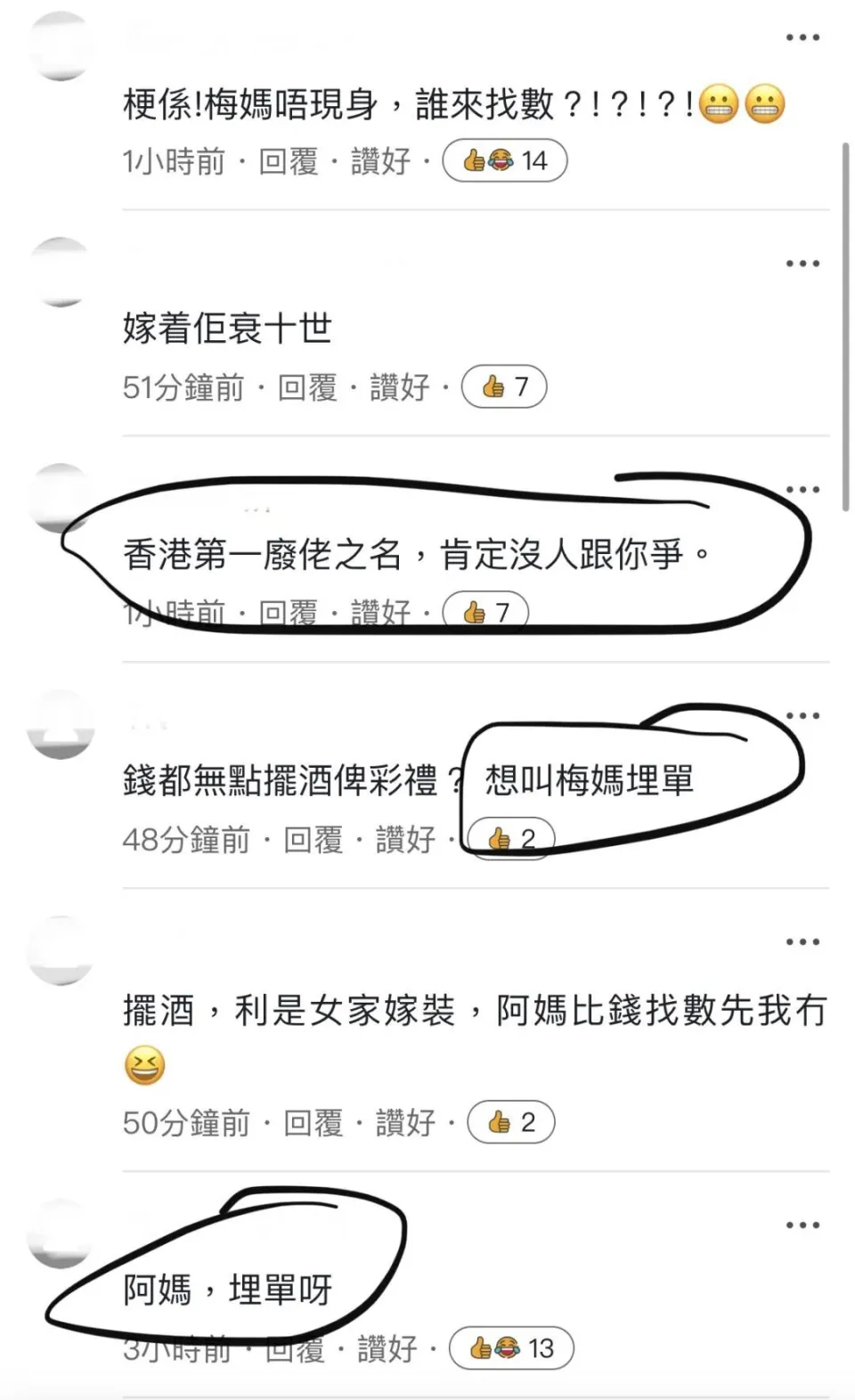 梅启明想在结婚前找到母亲,让母亲见证自己的人生大事,看似一片孝心,但他的这种举动反而令一众网友不齿。大家纷纷吐槽:“固然啦,梅妈不现身,谁来买单?”“香港废佬第一名,肯定没人跟你争”“就是想找妈妈过来买单。”