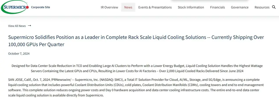 财联社10月8日讯(编辑 史正丞)就在环球股民满怀等待地关注周二A股怎样演绎之际,科技圈子的日程表不知不觉间已经在为2025年做准备了。 本地时间周一,CES(斲丧电子展)官方发布公告称,英伟达创始人兼CEO黄仁勋将在3个月后的本地时间1月6日,也就是拉斯维加斯大秀正式开幕的前夜发表主题演讲。 (泉源:CES)Blackwell架构桌面级GPU来了? 在来岁初的谁人时间点上,黄仁勋极有大概会发布RTX 50系列显卡,也就是接纳Blackwell架构的5090。 根据此前的内部人士爆料,RTX 50系列原来就是英伟达在下一届CES展期间宣发的重点。之前也有传言称,RTX 5090有大概会与RTX 5080一同表态。据称这两款显卡都会“更加耗电”,其中拥有21760个CUDA核心的5090能耗将到达600瓦,比起4090多出150瓦。 爆料称,两款新卡都将利用GDDR7内存,其中旗舰显卡的显存能够到达32GB。 从斲丧电子更新周期来看,英伟达初次推出 RTX 40显卡已颠末去两年时间——公司最早是在2022年9月公开4090和4080。而在本年初的CES展会上,公司又更新了40系列的Super显卡,包罗RTX 4070 Super、RTX 4070 Ti Super和RTX 4080 Super都在本年早些时候上市。 毫无疑问,身为3万亿美元“AI芯片帝国”的掌门,黄仁勋肯定会花不少精神夸大人工智能硬件和软件的发展。但对于投资者而言,没有什么能比直白的GPU出货数据更能鼓动对于将来的向往。 超微电脑披露积极出货数据 截至发稿,作为“英伟达朋友圈”的核心公司,服务器生产商超微电脑周一上涨超15%。消息面上,公司发表声明,偏重夸大了液冷办理方案的积极出货环境。 本地时间周一,公司发表了一份题为《超微巩固其在完备机架规模液办理方案中的向导职位——如今单季度出货量高出10万个GPU》的公告。 (泉源:超微电脑) |