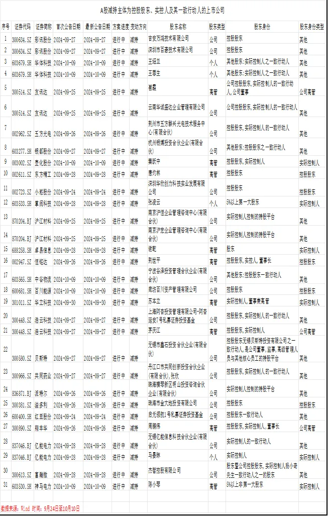 对于减持缘故原由,多数股东给出的表明为“自身资金需求”,尚有基金到期退出需求、因违约被逼迫实行被动平仓等 文 | 《财经》记者王颖 编辑 |杨秀红 履历此前一波A股市场的快速反弹后,部分上市公司股东开始加快减持。仅国庆节后两个交易业务日,A股就有近百家上市公司披露了减持操持和减持效果公告。 假如把时间线拉长,从本轮上涨行情的起始日9月24日算起,克制10月10日,根据Wind(万得)数据,有158家上市公司的263名股东披露减持操持,有221位股东实施了减持。实施减持的股东一样寻常此前就已发布减持操持,选择于克日“落袋为安”。相比之下,同期仅有17家上市公司的20名股东披露增持操持,有68名股东完成了增持。 而在行情启动前的10天(9月14日-23日),有60家公司的155名股东披露减持操持,有46名股东完成了减持;有14家公司的22名股东披露了增持操持,64名股东完成了增持。对比之下,减持的股东人数显着增长,增持股东数目则变革不大,这也引发了市场对于上市公司股东信心的讨论。 从减持缘故原由来看,多数股东给出的表明为“自身资金需求”,尚有基金到期退出需求、因违约被逼迫实行被动平仓等。 “股价的大幅上涨使得一些股东尤其是早期进入且资本较低的股东,有了赢利告终的动机。而且,近期部分股东减持幅度较大的公司筹谋根本面较差。对于这类公司的股东来说,大概对公司将来发展信心不敷,选择减持套现。同时,一些股东此前因股价连续走低被‘套牢’,股市行情转暖提供了‘解套’的机遇。别的,也有部分股东担心后续减持政策逐渐收紧,倾向于尽早套现,以避免大概出现的政策限定对其减持活动造成倒霉影响。”南开大学金融发展研究院院长田利辉告诉《财经》。 清华大学国家金融研究院院长田轩对《财经》体现,从减持产生的市场效应来看,减持的增多势必会对连续高涨的市场感情产生一些“降温”效应。且当减持规模连续扩大、减持活动过于频仍时,大概进一步引发市场担心甚至恐慌,引发股价连续下跌,增长市场颠簸风险。 田轩提示,下一步必要密切关注此类减持公告,分析详细减持缘故原由、规模、方式等,保障干系活动正当合规,并加强预期引导,防范市场风险。 对于近期的减持征象,泽平宏观首创人任泽平发文发起规范上市公司减持,不分红、破发、破净、财政粉饰的上市公司严禁减持,直到把公司筹谋好、为股东创造价值为止。对于清仓式减持的上市公司,严格检察财政规范和筹谋康健环境,避免造假上市圈钱割韭菜。“肯定要提高上市公司质量,改变融资市,变为投资市,从长期让投资者有赚钱效应,云云股市繁荣可期。” 值得一提的是,近期上市公司回购“热度”连续攀升,尤其是此轮股市反弹以来,上市公司披露的回购规模同比已翻倍。 近期,在场外资金跑步入场的同时,场内部分股东却选择减持逃离。 从减持比例看,超半数股东拟减持比例不凌驾公司总股本的1%。现在看,操持减持比例最高的为万朗磁塑,其股东安徽高新金通安益二期创业投资基金因自身资金需求,拟减持公司股份不凌驾720万股,减持比例不凌驾公司总股本的8.42%,而其公告前的持股比例8.42%,该操持可谓“清仓式减持”操持。 减持比例较高的尚有铭普光磁,其控股股东杨先辈拟协议转让1180万股,占公司总股本的5.01%。别的,福赛科技的两位股东拟合计减持不凌驾6%公司股份。 尚有股东或高管“组团”减持。长青科技的两名大股东及其同等举措人、持股5%以上的股东,齐齐公布因自身资金需求操持减持,7家减持主体拟合计减持不凌驾1229万股,占公司总股本的8.91%。 9月26日,星辰科技五名董事、监事、高管团体公布了减持操持,累计减持不凌驾255.5万股,减持缘故原由均为个人资金需求,减持股份泉源均为上市前取得(含权益分派转增)股份。特变电工的三名董监高也于10月7日披露了减持操持,合计拟减持66.9万股。9月26日,新洁能披露了减持效果,四位高管分别减持套现了757万元、498万元、262万元以及356万元。 从减持金额看,不乏超亿元的大手笔减持。东鹏饮料于9月26日公告称,持股5%以上股东天津君正创业投资合资企业(有限合资)于2024年7月25日至2024年9月24期间通过大宗交易业务和集中竞价方式累计减持公司股份436万股,占公司总股本的1.0911%,其间减持均价为221.74元/股,减持金额约9.68亿元。 已完成减持的股东中,减持总金额超亿元的主体,尚有北斗星通股东国家集成电路产业投资基金股份有限公司、东峰团体股东东捷控股、普门科技三名股东厦门瀚钰、厦门乔川、厦门普荣等。 从减持主体范例来看,在前述263名拟减持的股东中,公司类股东有156家,高管有79名,个人股东有28名。此中有31名为公司控股股东或实控人,或二者的同等举措人,或实控人的持股平台,合计占比约12%。 以神马电力为例,公司于10月8日晚公告,实控人陈小琴拟减持不凌驾1296.79股,即不凌驾公司总股本的3%。按神马电力10月8日收盘价26.24元/股盘算,减持金额可达3.4亿元。10月9日-10日,公司股价分别下跌9.98%、3.77%。 与在股市反弹后减持的股东差别的是,尚有股东在低位“卖飞”了股票。品渥食品的一位股东在9月19日-24日这几天连续减持了200多万股,恰恰错过9月26日-10月8日该股的四个20%的涨停板。 在上百家公司排队减持的同时,尚有部分公司发布增持或回购操持。 Wind数据体现,9月24日-10月10