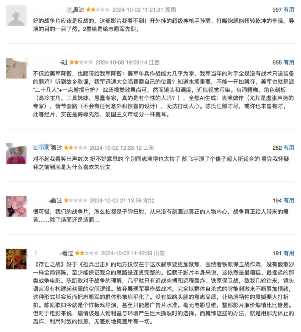 文 | 安青 编辑 | 9527喵咕君 本年国庆档院线影戏的表现比起往年真的寡淡了太多了,除了一部《志愿军2》之外,大片险些没上,其他影戏只有阵容吸睛,剧情完全不及预期。 而唯一一部可以撑局面的影戏《志愿军2》,也在口碑上出现了显着的争议。 点开《志愿军2》的豆瓣批评区就是网友的同等吐槽“导演的目的一目了然,两星是给志愿军先烈”、“个别同道演得也太拉了,陈飞宇演了个傻子超人挺适合的”、“演出造作、情节套路、无法感动民气。陈氏江郎才尽,大概也未曾有才”。 网友的点评很犀利,但也很客观。 《志愿军2》相对于第一部简直是更好看了,但以陈凯歌的水准,这部影戏的豪华阵容和重工品质来看,影戏的剧情叙述根本不及格。 很多观众对于影戏有肯定的宽容滤镜,完完全满是由于影戏的题材,以及影戏聚焦的主人公是一群可亲可敬的志愿军兵士。 抛开这统统来看,《志愿军2》的标题重重,部分演员演技太差,剧情文戏部分刻意煽情,乃至在剧情线上,《志愿军2》都显得很疏松。 这些实着实在存在的标题,其实就是《志愿军2》在票房和口碑方面都逾越不了《长津湖》的原因。 而且客观来说,《长津湖》的大爆已经让这类题材的市场招呼力疲软,《志愿军2》拍出了低配版《长津湖》的水准,观众当然不乐意买单,当然会有质疑的声音。 但其实,《志愿军》本可以克制如许的窘况的。 近期,唐国强就对着《志愿军》的编剧狠狠吐槽了导演陈凯歌,他直言“再弄这个片子就不是志愿军了,变发展津湖了,写毛主席发兵的艰巨,所有艰巨都被他们砍了,凯歌作为一个大导演,这是一个作为汗青留下来的(影戏),肯定是上、中、下,你现在弄成商业片了”。 以唐国强的资历,即便面对陈凯歌,他也丝绝不虚,他言辞犀利,在镜头眼前唐国强也开门见山,一点脸面都不给陈凯歌留,而细细分析唐国强的话语,真的字字珠玑,说出的标题不正是《志愿军》系列越看越别扭的原因。 相比于《长津湖》,《志愿军》一上线就找到了差别的切入点,毛主席抵住万难做出决议,彭老总掉臂统统带着志愿军与对头对抗,联合国方面冲动人意的外交局面,全都是《长津湖》没有的情节。 可到了《志愿军2》,视角局限于战场,朱一龙饰演的脚色扛起第二部的看点,可终极活下来,而且连续朱一龙的看点,撑起第三季焦点的脚色是陈飞宇饰演的人物。 值得一提的是,陈飞宇饰演的孙醒是假造的人物,这也意味着观众等候的汗青正剧题材的影戏,现在成了带有传奇色彩的假造战争片。 也是如许的趋势,让不少网友看到了陈凯歌明晃晃的私心。要知道巨大汗青题材国家是有补贴的,一旦影戏聚焦真实的汗青人物,就可以拿到不少的补贴。《志愿军》第一部完全可以够到这个尺度。 但是到了第二部,影戏就从汗青战争片酿成了剧情战争片,影戏在定位上的变革,显而易见,而这么一操纵,说是偷梁换柱都不为过。 如果说定位改变,能拍出志愿军的巨大也就算了,偏偏《志愿军》从第一部开始就有一位演技不外关的陈飞宇,以陈飞宇在内娱的演技力气,人气咖位,他够不上如许的制作设置,但由于他是陈飞宇,是陈凯歌的儿子,所以他出演大型工业影戏,担起主角,占据紧张宣传位就变得十拿九稳。 演技方面,陈飞宇的塑造总是用力过猛,他演得志愿军兵士,好逸恶劳,台词模糊,塑造和表现力都在其他演员的对比下毫无竞争力。 形象方面,陈飞宇是白面小生的范例,演芳华男大,偶像少年还说得已往,可在战争题材里,他小胳膊小腿,满脸的土都遮不住皮肤的嫩,观众看到他就出戏。 以陈凯歌的力气,不大概看不出陈飞宇的标题,但他偏偏就要用陈飞宇,想要捧红儿子的心思可以说是绝不粉饰。 只惋惜,陈飞宇真担不起如许的重任。 作为第二部里唯一存活下来的脚色,第三部中的主人公是谁想都不消想,但前两部在刻意克制陈飞宇戏份的情况下,观众都有这么强的排斥生理,很难想象第三部的影戏票房和口碑尚有没有保障。 但可以肯定的是,就算《志愿军》这么一个优质的大项目,捧不红一个陈飞宇,而陈飞宇的影视剧资源,也仍然不受影响。 现在陈飞宇不但有好几部优质的库存,正在拍摄的这部古装剧,不但是大IP,还搭档了顶流小花迪丽热巴,从他打仗的影视剧资源,到他搭档的演员,岂论是主流圈还是流量圈都是顶级设置。 但现在来看,陈飞宇的代表作里只有一部《点燃我 温暖你》拿得脱手,关键是这部作品之后,陈飞宇的演艺事业好不容易有了转机,结果爆出恋情床照,趁便还由于口呼吸备受吐槽。 不是说演员不能有恋情,只是作为演员陈飞宇从始至终都差点儿力气和运气,面对偶像剧题材,他的演技就已经有点拼集了,到了《志愿军》如许考验演技的大项目里,他的劣势只会被显现得更加显着。 惋惜,陈飞宇简直是拿到了同龄演员够不上的资源,却没有拿到观众认可的口碑,照这么下去,这不知道《志愿军》系列是拿来捧红陈飞宇的,还是害陈飞宇彻底断送路因缘的。 陈凯歌这一波儿操纵,真算得上赔了夫人又折兵,不但让一个大项目有了显着拖后腿的瑕疵,还让陈飞宇的口碑受到重创。 末了,你对唐国强对陈凯歌的吐槽有什么看法?怎样对待《志愿军》显着硬捧陈飞宇的迹象?在批评区到场讨论吧。 |