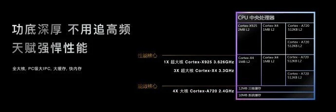 10月9日,联发科正式发布了全新一代旗舰移动平台:天玑9400。从发布会上透露的信息中,我们可以看到本次天玑9400不光采用了包罗Cortex-X925超大核在内的第二代全大核CPU架构,同时还应用了第二代台积电3nm制程工艺,带来性能与能效的双巨大幅提升。 可以看到在已往的几年里,联发科持续不停在旗舰级手机SoC市场发力,先后带来了拥有杰出能效体现的天玑9000系列以及开创安卓全大核架构的天玑9300系列等一系列新品,特殊是天玑9300系列的惊艳体现进一步巩固了联发科在旗舰手机SoC市场的领先职位。因此本次天玑9400的实际性能体现,特殊是能效体现备受各人的等待,下面我们就通过架构解读和实际测试来带各人一探毕竟。 天玑9400架构解析:3nm制程加持第二代全大核架构 按照惯例,在举行性能实测之前,我们先带各人来相识一下天玑9400的团体架构筹划。天玑9400作为一款定位旗舰级的手机SoC,其全面采用了当下领先的各项先辈技能,比方台积电第二代3nm制程工艺、全新Cortex-X925焦点、OMM追光引擎等。 CPU:首发Cortex-X925大核 先说各人比力关心的CPU部门,本次天玑9400采用了第二代全大核架构,详细焦点设置如下: 1颗Cortex-X925焦点配备2MB L2缓存 3颗Cortex-X4焦点配备1MB L2缓存 4颗Cortex-A720焦点配备512KB L2缓存 12MB三级缓存 10MB体系缓存 从团体看,手机SoC的CPU部门采用全大核架构已经成为了主流趋势,特殊是在行业普遍关注能效体现的配景下,全大核架构的优势也日渐明显。起首,与各人普遍认知的小核能效更好的观念有所差别,在实际的应用当中,得益于大核的规模优势,其在多个频点下的能效体现普遍优于同代的小核架构。 天玑9400所采用的第二代全大核架构在前代的底子上,将一颗大核升级为了全新的Cortex-X925焦点,据称联发科深度参加了Arm该架构的研发过程。 Cortex-X925焦点架构的一大亮点是其单线程每时钟指令(IPC)性能得到了大幅度提升,详细到天玑9400上,相比上代大核Cortex-X925的IPC提升高达15%,这意味着天玑9400的CPU在同频率下可以或许发挥出更高的性能。 同时Cortex-X925拥有10宽的解码和调理宽度,大大增长了每个周期处理的指令数量。这一增强功能使内核可以或许同时执行更多指令,从而进步执行单元的使用率和团体吞吐量。同时Cortex-X925还具有高度先辈的分支猜测单元,可减少错误猜测的分支数量。 固然天玑9400仍是4+4全大核架构,但是联发科大幅提升了团体的缓存设置,二级缓存提升幅度高达100%,三级缓存提升幅度高达50%,以提升多核性能以及高负载场景下的团体性能体现。同时,天玑9400还可以实现对10.7Gbps LPDDR5X内存的支持,从而全面提升团体性能体现。 Arm Cortex-X925还一个平凡用户很少关注的优势是其与第二代Arm v9.2架构无缝集成,可以在一样寻常应用场景下大幅优化能效体现。 天玑9400的CPU部门另有一个值得关注的信息点,是其在本年来看并不算高的CPU频率。天玑9400的Cortex-X925焦点主频为3.62GHz、Cortex-X4焦点主频为3.3GHz,与当下爆料的其他家突破4.0GHz的手机SoC CPU主频相比显得有些守旧。 因此,我们也就天玑9400的CPU主频选定题目和联发科举行了沟通。从沟通中我们得知天玑9400在选定CPU主频时格外注重能效体现,并且得益于领先的CPU架构和IPC提升,天玑9400可以在当下的频率标定下,实现具有优势且满意用户真实需求的性能体现,因此无需过分拉高CPU主频以满意性能需求。这也正是联发科天玑9400在CPU筹划上的独到之处,进步芯片的IPC而不是靠拉高频率来提升极限性能,毕竟“根本”先辈才是真领先。 GPU:持续引领移动光追生态 看完天玑9400的CPU部门,我们再来看看天玑9400的GPU部门。本次天玑9400搭载了Immortalis-G925 GPU,共有12个焦点。据相识,Immortalis-G925是ARM现在最新的GPU架构,与上一代G720相比,性能、能效、光追都有大幅跃进。 在采用最新GPU架构的同时,天玑9400还实装了星速引擎超分技能、OMM追光引擎等一系列领先科技。我们先来讲星速引擎超分技能,这是一种针对移动装备特殊优化筹划的超分技能。 当下的旗舰手机普遍配备1.5K以致2K分辨率的屏幕,但是主流手机游戏的渲染分辨率始终倘佯在720P的级别,这是因为现在的手机SoC固然具备直接渲染2K分辨率游戏画面的本领,但是相应也会大幅度提升功耗,对于手机的散热和续航带来挑衅。 不外通过超分技能,游戏画面可以先以较低分辨率渲染,然后从低分辨率上采样到高分辨率举行体现,从而办理游戏渲染分辨率普遍较低的题目。并且通过针对性的软件硬件优化,超分功能的运行仅需斲丧少少的功耗,这就是意味着借助该技能玩家可以痛快酣畅体验2K级别的游戏画面,但是手机SoC功耗并不会明显增长。 与现在已经存在的移动端超分技能相比,星速引擎超分技能不光具有精彩的能效体现,同时开发者也更容易实现兼容,加速超分技能的在应用端的广泛遍及。 天玑旗舰芯片一直以来都是移动光追技能的推动者,这次天玑9400也为移动端带来了一项新的光追技能:OMM追光引擎。该项技能现在正在被顶级的PC平台3A游戏大作采用,可以或许带来更为丰富的画面细节,并且减少必要渲染的多边形的数量,可以进步渲染服从,进步光追游戏的团体体现。 除了CPU和GPU的大幅提升之外,天玑9400本次还带来了第八代NPU处理器NPU 890、最新升级的星速引擎、天玑AI 5G方案、4nm制程Wi-Fi/蓝牙模块等创新科技。 从天玑9400的架构筹划中,我们可以看到