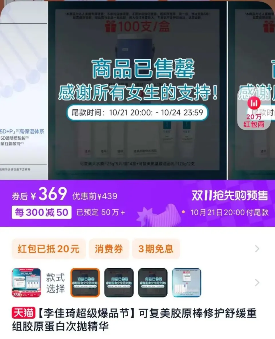 相比客岁10月24日淘宝开启双十一,本年整整提前了10天。10月14日,淘宝、京东、拼多多齐齐拉开了双十一的帷幕,抖音、快手、小红书等平台也都早早进入“战斗状态”,各方平台共同将双十一战线拉长至一个月左右。10月14日上午7点半,李佳琦直播间的助播场率先开播,观看人数很快就凌驾1000万,整场直播连续了23个小时,相当于在隔天清晨6点半才竣事直播。新榜编辑部获悉,李佳琦直播间双十一加购金额同比增长凌驾20%。另据资深电商从业者“倪叔”透露,本年李佳琦直播间预售GMV秒破亿。10月15日,广东夫妇、琦儿各安闲抖音开启了双十一美妆大促专场。曾在7月因带货产物翻车公布退网的骆王宇也在近期回归,并于10月14日在抖音开启了首场双十一大促直播。章小蕙、董洁也在近期于小红书准备双十一直播,发布了多期选品预告视频。固然各电商平台和主播们为双十一打得热闹,但交际平台的讨论声量相比往年有所回落。据新榜编辑部观察,本年“双十一”干系话题鲜少登顶或长时间霸榜热搜,也有网友体现“没有感受到本年双十一的氛围”。那么本年双十一开局怎样?联合预售首日体现及新榜旗下多平台数据工具,让我们来一探毕竟。最受瞩目标头部玩家依然是李佳琦,尤其在这个大主播们的多事之秋。10月14日晚8点,陪同李佳琦在直播间略带沙哑的吆喝声,双十一熟悉的“内味”对了。该场直播累计上架了500个链接,按照彩妆、护肤、食品、服饰等品类举行了过细分类。与往年一样,国货品牌还是李佳琦直播间的抢手货,累计上线超200个国货产物链接。预售开启后不久,李佳琦直播间内多款国货单品很快售罄,好比可复美胶原棒在3分钟内预定量超50万件。其他“老朋侪”如珀莱雅、薇诺娜、夸迪等品牌也登上了预售首日的直播间,珀莱雅更是上线15个链接,单个链接最高预定量凌驾30万。国货品牌之外,欧莱雅、雅诗兰黛等国际美妆品牌也在李佳琦直播间体现活泼。以欧莱雅为例,累计上架了23款产物,是当晚直播间上架产物数目最高的品牌,其次是雅诗兰黛上线的16款产物。本年双十一,李佳琦直播间初次出现“新品橱窗”玩法,为单品提供更大限度的曝光别的,也有一些新面貌首登李佳琦直播间,好比百年国货护肤品牌双妹,当晚直播以超1万的预定量售罄下架,并体现已经“努力以赴加急备货中”。直播中,李佳琦多次夸大本年双十一给到了“史上最大力大举度”。撤除品牌提供的优惠折扣,李佳琦在14号和15号两天发放价值5亿元的现金红包,仅用于直播间消耗,并号称“每个账号一天最多可以领30个红包”。电商从业者小智向新榜编辑部体现,这些红包是由主播自费充值进平台,“相当于主播补贴消耗者”。对于本次双十一,李佳琦与背后的美ONE也是分外器重。从10月4日起至10月13日,李佳琦直播间一连10天为双十一预热,单场直播均凌驾14个小时。美ONE自制综艺《新全部女生的OFFER》也于10月8日上线,共计8集,单集最高播放量到达312万,总播放量到达2257万。相比往年,本年《新全部女生的OFFER》到场了观众机制,给在场观众更充实的体验感。李佳琦旗下“全部女生”“全部女生的衣橱”两个助播直播间也同时到场了本年双十一大促。这也是两个助播直播间第二次到场双十一,此中“全部女生”直播间观看量为495万,“全部女生的衣橱”直播间观看量凌驾1000万,两个直播间在选品上也各有侧重,前者在预售首日主推日用百货、出行旅游,后者则主攻服饰,与李佳琦直播间形成肯定的差别化。李佳琦之外的其他淘系主播直播间也在双十一预售首日实现突破。据36氪报道,“蜜蜂惊喜社”“香菇来了”“陈洁Kiki”等直播间一连公布首小时GMV破亿,破亿的速率和首小时成交都凌驾客岁。团体来看,李佳琦在淘系战场还是超头的存在,再加上本年各大流量主播接连翻车。从“疯狂小杨哥”的月饼风波到“东北雨姐”售卖红薯粉被罚,多位大主播迎来“多事之秋”。这也促使品牌方把更多的预算放在专业性更强的主播身上,有部分品牌便向新榜编辑部体现本年双十一更青睐于李佳琦。固然李佳琦在淘宝双十一预售首日体现亮眼,但他并不是本年第一个打响发令枪的主播。究其缘故原由,与各平台“抢跑”双十一不无关系。此中,抖音电商最早开启双十一,打造“双11先享好物节”的口号。据了解,抖音商城双11先享好物节分为两个阶段,10月8日至10月17日为抢先期,10月18日至11月11日为正式期,并共同官方立减15%、一件低价、超值惊喜券-混资等玩法。不消等待预售,直接现货开卖也是本年抖音双十一的亮点。10月8日,贾乃亮、朱梓骁等抖音主播率先开始双十一的专场直播带货。新抖数据体现,仅10月8日这一天,贾乃亮直播带货的预估销售额就到达了2500万-5000万。10月9日,“与辉偕行”单场直播的预估销售数据到达了5000万-7500万。值得一提的是,在李佳琦直播间售罄的可复美预售款以现货情势上线贾乃亮直播间,间接反应出不同头部主播手中各自的货源环境。抖音电商平台的数据体现,10月8日至12日仅4天时间,凌驾3000万成交的场次就高达21场。值得留意的是,7月由于带货油橄榄精华“翻车”、公布退网的抖音美妆一哥“骆王宇”重回大众视野,并在10月14日再次直播带货,其带货商品以美妆护肤为主,直播最高在线人数到达了3.2万人,单场直播预估销售额在1000万-2500万左右。只管曾带