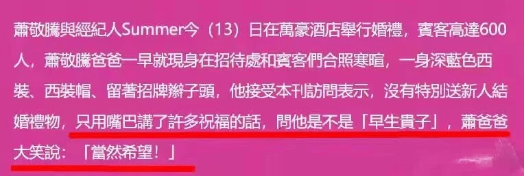 文 | 木然 编辑 | 三元 关于明星艺人们的感情话题,通常是热度最高的。 鹿晗和关晓彤官宣恋情时,就导致某交际平台瘫痪,而其他明星,无论是完婚还是仳离,都得是大爆话题。 紧随黄晓明之后公布恋情的黄轩,得到了各人的一致祝福,另有网友表现看到他和女朋侪,感觉又信任爱情了。 现在,萧敬腾和妻子林有慧,也终于在万众瞩目下举行婚礼。 看到夫妻俩的婚礼现场,才知道这个天下上真的有人深爱着相互,也真的有人狠狠的幸福着。 一,16年爱情长跑终成正果,夫妻俩恩爱如初萧敬腾和林有慧官宣恋情时,就曾爆过热搜,完婚天然也不破例。 不外这一次,各人更多的不是震动,而是祝福。两人之间固然有着14岁的年龄差,但丝绝不影响他们的感情。 完婚当天加入祝福的明星高朋不少,不光看到了同样新婚不久的陈乔恩和艾伦,这对夫妻还把伴郎明道也带来了。 贾静雯夫妇则是带着自己的三个女儿一同表态,贾静雯看起来还是那么年轻,疼妻子的修杰楷也越来越帅了。三个女儿则是同穿粉色系的制服,戴着花环,一个比一个漂亮。 百口人一起拍完了,夫妻两人还单独合影,各种秀恩爱,简直不要太幸福啊! 林有慧的朋侪舒淇,徐若瑄等人,也都低调表态,玉人们同框别提多养眼了。 而向太,向华强作为萧敬腾的干爸干妈,天然也不能缺席他的婚礼,向太妆扮的很谨慎,粉色拖地长裙配盛饰,身旁的向华强则是一身洋装套装。 另有小S夫妻也了现场,可谓是用实际办法力破反面听说。两人合照时,许雅钧紧紧贴着小S,看得出夫妻两人感情不错。 不外,当天的主角还是萧敬腾和林有慧夫妻,婚礼现场两人换了不少造型,林有慧的每一套婚纱,都能与萧敬腾的衣服配到一起,让两个人看起来更般配了。 而从这些婚纱也能看得出来,耗费了萧敬腾不少心思,有显现林有慧温婉大气的,也有显现林有慧性感妩媚的,另有贵气富丽的,可谓是满足了一个女孩对于婚纱的全部等待和想象。 此中最用心的一套,就是两人官宣的纯白色缎面婚纱和纯白色新郎服了,亮点不是在衣服的格局上,而是林有慧的头纱。 这些小宠物都是两人这些年来领养的,对于夫妻两人来说,宠物们与家人无异,因此这样的重要时刻,也会让它们以别出心裁的方式到场婚礼。 夫妻两人的感情可以或许维持长达16年之久,显然是因为他们富足爱对方。 婚礼现场,萧敬腾对林有慧说,“我们约定是八个辈子,每一世都会找到你,用各种方式,各种节目。” 而林有慧的致辞是“我常想上一辈做了什么功德,可以有这样幸福的人生,上辈子百分之百是个好人。我固然比较早到这个天下上,但身边人都知道,你比我成熟很多,我这辈子肯定会做更多功德,下辈子还要跟你在一起。” 夫妻两人双双泪洒现场,此刻台下亲朋挚友的掌声和庆贺,仿佛都失去了声音,感觉那一刻,两人的眼中只有对方。 而婚礼之后,现场也是直接嗨起来了,小S热舞,庾澄庆等人上台唱歌,直接把婚礼变成了演唱会的规格,而且还是群星级别的。 从这一点就能看得出来,林有慧和萧敬腾夫妇在圈内的因缘有多么好了。 毕竟不光是萧敬腾是各人耳熟能详的音乐人,林有慧也有自己的娱乐公司,不少明星都是被她带出来的,因此,两人的婚礼现场比各大晚会红毯的明星还多。 二,萧爸催生,林有慧:这是一个选择,不是一个使命不外在两人的婚礼上,也有一个小插曲。 原来夫妻两人完婚,父母上台致辞是再常见不外的环节,但萧敬腾的父亲却就地催生。 着实,对于其他新人来说,催婚也正常,但林有慧和萧敬腾毕竟相差了14岁,本年的林有慧已经51岁了,就算调养的很好,想要生孩子也是高龄产妇了,非常危险。 何况两人在一起16年的时间,不绝没筹划要孩子,至于缘故原由想必家人是再清晰不外的。 但萧敬腾的父亲不光在婚礼上催婚,担当采访时,被问到是不是想让两人早生贵子,萧敬腾的父亲大笑着说固然盼望! 着实对于生不生这个标题,萧敬腾夫妇早就给了答案。 林有慧曾表现,完婚和生子从来都不在她的积极清单中,而不想生和不能生是不一样的,她们是因为思考了无数次,决定不生孩子。 而且在林有慧看来,生孩子与否是一个选择,不是一个使命,两人现在没有孩子,生存的也很开心。 萧敬腾给出的来由则是更加直接,他在自传中就提到过,不想让未来的妻子因为生子产生痛楚。 他知道生孩子是一件很辛劳的事变,尤其是女性很辛劳,而且提前通过记录片,电视节目等做过相识,不想让另一半蒙受这些。 如果未来有一天两人悔恨了,会去认养小孩,即便没有血缘关系,他们的爱也是很纯粹的。 这也印证了林有慧说的,生与不生,都是因为爱。 萧敬腾爱林有慧,不想让她蒙受这样的痛楚,一如当初林有慧为了萧敬腾的事业,选择整整16年不公开感情一样平常。 正是这份刚强的爱,让他们决定把对方当成最重要的人,夫妻两人早已告诉了全部人他们的选择。 结语 自己生子与否,就是夫妻两人的决定,与他人没有关系。 父亲的等待和愿望是好的,但标题在于不会不知道夫妻两人的想法,在这样的前提下还要公开催生,显然是没有顾及两个孩子的感受。 好在无论别人怎么说,萧敬腾和林有慧夫妻是富足刚强的,这才是真正的爱情啊! 你有没有被这样的爱情绪动呢? |