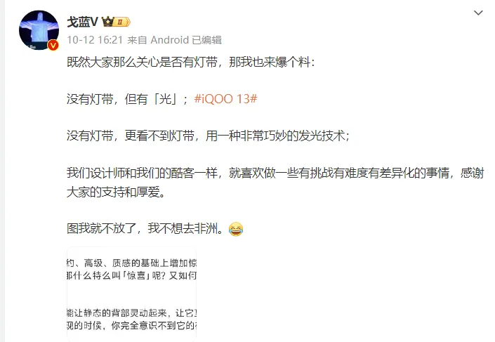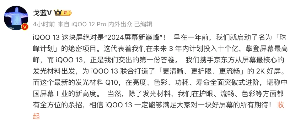 本日,iQOO手机官方再次对即将到来的iQOO 13手机举行了新品预热剧透。 京东方BOE的官宣消息显示,“京东方携手vivo iQOO为iQOO13团结打造全新的超旗舰2K LTPO直屏! 同时,iQOO13环球首发京东方全新一代发光材料! 为用户带来「更清楚、更护眼、更流通」的视效体验!” iQOO手机的官方消息则显示,“顶峰之上,再造顶峰!iQOO携手京东方BOE 为iQOO13团结定制2K Q10珠峰屏!①环球首发BOE最新Q10发光材料,亮度、色彩、功耗、寿命相比上一代全面进阶;②环球首发安卓手机OLED圆偏振光护眼技术,全面开启硬件护眼新时代。10月尾见!” 据悉,iQOO 13将搭载的这块屏幕是BOE最新发光材料,在亮度、色彩、功耗、寿命全面突破式进阶。全局峰值亮度提拔12.5%、偏色减轻50%以上、寿命提拔33%、拖影减轻15%、功耗低沉10%。 与此同时,这款新机的正面屏幕似乎会采取中置打孔的筹划,并联合四周超窄边框,带来更好的显示效果。 iQOO 产物司理 @戈蓝V 对此表现:“iQOO 13 这块屏绝对是‘2024屏幕新顶峰’!早在一年前,我们就启动了名为「珠峰筹划」的绝密项目。这代表着我们在将来 3 年内筹划投入十个亿,攀缘屏幕最高峰,而 iQOO 13,正是我们交出的第一份答卷。” 其他规格方面,全新一代的iQOO 13将会搭载最新的骁龙旗舰平台,并带来非常刁悍的性能体验升级。内置6开头硅电池,支持120W超等闪充。另有望支持 IP68 防护品级以及 USB 3.0 有线传输。 外观筹划方面,博主@数码闲聊站 克日的一份爆料中提到:“之前偷偷摸过真机了,这个光效与镜头经典筹划融合得很好,走硬核科技风,不消也看不出来;首推白玻璃版本,2K纯直屏显得更窄,镜头DECO很平,一样寻常利用和打游戏手感挺不错” 与此同时,这位博主还展示了一张手机后摄模块的细节图片。干系推测以为其爆料中提到的新机就是即将到来的iQOO 13 手机。 (图片来源:微博@数码闲聊站) 与此同时,iQOO 最新的预热中也提到了新机外观的部门细节信息。 官方信息显示,全新的iQOO 13后摄模块中没有配备灯带,但却有“光”,由于其采取了一种非常巧妙的发光技术。 就此来看,全新iQOO 13的实际外观怎样也令人期待。 别的,全新的iQOO 13还将支持无网通信技术。 据悉,在2024 vivo开发者大会开幕演讲中,vivo 正式发布了基于蓝牙实现行业首创的公里级无网通信技术,在无网空旷环境下,支持最远凌驾1.5公里点对点语音对讲及笔墨传输,确保用户在徒步、露营等无网环境下仍能保持通信不绝联。 据先容,通信接力技术的中继本领还可实现求救笔墨广播的最大传输间隔再翻倍。这次公里级无网通信技术将以对讲机应用的形式,在vivo X200系列上首发,部门机型也将在公测期间一连上线。 |