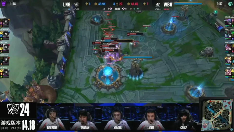 本日天下赛终于再次开赛,首场八强赛就是LPL内战,终极WBG 3:1 爆冷击败LNG,晋级四强。 WBG 1:0 LNG 首局LNG自作智慧,把蓝色方让给WBG,让出了OP好汉蝎子,自己去赤色方,选了陷阱好汉狐狸和烬。 WBG利用龙魂听牌,引诱LNG去小龙,自己则Rush掉大龙,打开了局面。 WBG携大龙Buff从下路推进。LNG过于心急想要绕后开团,WBG防范得很好,直接击杀LNG 4人,先下一城1:0领先。 LNG 1:1 WBG 次局两边打得更为剧烈,本来WBG已经上了高地,有一波的机遇。但是LNG上野配合完善,将WBG击退,并拿到土龙魂。 LNG有土龙魂加持,加上三C发育完全,在后期团战得胜,扳平比分1:1。 WBG 2:1 LNG 这局小虎打出了他在本届天下赛的最高光时间,8分钟上路团战,小虎发条大中4人,堪比泯没名场面。 LNG陷入劣势,但依附Gala卡莎多次飞后排切死Light的艾希,硬生生将局面打了返来。 末了时间局面再次反转,WBG孤注一掷打大龙,LNG开团被小虎金身规避。而Light艾希的箭被Hang老牛躲过,却阴差阳错掷中TP的Zika贾克斯。WBG劣势下团战大胜,以2:1领先。 WBG 3:1LNG 第4局WBG BP完善,固然放给LNG胜率很高的永恩,但是己方选到了完善阵容。又逼迫Gala继承选陷阱好汉烬。WBG以3:1得胜,爆冷晋级四强! 锻练差距 本日两边差距最大的位置,肯定是锻练。起首LNG自动选赤色方就很迷,前3局都是蓝色方得胜,让己方陷入1:2落伍的局面。就算LNG真的在赤色方准备了战术,先在蓝色方赢1局,再去赤色方用准备的战术不是更好吗? 其次LNG喜好选狐狸和烬,这双C在瑞士轮阶段已经被证实是陷阱。而WBG选的纳尔和EZ等,都是他们在瑞士轮频频拯救队伍的好好汉。包罗WBG在局内的各种细节和设计,都堪称完善!Daeny锻练在苏息室的反应,也都很风趣。 Gala该哭了 Gala把钱借给Scout,瑞士轮3-0晋级,原以为是夺冠热门,结果却在淘汰赛输给WBG,岂非Gala真的有八强魔咒? 固然本年Gala履历了大喜大悲,但是信赖Gala照旧会继承生动在职业赛场,追求冠军! 嫡赛事预告 明天角逐就是备受瞩目的中韩大战,而且是各自赛区1号种子的对决。假如BLG得胜,那么上半区就肯定是LPL队伍进决赛,决赛至少有1支LPL队伍。 HLE固然是LCK的夏季赛冠军,但是上单Doran和打野小花生在天下赛的表现不停欠好,因此BLG照旧很有机遇的,为BLG加油! |