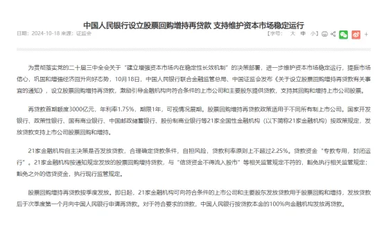 10月18日,记者从公开市场一级买卖业务商中信证券、中金公司两家券商处最新获悉,公司都将果断落实关照的各项要求,正在积极到场交换便利的各项工作。 看点二:股票回购增持再贷款为上市公司带来哪些增量? 上市公司是市场之基。《关于设立股票回购增持再贷款有关事件的关照》提到,设立股票回购增持再贷款,激励引导金融机构向符合条件的上市公司和主要股东提供贷款,支持其回购和增持上市公司股票。 三部门关于设立股票回购增持再贷款有关事件的关照再贷款首期额度3000亿元,年利率1.75%,期限1年,可视情况展期。股票回购增持再贷款政策实用于不同全部制上市公司。国家开辟银行、政策性银行、国有商业银行、中国邮政储备银行、股份制商业银行等21家天下性金融机构按政策规定,发放贷款支持上市公司股票回购和增持。 根据关照,克日起,21家金融机构可向符合条件的上市公司和主要股东发放贷款用于股票回购和增持,发放贷款后于次季度第一个月向中国人民银行申请再贷款。对于符合要求的贷款,中国人民银行按贷款本金的100%向金融机构发放再贷款。吴清体现,将积极共同人民银行做好股票回购增持再贷款政策工具的落地实验,这将为A股市场引入增量资金。 现在来看,股票回购增持再贷款将带来哪些增量?受访者总结来看,此次政策的推出是对资源市场的强力支持,为上市公司提供了新的资金渠道,有助于公司举行市值管理,加强市场信心,提拔市场稳固性,并促进资源市场的康健发展。 上市公司可以通过较低的利率获得贷款,从而低落回购和增持股票的融资本钱。根据政策,再贷款的年利率为1.75%,而金融机构发放的贷款利率原则上不超过2.25%,这对于上市企业和主要股东来说是一个相对较低的利率。 详细到上市公司本身,证监会连续改善资源市场生态,多措并举进步上市公司质量和上市公司投资价值。吴清谈到,捉住进步上市公司质量这个“牛鼻子”,引导和督促上市公司美满公司管理,进一步进步透明度,加大分红、回购力度,落实市值管理责任,不断提拔投资价值,为投资者创造恒久回报。 看点三:各类中恒久资金加大入市力度 可以看到,此次2024金融街论坛年会上,对于资金入市再度有所提及。吴清体现,证监会将进一步加强政策稳固性、透明度和可预期性,让各类资金都可以或许发展得越来越好。记者留意到,现在,证监会正着眼于“长钱更多、长钱更长、回报更优”的总体目的,进一步促进中恒久资金入市,这是市场看得到的办法。尤其是本年9月,中心金融办、中国证监会连合印发《关于推动中恒久资金入市的引导意见》。《引导意见》提出,鼎力大举引导中恒久资金入市,打通社保、保险、理财等资金入市堵点,积极提振资源市场。 《引导意见》提出,加强基金公司投研核心能力建立,订定科学合理、公平有用的投研能力评价指标体系,引导基金公司从规模导向向投资者回报导向变革,积极为投资者创造恒久稳固收益。丰富公募基金可投资产类别,建立ETF指数基金快速审批通道,连续进步权益类基金规模和占比。稳步低落公募基金行业综合费率,推动公募基金投顾试点转通例。鼓励私募证券投资基金丰富产物类型和投资计谋,推动证券基金期货策划机构进步权益类私募资管业务占比,适配居民差异化财产管理需求。 也就在10月18日,财联社记者获悉,继前期10只中证A500 ETF之后,又有25只中证A500场外指数基金快速获批。从产物申报到获批历时仅2天。业内人士预计,上述中证A500场外指数基金将很快启动发售,有望为市场引入更多增量资金。 现在来看,促进指数化投资发展、加强基金公司投研能力等等实质动作均有利于提拔公募基金为投资者创造恒久回报的能力,有利于形成产物线更丰富、业绩稳固性更强、财产管理链条更完备的行业体系,为资源市场和国内经济高质量发展提供有力的金融支持。 |