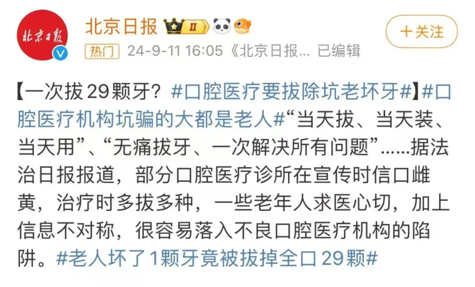 对于打工人来说,坏一颗牙,大概比被开除还难熬。 虽说“牙疼不是病,疼起来要性命”,但一旦进入口腔医院的大门,牙上痛很快就会转移到钱包上。 补牙上百,做根管上千,要是严峻到末了种牙,五位数的开销会直接清空工资卡余额。 在2023年,北京市向阳区的补牙参考代价就高达17092元,这还不算前期的治疗费用 民营牙科诊所,曾经和白酒、眼镜一起被称为“三大暴利行业”。 在不少老板眼里,牙科诊所一年回本、两年小康、三年暴富的创业神话也非常诱人。 客岁,我国口腔行业的市场规模高达2052亿,且在2015~2020年期间,口腔行业每年都保持着17%左右的超高增速。 但是在本年,“狂飙”中的口腔行业,好像陷入了泥沼。 天下的多家连锁口腔医院忽然提桶跑路,倒闭率高达30%,乃至行业内的“龙头”泰康博拜也开始大量出售旗下门店。 “暴利”的口腔行业,为什么越来越难? 口腔医院“最难一年”: 一边爆赚,一边跑路 看个牙而已,怎么会这么贵? 在已往,一口好牙绝对是上流社会的标记,而到了如今,看牙的资源仍然非常高昂。 看牙最贵的项目,莫过于莳植牙。 种牙被称为“蛀牙的尽头”,不少患者都履历过“补牙-牙冠-种牙”的履历。 相较于传统假牙,莳植牙雅观、卫生,但代价也令人咋舌。 2023年之前,想要种一颗牙,至少要预备8000~20000元,算上前前后后的治疗费用,简直就是钱包杀手。 国内的莳植牙一样平常都进口自瑞士、韩国和德国等地,但是一颗出厂几百元的莳植牙,在颠末经销商和口腔医院的层层加码后,代价翻个十倍再正常不外。 有网友讥讽,种一嘴牙,都能在三四线城市买一套房了! 由于中心商太多,从患者身上薅下来的羊毛如何分配并不可考,但莳植牙一个项目,就撑起了整个口腔行业40%的利润。 固然,除了种牙,口腔行业还有另一个“吸金兽”:牙齿正畸。 不管是小学生带的钢质牙箍,照旧白领女性的隐形牙套,都属于正畸项目。 在北京,一次普通的隐形正畸治疗,耗费至少2万~3万元,疗程也广泛长达半年以上。 就算牙齿被掰回原位,后续的保养、改正都能产生大量费用。 数据统计,光在2020年,我国就有310万例正畸案例,而这些案例也给口腔行业提供了30%的利润。 许多人烦闷,私立医院那么贵,为啥不去公立口腔医院挂号看病呢? 缘故原由很简单,僧多粥少,公立医院根本不敷用。 数据统计,我国共有口腔医院10万余家,但此中公立的专科医院仅仅占比不到1%,只有几千家,想列队抢号难于春运抢票。 而由路边诊所、连锁大品牌组成的私立口腔医院,却占有了83%左右的市场份额。 而我国口腔疾病的发病率约为74%,也就是说,每10个人里至少有7个人被龋齿、牙周病、口腔溃疡等题目困扰。 每当牙痛忽然来袭,想必没几个人能忍着病痛抗过漫长的列队等号,只能奔向街边的私家诊所。 即便如此,如此有“钱景”的行业,却在2024年迎来了闭店潮。 本年7月,一家武汉的口腔医院忽然倒闭跑路,将近500名患者储备的近千万诊疗费一夜消散,此中一位患者刚存进去11万,却没等来本身的治疗方案。 不足为奇,在天津、上海、成都等地,都有当地较大型的连锁口腔医院相继闭店,此中不乏优贝口腔等行业龙头企业。 三成口腔医院正在面对倒闭逆境,这个“暴利行业”正在迎来一次大洗牌。 狂飙中途,被两记重拳截停 2020年之前,口腔行业可谓风光无穷。 随着普通人越来越重视口腔卫生,也乐意把钱砸到口腔医院里,导致行业利润一度高达70%,非常可观。 而到了如今,老百姓的蛀牙没见淘汰,但口腔医院却都快干不下去了。 究其缘故原由,是两记重拳砸中了口腔医院的利益源头。 第一记重拳,来自“国家队”。 种牙太贵,患者苦不堪言,着实国家卫健委早就盯上了这一乱象。 从2018年起,相关部分就多次发文,想要整治口腔行业。 但真正的致命打击,还得算是客岁底由四川省医保局发起的同一采购规定。 同一采购,就是由医保局脱手,对莳植牙的原材料举行同一招标,单颗莳植牙的代价被限定在了4500元以下,随后天下各地的医保局纷纷开始效仿。 国家队脱手,之前盘踞在财产链里的中心商被大量清退,莳植牙代价大跳水。 患者的感受最为直接,已往8000元起的莳植牙,如今只要4000元左右就能搞定,均匀代价降幅高达55%。 但在口腔医院眼里,这却是一次天大的劫难,少了中心商,已往错综复杂的利润返点就此消散。 莳植牙业务的团体利润直接跳水60%,已往的香饽饽,如今再也难撑起整个体系运营。 不少专做莳植牙的口腔医院都在整改之后转型了业务方向,开始在美白、补牙、蛀牙方面发力。 第二记重拳,来自乱入的“卷王”同行。 “国家队”脱手,不但打掉了莳植牙代价,也打懵了“躺着用饭”的口腔医院们。 眼见形势不好,一些“狼性十足”的卷王医院为了劫掠市场,发起了代价战。 为了拉拢新客,一些医院把莳植牙的代价从4000元一起砍到千元以下,乃至某家口腔医院还推出了“种牙送车”这种离谱广告。 但是低价归低价,“卷王”们却没有把心思放在治疗水平上。 为了克扣资源,大量粗制滥造的自制莳植牙出如今了市面上,而且利用这些莳植牙的医院,也不乐意为患者提供后续的保养和保修业务,种完不管,非常坑人。 有的大夫还被业绩拖累,开始违反医德,劝患者“多拔多种”来包管利益。 已往补个牙就能办理的题目,如今一上手就是先拔再种。 而乱象还得让大医院来擦屁股,浙江一