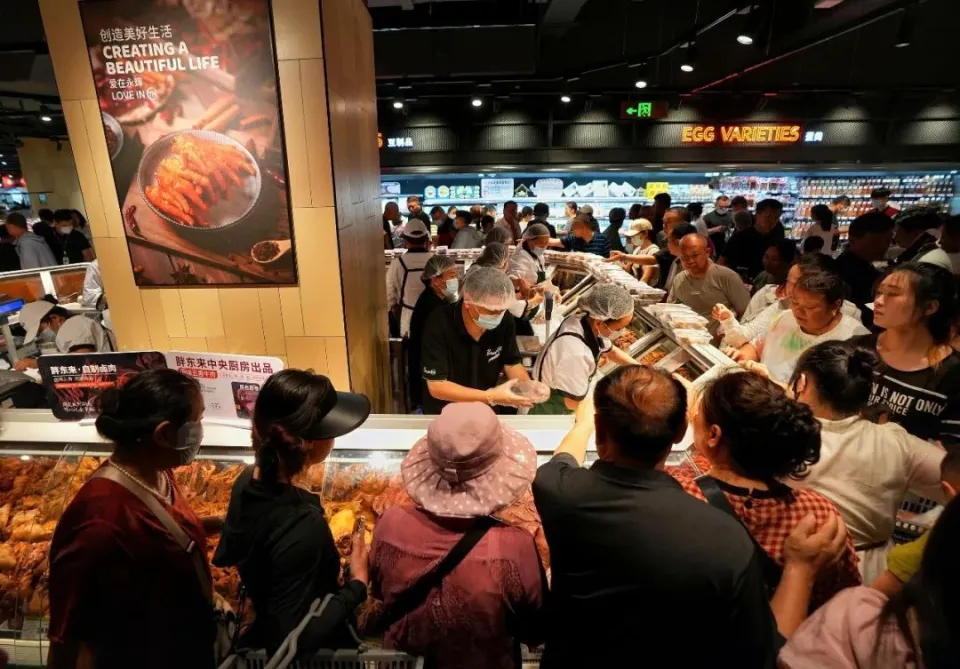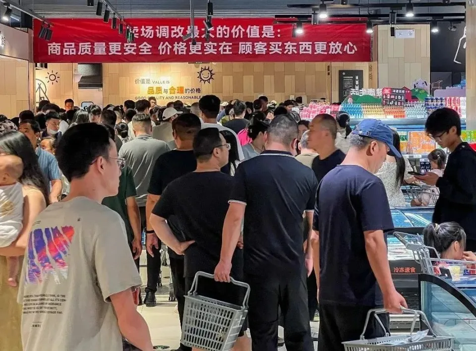 这个周六,在北京石景山区的喜隆多购物阛阓内,胖东来调改的永辉超市北京首店第一天业务。8点半才开门的超市,有人8点刚过就来列队,队伍拐了好几个弯,不停排到通道外,“不知道的以为是故宫”。 大部门人是冲着“胖东来”的名号而来,在他们口中,这里不是永辉超市再业务,而是“胖东来第一天开业”。 文 |王潇 编辑|Yang 运营|虎鲸 “嗨,全是人,根本进不去,回吧”,一个家住北京石景山的大爷一边从超市往外走,一边摆动手劝说不停涌进超市的人。 10月19日,在北京石景山区的喜隆多购物阛阓内,胖东来调改的永辉超市北京首店第一天业务。这家店位于北京西六环附近,不论是离国贸CBD,照旧互联网大厂云集的西二旗,都隔着将近一个小时的车程。大概是阔别了北漂打工人聚集地,这里安静得仿佛不像北京,没有拥堵的车流,路上的行人也只有零星几个,往远处看去,尚有好几栋正在施工的大楼。 只有一条小路里,车辆和行人在源源不停地涌入。这是通往永辉超市的路,两旁的施工挡板上,隔几米就贴着超市的指引牌。越往里走人越多,耳边的配景音也变得更喧闹。8点半才开门的超市,有人8点刚过就来列队,队伍拐了好几个弯,不停排到通道外,“不知道的以为是故宫”。 ▲施工挡板上的超市指引牌。图 /逐日人物摄 超市里,每一处地面和角落,险些都被人挤满,要靠一点点腾挪才气向前行进。很难分清哪一种商品是最受接待的,每一个展柜外围都密实地围了几圈人。张润是烘焙区的负责人,刚开业一个小时,烘焙展柜到取餐口(刚切好、装盒的蛋糕供货口)几步远的路,他记不清来回转了多少圈。展柜中的爆浆榴莲千层是网红爆品,对标的是盒马和山姆的榴莲千层,但盒马的榴莲千层一个要79元,而永辉超市开业打折,只要39.8元就能拿下。很多人直奔爆浆榴莲千层而来,“一大早都上了三批货了,工人都切不过来”。 ▲超市内售卖的爆浆榴莲千层。图 / 逐日人物摄 95后郑晨,寻常很少逛超市,看到调改店的开业关照,想来凑个热闹。可一进超市门就发现,每个收银台都拥着一群人,乃至难以分清队伍次序,“人里三层外三层的”。郑晨被人潮吓退,扭头就下电梯了,他手里还拿了个购物袋,“空着带来的再空着带归去”。 走在超市里,很难直观地看到属于胖东来的陈迹。告示牌上,只写着调改,没提到胖东来。货架上,一些和胖东来爆品类似的产物,贴着的是“永辉优选”的标签。 不过,熟悉胖东来的人,照旧能容易地感受到胖东来的存在。这里最多的元素是“幸福”。刚进门的指示牌上,印着“做北京最幸福的超市”的标语。超市内部,也拉着“让顾客幸福”的大横幅。 ▲超市内的横幅。图 / 逐日人物摄 刚进超市的扶梯处,就有工作职员站在旁边接待,每一位顾客颠末,都会提示一句“鉴戒脚下”。蔬菜和水果都被码得整整齐齐,顾客们挑拣之后,员工很快就把弄乱的白萝卜码成一列。 果切区、水果区、肉类区各处都能见到和胖东来如出一辙的人性化提示——“果切4小时8折,6小时6折,8小时下架”,水果专区会贴着指示牌提示顾客怎样根据色泽挑选水果,货架旁挂着放大镜,供老年人使用,结账处还设有洗手池。 ▲果切区,设置了人性化提示。图 / 逐日人物摄 从啤酒饮料区径直往里走,才气发现胖东来的身影。有一块堆满白色箱子的区域,是胖东来自有品牌专区,最显眼的是胖东来的网红爆品:自有白酒和各式麦片。 胖东来出现最多的地方,是顾客们的言谈中。李婉莹家住超市附近,平经常常在抖音刷到胖东来超市。视频里的胖东来很特殊,价格优惠,品格还好。前段时间她偶然发现,北京刚好有家胖东来调改的店开业,还就在家附近,“特意过来看一眼”。 有些顾客仿佛是来超市进货,推着车直奔胖东来的专区,一个购物车里摞了好几箱麦片,缝隙里还塞了几瓶散装精酿啤酒。尚有人推着车在烘焙区倘佯,手机页面是交际媒体保举的胖东来必吃榜,按图索骥,芋泥奶包、榴莲千层等网红单品,齐备往购物车里丢。 ▲塞满了商品的购物车。图/ 逐日人物摄 来凑开业热闹的,年轻人照旧少数,大多是拎着布兜或推着小车的大爷大妈。在他们的口中,这里不是永辉超市再业务,而是“胖东来第一天开业”。 张婷婷负责酸奶区域的展销工作,永辉超市由于调改关店了一个月,如今刚开业,她看到超市发生了很多变革。先是装修布局上,收银区变大了,商品的品类也增长了。拿酸奶来说,入口商品多了,价格也变得自制。本来,永辉超市的酸奶就会定期打折,但如今很多商品的价格降得比之前优惠时还要自制。有一款乳酪酸奶,本来要16.8元,如今只要10.8元就行,“相当于(扣头)一步到位了”。 张婷婷没想到,开业会有这么多人来光顾,本来这家永辉超市的人流量也不算低,但“从没见过这么多人”。 在超市里,还能看到“让员工幸福”的标语。调改以后,张婷婷不光工资涨了,假期也变得更多了。超市门口摆着“致顾客的一封信”,此中提到,永辉的寻常员工月工资都提拔到了000元及以上;业务时间也从本来的7:30-22:00调解到了如今8:30-21:30,收缩了一个半小时;员工工作满一年还能享受10天的带薪休假。 超市带来的人流还辐射到了同楼层的其他商家。美甲店和烘焙店里都坐满了人,美甲师一边干活儿,一边隔窗向永辉张望。工作间隙,还要拿脱手机对着人潮拍一张。超市旁边是一家西西弗书店,店里的咖啡师