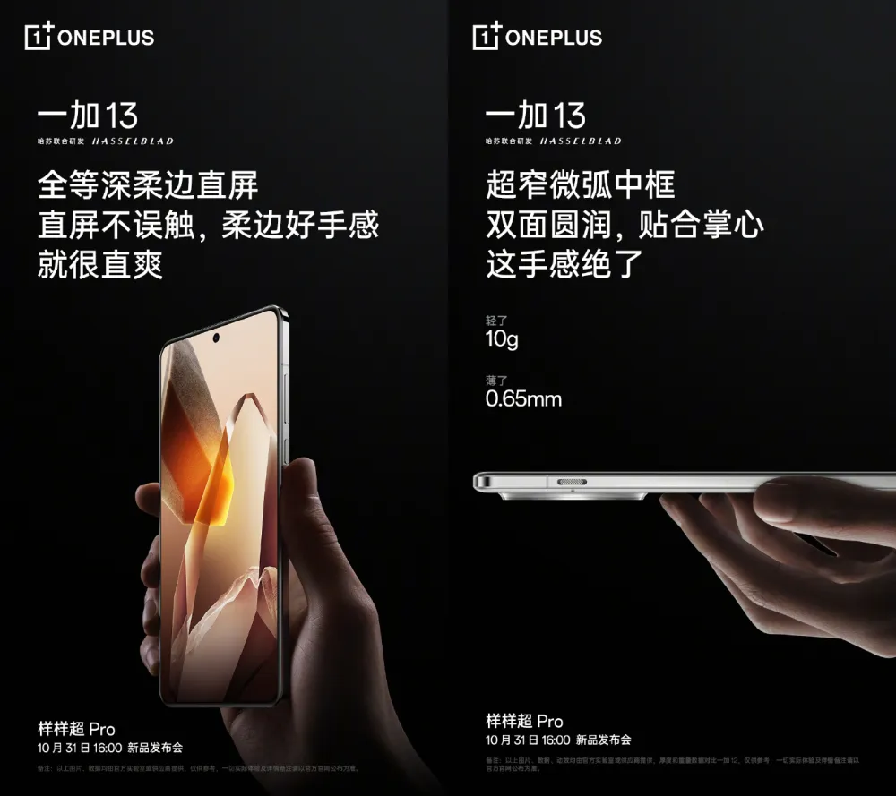 曾官宣将于本月见的一加13新机日前终于迎来了信息量超大的官宣,根据 @一加手机 官博和一加 中国区总裁 @李杰Louis 连续官宣的信息表现,主打“样样超Pro”的一加13将定档10月31日16:00正式发布,其将带来至少三种配色,将迎来 @蒋奇明微博号 这位新朋侪作为气力代言人。同时,日前一加13新品发布会的约请函也连续来到各大媒体的手中,该机的详细配置一清二楚。 日前,@一加手机 与 @蒋奇明微博号 共同发起了官宣微博称,“不藏了,#一加13# 今天上桌了。@一加手机 性能强,尚有这哈苏各人影像,每一张都有力。以后有事记得打我这个电话啊 10月31日16:00新品发布。”随后,@一加手机 也官宣称,“样样超 Pro,#一加13#气力代言人 @蒋奇明微博号 气力藏不住,凭精彩而出圈。因热爱而对峙,从磨砺到绽放。全面硬控,凭气力上桌。” @李杰Louis 发文称,“这是一加手机有史以来规格最顶、最为全能的满配旗舰,可以说一加13 就是最强水桶机。别的,尚有「第二代东方屏」和全新哈苏影像等多项「行业首个」的技能突破和全新体验在一加 13 上落地,在体系体验、游戏性能、屏幕表现及护眼、续航充电、影像本事等方面,都是「样样超 Pro」! 你再也找不到比一加13 更全面、更均衡的旗舰手机。我们就是要突破通例,以「逾越Pro」的理念,重新界说尺度版。这就是一加 13,样样超 Pro!” 随后,@一加手机 即开启了关于一加13的连续官宣,在外貌方面,“#一加13#全等深柔边直屏,防止误触,手感温润;超窄微弧中框,双面圆润,贴合掌心;更轻更薄,敬请等候!10月31日16:00,等你体验!” 对此, @李杰Louis 也解读并官宣称,“好的质感来源于对细节的雕琢,这次我们在 #一加13# 上做了不少细节计划。 正面,一加 13 采取了「全等深柔边直屏」的新计划,拥有直屏的体验上风,游戏不误触,也具备柔边的能手感。中框部门,我们特殊计划了「超窄微弧中框」,双面圆润,贴合掌心,单手握持也非常舒服。 特殊要阐明的是,这次一加13在性能堆满的情况下,整机重量和厚度都相比前代有了显着淘汰,带来了浮滑能手感。我信任一加13的手感会让你感到惊喜! 各人还想相识一加 13 计划上的哪些故事?10月31日下战书4点发布会上,我再解说。” 同时,官方还发布了三张一加13真机的配色海报,并配文称,“#一加13#,美图静赏。白露晨曦|新一代丝绸玻璃工艺。蓝调时刻|行业首发 BabySkin 亲肤绒感皮。黑曜秘境|行业首发黑檀木纹玻璃。”“看面面精彩的 @蒋奇明微博号 凭气力演绎,#一加13#黑曜秘境|白露晨曦|蓝调时刻,气力很精彩,样样超 Pro。” OPPO首席产物官 一加首创人 @刘作虎 称,“这是一加新十年的首款旗舰大作,产物力大升级,样样超 Pro!这款产物在我们内部有个外号,叫做「十三香」。不仅仅是配置特殊有诚意,尚有不少「狠活儿」,内部试用过的小伙伴都对它赞不绝口,体验是真的香。” 同时,@一加手机 还官宣了一加13三种配色的计划灵感,“一起来看#一加13#的工艺细节,风雅考究。 「白露晨曦」新一代丝绸玻璃工艺,纯净通透,不沾指纹。 「蓝调时刻」行业首发 BabySkin 绒感皮,亲肤触感,轻奢质感。 「黑曜秘境」行业首发黑檀木纹玻璃,只留木纹,不留指纹。” 对此,@刘作虎 表现,“#一加13# 全新「破晓」计划,致敬破晓、新生的勇气,各人喜好吗?这次一加 13 的配色非常悦目,一共有 3 种配色。特殊保举一下 CMF 工艺,每款配色都不一样,质感非常奥妙,手感也是真爽。各人背面可以去线下店里细致摸一摸,看一看”。 别的,在日前带来的一加13新品发布会约请函中,官方直接给出了该机的焦点配置,根据约请函上表现,该机将搭载高通骁龙8至尊版,配置最高24GB+1TB超级存储组合,支持原生级120帧游戏,内置超流通ColorOS15体系,采取2K分辨率,120Hz高刷好屏,该屏通过DisplayMate A++权势巨子认证,支持明眸护眼2.0,影像方面支持哈苏各人影像,无影抓拍,内置6000mAh冰川电池,支持100W有线充+50W超级无线闪充组合,拥有第二代天工散热体系Pro,配备仿生振感马达Turbo。 |