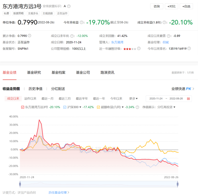 随着市场颠簸和分化的加剧,私募基金的业绩压力正在加大,有部分百亿私募旗下产物乃至触及预警线! 券商中国记者获悉,私募大佬但斌旗下有3只产物发布了触及预警线的关照,累计净值均跌破0.8元,即浮亏高出20%。东方港湾相干负责人也向券商中国记者确认了这一消息。 值得留意的是,券商中国记者发现,此中一只叫做东方港湾方远3号的产物在私募排排网上更新的最新一期净值为0.7990元,确实跌破了0.8元。 本年3月,但斌在微博上回应了券商中国发布的“疑似空仓”报道,确认了旗下产物根本“空仓”,大概保持在10%左右的极低仓位。这一操纵固然躲过了下跌,但也错过A股的反弹,引发市场不少质疑。 空仓4个月后,但斌开始加仓,但这次操纵显然运气不佳,导致上述3只产物触及预警线。不外,团体来看,但斌前几年发行的产物业绩题目都不大,大部分都处于红利状态,帮投资者赚取了不错的收益。 此前,银河金汇东方港湾1号聚集资产管理操持披露的数据,透露了但斌的操纵动向,大肆加仓白酒和港股,等待三季度或四序度的大时机。 但斌旗下三只产物触及预警线对于私募大佬但斌而言,本年的日子相称不顺遂。年初,由于担心体系性风险,但斌做出庞大决定,选择暂时低沉仓位规避风险,简直是躲过了市场大跌,但选择加仓后,旗下产物净值却一起向下。券商中国记者获悉,但斌旗下有3只产物发布了触及预警线的关照,分别是东方港湾方远1号、2号、3号,累计净值均跌破0.8元,即浮亏高出20%。 此中一只叫做东方港湾方远3号的产物,在私募排排网上更新了最新一期净值:0.7990元,确实跌破了0.8元。该产物基金档案也表现,预警线为0.8,止损线为0.7。 据相识,大多数产物在触及预警线后,须要减至半仓,进步账户中现金的比例,以制止基金司理受感情影响出现不理智操纵,其初志是想掩护投资者,低沉投资风险,把最大亏损控制在肯定范围内。 从东方港湾方远3号产物的净值走势来看,本年2月尾根本处于“空仓”状态,净值不停维持在0.88元附近,险些无颠簸。到了本年6月,即空仓高出3个月后,该产物净值规复颠簸,即但斌举行了大幅加仓操纵。然而,到了7月初,该产物净值却跌至0.85元;随后继续下跌,直至8月26日,净值终极跌破0.8元。 东方港湾方远1号、2号与3号均创建于2020年11月24日,净值走势险些划一,应该是采取了雷同的投资计谋。客岁2月份,上述3只产物的净值一度攀升至1.36元,随后从高位下跌。制止8月26日,三只产物本年以来的收益为-19.70%。 但斌大肆加仓白酒和互联网私募排排网数据表现,本年以来,但斌旗下产物的收益为-10%~-20%之间,其代表产物——利得汉景本年以来的收益为-10.53%。该产物创建于2015年2月,累计收益344.59%,年化收益为21.88%。 团体来看,但斌前几年发行的产物业绩都不大,大部分都是处于红利状态,帮投资者赚取了不错的收益,题目产物紧张是2020年底以及2021年初发行的新产物,刚长处于市场高位,部分产物创建时又设置了预警线和止损线,操纵起来相对被动。 本年5月,在一场客户交换会上,但斌坦言,已往一年产物做得欠好,降仓位还是有点晚。彼时但斌表现,下一阶段,东方港湾会用20%-30%仓位到场阶段性的反弹。大时机大概要比及本年三季度或四序度,会有一次本垒打的时机,将尽力以赴。加仓紧张以消耗、互联网为主。 值得留意的是,银河金汇东方港湾1号聚集资产管理操持披露的数据透露了但斌的操纵动向:二季度但斌大幅加仓了股票,权益投资占比高达80.52%。而在一季度末,该产物权益投资占比仅为6.58%。 也就是说,彼时但斌按照此前的投资操持,加仓等待三季度或四序度大的赢利时机。 银河金汇东方港湾1号的前十大重仓股分别为贵州茅台、五粮液、古井贡酒、山西汾酒等白酒股,腾讯、美团等互联网股票,以及长安汽车、宁德期间等。 市场为何陷入调解?百亿私募大肆加仓值得留意的是,自7月以来,A股在履历了一轮反弹后开始陷入震荡调解,市场风格更是分化严峻,光伏等新能源板块的发展股继续大涨,上证50等代价股却继续下跌。 对于怎样对待近期市场调解,星石投资副总司理、首席权益计谋投资官方磊指出,这次调解大概是对之前过于乐观预期的一个正常回归。一方面,外洋活动性的乐观预期正在修正;另一方面,国内股市仍旧面临估值天花板,反弹幅度过大大概出现内生性调解。 在市场经济预期比力低,但国内活动性较为宽松、外洋活动性紧缩的预期最高峰已颠末去的配景下,发展股迎来大幅反弹。此中,新能源等热门赛道的景心胸很高且具有肯定的连续性,反弹的绝对幅度较高,部分个股反弹50%以上乃至翻倍,反映出整个市场的预期比力高。 在方磊看来,接下来投资时机大概不会只会合于前期热门范畴,热门赛道反弹已经比力多了,后续大概会向其他行业扩散,偏代价类的资产已经进入代价区间。 只管经济预期比力低,但百亿私募并不灰心。制止8月19日,股票私募仓位指数为80.99%,较上周加仓了2.42%;百亿私募加仓力度最大,现在仓位程度最高。制止8月19日,百亿股票私募仓位指数为84.61%,较上周加仓了8.75%。 |
