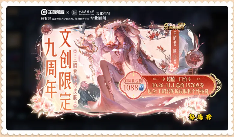 关于这6皮肤皮肤有两个非常紧张的点,第一个是直售的3款皮肤后续不会再以任何的情势直售返场,第二个是上述6款皮肤都可以利用礼物卡举行购买(这是有史以来第一次)。 ⑵王昭君新传限上架 回看桃李都无色,映得芙蓉不是花。 王者光彩九周年【草木风华】文创系列的第三款皮肤,王昭的映山客皮肤将会在10月26日正式上线。关于这款皮肤,共有3种差别的代价: