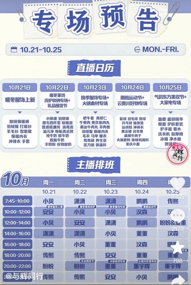 这届双11,抖音大主播还没好消息。 抖音两位头部主播疯狂小杨哥和东北雨姐,先后因虚伪宣传被罚款、停息经营;粉丝量超2100万的大主播刘媛媛也被指直播间“虚伪破价”。辛巴将矛头对准了广东夫妇,称“八亿补贴”不实,而后广东夫妇敏捷删除“八亿补贴”宣传语。就连董宇辉,也在迩来被职业打假人指出卖“假有机土豆”,质疑其虚伪宣传。 相比之下,其他平台的大主播正在尽力参与大促。 淘宝一哥李佳琦双11预售首日贩卖额同比增长20%;双11现货开卖当晚,5分钟成交额破亿。快手一哥辛巴,复播后迎来双11的首场直播,大卖64亿元。 北京社科院副研究员王鹏表示,大主播的缺位对抖音双11的影响是多方面的,如粉丝根本和高度活泼用户群体减少,抖音双11的直播流量也将受到明显影响,交易业务力降落,影响团体贩卖额。其他中小主播难以填补大主播留下的空缺,因此面对用户流失的风险;影响品牌与抖音的互助意愿和投入力度,进而影响抖音双11的品牌互助效果。 抖音直播带货正是用人之际,须要董宇辉顶上。但董宇辉至今保持低调,对双11的参与度仍旧连续本年618的体现,参与度较低,不像辛巴和李佳琦那般尽力筹办。 两年前的618,全网大主播团体“消失”,董宇辉和东方甄选的走红为抖音在618赢下一城。两年后的双11,李佳琦和辛巴守住了淘宝和快手,抖音却面对大主播空档。 从一些蛛丝马迹来看,抖音想要扶持新主播撑起双11。如“音乐达人”郭有才、“鉴宝达人”听泉赏宝均在双11前夕开启直播带货。第三方平台达多多体现,k总、听泉赏宝、郭有才近一个月的直播间流量,有七成来自抖音保举。 但是远水解不了近渴,董宇辉仍旧是抖音最有招呼力的主播。从现在迹象来看,董宇辉并没有改变自己对节日大促的不积极态度。在直播带货的至暗时候,董宇辉并没有计划“救”抖音。 A “与辉偕行直播间,既有高得到感的知识分享,又有优质好货、专业耐心的讲授,他们用娓娓道来的方式,让很多用户因分享而来,因信托而下单。这个直播间和本日我们的流量机制完善契合。” 本年9月,在抖音的电商作者峰会上,抖音电商总裁魏雯雯云云盛赞与辉偕行。与辉偕行成为当晚唯一一位得到抖音年度良好作者奖的主播,一些头部主播如琦儿、贾乃亮、董老师等20位主播得到相同的年度影响力作者奖。 “唯一”代表了董宇辉对抖音的不可更换性。虽然抖音有很多头部大主播,带货本领也未必比董宇辉差,如贾乃亮、董老师多次跻身抖音带货月榜第一,贾乃亮也在去年双11创造过13.6亿元的带货记录,但是董宇辉仍具有不可更换性,会合体现在董宇辉是一个标杆性主播的存在。 在董宇辉之前,抖音在直播带货方面不停跟跑淘宝直播,直到董宇辉和东方甄选走红,抖音直播带货成为一种文化征象,抖音的直播生态和内容生态渐渐形成良好循环。 在聚拢商家和人气方面,36氪曾在报道董宇辉和东方甄选走红时称,一位抖音人士曾表示,东方甄选创造了巨大的自然流量,用户是抖音求之不得的一二线都会白领。罗永浩最初也带来了雷同的代价,但在已往两年,这些资源已经被抖音汲取殆尽。 董宇辉的走红再度吸引和盘活了这些流量,而董宇辉也确实有这个气力。已往十个月,与辉偕行直播间多次守住了抖音带货月榜的第一。在此之前,只有交个朋侪和东方甄选保持过,但是这两大机构在交易业务额上早已跌出抖音带货榜前十。而且与辉偕行直播间拉来了汽车、手机等品牌的广告赞助,开辟了一种新的变现方式和商业模式。 其次是董宇辉对于抖音内容生态的告急性。正如魏雯雯表示,“与辉偕行直播间和抖音的流量机制完善契合。”董宇辉的出现,让抖音的商业化和内容生态找到了适当的结合方式,为抖音其他主播提供了一种迥异于李佳琦式带货的新路径,以致在一定水平上塑造了抖音的文化和内容属性。 在本年的电商峰会上,魏雯雯表明,内容力和交易业务力将成为作者两个最告急的发力方向,只要有一个就能增长快,但是两个都有就会增长更快,好比与辉偕行同时具有内容力和交易业务力。 两者的关系,则是“好内容”成为交易增长的第一生产力。彼时,一连两年获奖的小杨哥,正身陷虚伪宣传的舆论争议,缺席了颁奖仪式。 可见,抖音正是须要董宇辉顶上去的时间。特殊是在抖音弱化低价的当下,夸大“好内容”成为交易增长的第一生产力时,董宇辉的不可更换性就更为凸显。 B 这届双11,是董宇辉从东方甄选独立后的第一个双11大促,董宇辉对此的体现仍旧是:局外人。 10月18日,当其他平台大主播都在为双11筹办的时间,董宇辉受邀到场了北京向阳国际灯光节的开幕式。当晚在直播间,董宇辉仍旧直播两小时,紧接着又预报自己接下来将会出差四五天。 在与辉偕行发布的10月14日-10月20日的主播排班表中,董宇辉累计直播四小时,并错开了两场双11专场直播;10月21日-25日的排班中,董宇辉仍旧预计直播四小时。 对双11不热络的背后,是董宇辉不停对于“带货大主播”的身份若即若离。 去年双11大促,董宇辉还只是东方甄选的一个平凡主播,他在直播间号令理性消耗,“每年一到这个时间(双11),就被各种宣传、各种商家说的头昏脑胀......理性消耗,消耗会让你的生存变好,但消耗主义只会让你的生存变得更糟。” 董宇辉是抖音带货中的非典型主播。知识分子在商业变现中,通常面对自我代