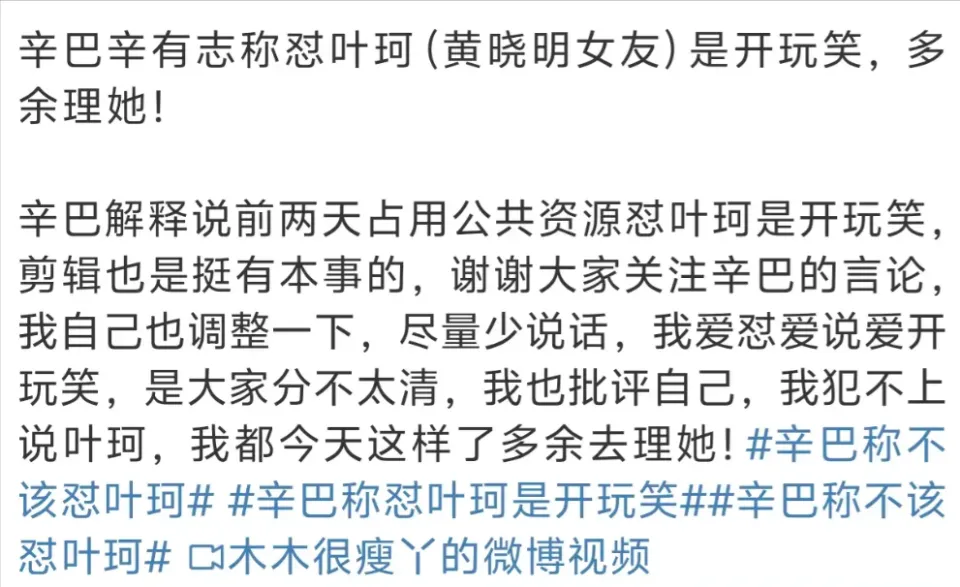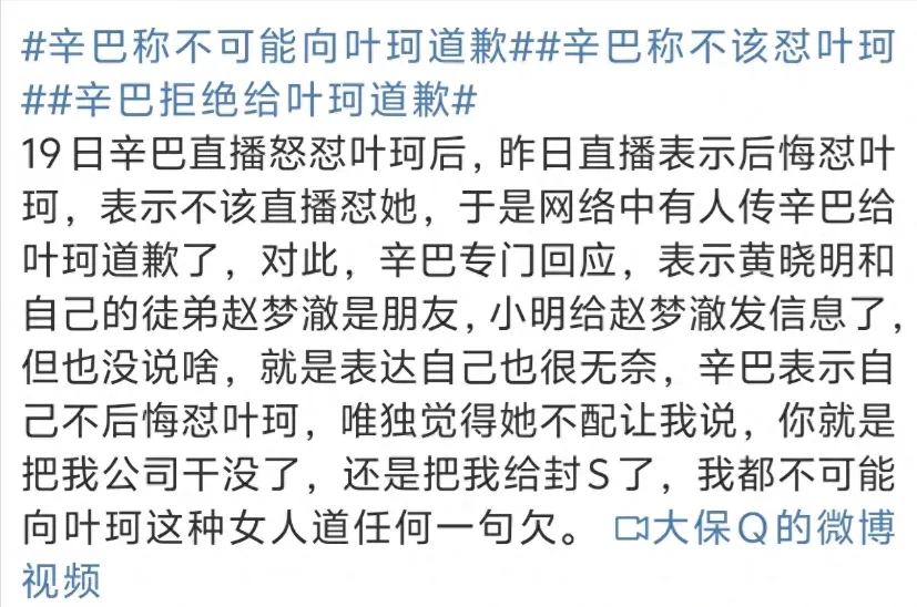 最近,被禁播了一个多月的辛巴刚刚回归直播,就又开始怼天怼地。 先是在直播间怒怼叶珂“滚出互联网”为伍佰出头,就在众网友鼓掌喝采辛巴不愧为互联网嘴替,说出了大家的心声时,他却突然怂了。 辛巴态度突然一百八十度变化,让人不禁好奇其改口背后的缘故起因。 难不成真的是被恶意剪辑了视频,导致他被断章取义了?有人推测是叶珂背后的黄晓明出面护她了,叶珂才敢在直播中强势回应表现“我就是这么牛”。 果然不出网友所料,辛巴之后在直播间里透露是黄晓明接洽了本身的徒弟赵梦澈,黄晓明固然和赵梦澈没有说什么,只是表达本身也很无奈。看在徒弟和黄晓明无奈的份上,辛巴妥协了。 辛巴也说了,黄晓明与赵梦澈两人是好朋侪,作为师傅好歹也要给徒弟面子,以是他也把态度放软了。 不外辛巴还是对峙本身不痛恨怼叶珂,只是经此一事后他以为叶珂不配被他搭理。 辛巴甚至扬言纵然把他的公司拖下水,把他给封了,他也绝不会给叶珂致歉。乍看之下还以为辛巴是给了黄晓明面子向叶珂致歉了,没想到黄晓明出面后辛巴的感情更加冲动。 10月23日,辛巴在与徒弟蛋蛋直播间连线的时间表现这些天本身爱怼爱说,占用了社会资源,“以后只管少语言,希望大家不要太过解读”。 就在大家以为他说这句话是隔空喊话叶珂和黄晓明的时间,辛巴话锋一转,表现与京东已经是相助多年的搭档。 “话说得发急就不对了,我本身也轻微调整了一下”,大家这才明白原来是在向刘强东致歉。 在双十一到来之前,辛巴就放话让京东双十一不要在背后搞小动作,不然他就把矛头对准刘强东。如今看来面临能为他提供长处的京东,辛巴还是能屈能伸的。 固然辛巴那天攻击叶珂的言论不当、有失分寸,作为公众人物如许的言辞还是剧烈了点,但还是有不少网友站队辛巴,对宣扬高调的叶珂早就看不惯了。 因此在辛巴改口之后,网友反而劝黄晓明不要再买水军帮叶珂找面子了,不值当。 值不值得还是得黄晓明说了才算,不外夹在辛巴与叶珂两个网红之间,纵然见过大风大浪的大明星黄晓明也是无奈至极。 别的一位受此风波影响的是辛巴的徒弟赵梦澈,在辛巴澄清了事情的来龙去脉后,赵梦澈这个名字就广为人知了。 身为黄晓明的挚友,此前他曾经公开表现认识黄晓明与叶珂,更对其品德给予高度评价。然而在辛巴表达对叶珂的不满之后,赵梦澈也急于撇清与黄晓明的关系了。 在最近一次直播里,面临与否和黄晓明保持接洽的标题,赵梦澈肉眼可见的尴尬,并立刻哀求大家不要再讨论这件事了,“别再跟我提这茬了,我不认识,不管是演员还是什么,我一个都不认识。” 对黄晓明与叶珂的话题不是借此机会蹭蹭流量,反而避之不及,赵梦澈的态度很耐人寻味。 网友推测他肯定是见辛巴下刻意与叶珂水火不容,怕得罪师傅辛巴才这么表态。也有人说赵梦澈双方都不站队才是保护本身。 无论是叶珂还是辛巴,网红经济除了直播带货就是一样寻常抬杠,如许的带货氛围肯定不能形成良性的经济发展环境。 希望网红的言行能审慎一些,不要为了博眼球做出颠覆三观的事情,辛巴和叶珂都应该留意。 |