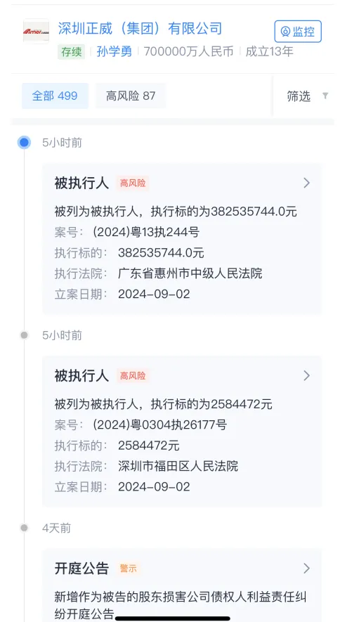 天下铜王王文银被逼迫实行 眼见他起高楼,眼见他宴来宾,眼见他楼塌了。 曾经的首富,现在已经成为老赖。 天眼查法律诉讼信息表现,深圳正威(团体)有限公司、王文银及刘某10月22日新增一则被实行人信息,实行标的4.7亿余元,实行法院为黑龙江省哈尔滨市中级人民法院。 图源:天眼查 王文银,除了再次成为被实行人之外,其又有股权也被冻结。10月24日,山东省青岛市中级人民法院公告了王文银的股权被冻结的事项,冻结数目为4.5亿人民币,标的企业为正威控股有限公司。 图源:天眼查 此次被实行的金额4.7亿余元,对于深圳正威(团体)有限公司而言,无疑增加了其财务压力。据风险信息表现,该公司现在存在60余条被实行人信息,被实行总金额累计凌驾114亿元。此外,深圳正威(团体)有限公司还面对多条限定消费令、失信被实行人(老赖)及终本案件信息,这些均对公司的信誉和运营产生倒霉影响。 现实上,这已经不是正威团体和王文银第一次成为被实行人了。 今年9月份,天眼查法律诉讼信息表现,深圳正威(团体)有限公司9月2日新增2条被实行人信息,实行标的合计3.85亿余元,被实行人还包罗惠州博威新质料有限公司、惠州驰威新质料有限公司、王文银等,实行法院为广东省惠州市中级人民法院、深圳市福田区人民法院。 图源:天眼查 客岁10月份,王文银还被限高。 2023年10月18日,正威新材公告,公司法定代表人王文银因其继承法定代表人的深圳正威(团体)有限公司的相关事件,被限定高消费。 图源:官方公告 因正威团体未按实行关照书指定的期间履行见效法律文书确定的给付任务,法院对正威团体接纳限定消费步调,限定正威团体及其法定代表人王文银不得实验高消费及非生存和工作必须的消费举动。 当时,正威团体表现该限定消费令属于对正威团体及其法定代表人(王文银)发出的限定消费令,对公司谋划并无较大影响。 现实上,正威团体厥后也暴雷了,王文银也是贫苦不停。 今年7月份,深圳正威(团体)有限公司、青岛海岳控股有限公司和王文银本人,被山东省青岛市中级人民法院强实行了15.25亿元! 图源:界面新闻 两天后,也就是今年的7月19日,深圳正威团体所持的1亿多股权被冻结了。这次是由于金融乞贷合同纠纷,被辽宁省营口市中级人民法院实行的。 图源:公司公告 正威团体的雷彻底引爆了。 风险信息表现,深圳正威(团体)有限公司现存60余条被实行人信息,被实行总金额超114亿元。此外,该公司还存在多条限定消费令、失信被实行人(老赖)及终本案件信息。 天下铜王王文银,拥有矿山20多座 说到当时最低调的富豪,王文银绝对是此中之一。 图源:西瓜视频 王文银,1968年3月,王文银出生于安徽安庆潜山县梅城镇的一个平凡的农村家庭。 不得不说,安徽安庆确实是出贸易人才的地方,蔚来的首创人李斌的故乡也在安庆,隔断王文银的出生地只有100公里。 当时,安庆有句鄙谚,叫做:“穷不丢书,富不丢猪”。 王文银也确实做到了前半句。 固然当时王文银家里条件不太好,很清贫,但他从小就喜好读书,很勤劳,成绩也不停是压倒一切,从小学到高中,成绩都是顶级棒,1989年,21岁的王文银高中结业之后,考进了南京大学。 要知道,当时间的大弟子都是凤毛麟角,非常少见,能上南京大学如许的重点大学,更是村里的名士。 当时间的大弟子包分配工作,1993年,王文银顺遂结业后,被分到了上海的一家国企单位。 他当时的月薪有近400元,在那个年代,这已经是一份让无数人倾慕的铁饭碗,对许多人来说求之不得,可王文银工作没多久后就离职了。 他想出去闯一闯,由于当时间,广东作为改革开放的前沿,发展非常迅猛。 1993年,工作还不满半年的王文银毅然踏上了去深圳的路程。 到了深圳之后,他满身上下只有10块钱,由于不是一来深圳就能找到工作的,为了生存下去,他只能睡桥洞。 为了挣钱填饱肚子,他在深圳的第一份工作是仓库管理员,不外,纵然是这种没有什么技能含量的工作,他也表现优秀,很快就晋升为总司理助理。 在深圳打拼了两年之后,也就是1995年,他有了肯定的继承。 王文银以为本身的才华不但仅是打工,他要本身创业。 1995年,27岁的王文银就在深圳开办了携威实业有限公司,专做电源线和插头的买卖。 从此之后,王文银开启了本身跌荡升沉的创业之旅,无论是成功照旧失败,都离不开他的性格。 没错,他喜好豪赌。 1997年,亚洲金融危急,当时深圳的许多工厂也受到了打击,电线装备,呆板卖不出去,而此时的王文银反其道而行之,不但没有退缩,还直接贷款买了100多台呆板,正如巴菲特所言:别人恐惧是我贪婪。 由于王文银笃定金融危急持续不了多长时间,这反而是积贮气力的好时机。 这次,他赌对了。 别的的许多偕行都被镌汰了,而王文银此时还低价买入了许多装备,比及金融危急竣事,王文银的公司抢占了许多市场,一举成为了当时深圳最大的电线厂之一。 1999年,已经拥有电缆厂、塑胶加工厂等多个厂的王文银,正式组建正威国际。 这个时间,31岁的王文银的总资产一举凌驾10个亿。 2003年,王文银开启了本身的第二次豪赌。 由于电线的原质料是铜,2003年,铜价暴跌,此次王文银选择购入大量铜矿,相当于低价抄底。 他在全球范围内疯狂购置矿产,当时约莫有300多万吨的矿产资源,此后,铜价反弹,王文银又暴赚一笔,正威成为了采矿冶炼加工的全产业链公司,公司的规模迅速壮大。 2
