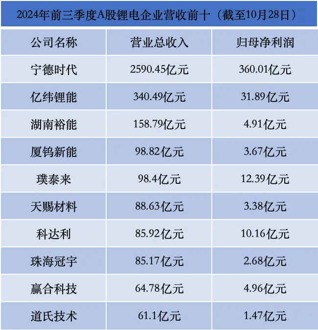 首批锂电三季报麋集出炉。 截至10月28日,按照申万行业分类,已有55家锂电产业链上市公司预告或披露2024年三季报,此中38家实现红利,占比近七成。 数据来源:iFinD 程梓欣制表 此前,因锂价出现“崩塌式”下跌,多数锂电企业在去年同期遭遇业绩“滑铁卢”。现在,锂价在8万元/吨以下保持低位运行,锂电企业也在震荡中趋于理性,放缓扩产步伐,等候红利拐点的到来。 而身处产业链“中心”的锂电池厂商,不但在剧烈竞争中再度掀起专利大战,以加速抢占日渐紧缩的市场空间,还面对着安全痛点等新一轮大考。 近七成实现红利 数据来源:iFinD 程梓欣制表 分板块来看,锂盐板块中2家实现红利,但业绩表现出现分化。此中,西藏矿业实现业务收入5.87亿元,同比增长5.06%;归母净利润1.52亿元,同比增长34.62%。藏格矿业实现业务收入23.24亿元,同比下滑44.53%;归母净利润18.68亿元,同比下滑37.08%。 锂盐巨头天齐锂业的亏损状况加剧,预计2024年前三季度归母净利润亏损54.5亿元至58.5亿元,第三季度归母净利润亏损3.2亿元至6.4亿元。该公司表现,受锂产物市场颠簸的影响,2023年第四序度至2024年第三季度,锂产物市场代价团体出现大幅下滑趋势,公司锂产物贩卖代价及毛利较上年同期大幅降落。同时,受控股子公司泰利森化学级锂精矿定价机制与公司锂化工产物贩卖定价机制存在时间周期的错配影响,陈诉期内公司经业务绩出现阶段性亏损。 锂电池板块中16家实现红利,9家归母净利润逆势增长,成为锂电行业红利主力军。此中,宁德期间继续拿下营收、净利润断层第一,在业务收入同比下滑12.09%的基础上,归母净利润同比增加15.59%。陈诉期内,宁德期间还计提资产减值损失66.52亿元,同比上升133.54%。该公司解释称,紧张为无形资产、固定资产可接纳金额低于账面代价计提的减值预备,及存货资本高于其可变现净值计提的存货跌价预备。另一锂电池头部企业亿纬锂能营收、净利润双双降落,实现营收340.49亿元,同比下滑4.16%;归母净利润31.89亿元,同比下滑6.88%。 锂电池企业的业绩面与下游新能源汽车市场表现息息相干。只管车市素有“金九银十”的说法,但从已披露三季报环境来看,下游订单对锂电池企业的利好环境较为有限。2024年前三季度,14家锂电池企业的应收账款周转天数同比增加,此中亿纬锂能同比增加了21天,可见下游订单交付存在肯定资金压力。 电池化学品板块中15家实现红利,但18家归母净利润同比下滑,振华新材(同比下滑981.19%)、华盛锂电(同比下滑613.54%)、海科新源(同比下滑438.25%)五矿新能(同比下滑338.75%)、信德新材(同比下滑128.13%)跌幅居前。锂电专用设备中5家实现红利,但已披露的9家企业均出现业绩下滑。 锂价仍低位运行 作为影响锂电企业业绩面的关键因素,碳酸锂代价在今年前三季度履历了小幅震荡式下探,并在8月跌破了8万元/吨,而这一代价被以为是行业的第一道资本线。 中国有色金属工业协会锂业分会发布的2024年9月锂行业运行环境表现,今年9月,国内碳酸锂代价继续在8万元/吨以下运行。9月30日,工业级碳酸锂代价为7.25万元/吨,环比上涨1.4%,比去年同期降落53.4%;电池级碳酸锂代价为7.55万元/吨,环比上涨0.7%,比去年同期降落55%。9月尾,碳酸锂期货现价差与上月基本持平。9月27日,广期所碳酸锂主力合约收盘价为7.86万元/吨,环比降落0.5%,比去年同期降落47.6%,环比降幅小于碳酸锂现货环比降幅,月末期现价差为6050元/吨。 同期,企业连续减产趋势,江西地区部分产线关停,企业产量多数下调。9月11日,宁德期间对外回应称,根据近期碳酸锂市场环境,公司拟对宜春碳酸锂生产安排举行调解。瑞银研报此前分析以为,宁德期间调解江西锂矿业务紧张是由于,当下碳酸锂代价已跌穿宁德期间的采矿资本线。 就在同日,江西锂矿大厂九岭锂业也披露停产查验公告,旗下矿山企业春友锂业和选矿企业宜丰九宇于9月12日起,分别举行为期15日、10日的停产查验工作。 别的,另有部分企业已公布暂缓或调解锂电项目。8月20日,电解液龙头新宙邦公告称,公司决定调解荷兰新宙邦锂离子电池电解液及材料项目的实行内容与所在。同日,该公司还公布,将瀚康电子材料“年产5.96万吨锂电添加剂项目”的预定可使用状态日期延期至2024年12月31日。 展望第四序度,卓创资讯碳酸锂分析师韩敏华向《国际金融报》记者表现,碳酸锂代价预计呈震荡回落表现。年末终端冲量期事后,下游环节对于质料补货预计减量,因此在11月中旬事后,碳酸锂现货市场代价存在偏空预期。对于下游企业来说,下游对于质料采购基本在11月及之前竣事,年末处于消化质料阶段,冲量期事后,一季度通常为行业上下游淡季,产业链各环节产销均为年内偏低水平,锂价颠簸对下游企业产销及资本影响预期有限。 巨头再掀专利战 当利润空间被进一步压缩,市占率成为锂电企业的必争之地,巨头们也再度掀起专利战。 10月18日,中创新航披露称,针对宁德期间及其他公司侵占其专利权的行为,该公司分别向湖北省高级人民法院、江苏省高级人民法院共提起四告状讼,诉讼金额合计10.07亿元。详细来看,所涉及专利均为电池技能方面,分别为电池装置及电池装置的装配方法、电池组及电池装置、液冷板式电池模组、一种电池包。中创新航还要求相干公司克制侵权行为,并克制制造、贩卖侵权产物。 毕竟上,中创新航与宁德期间的专利之