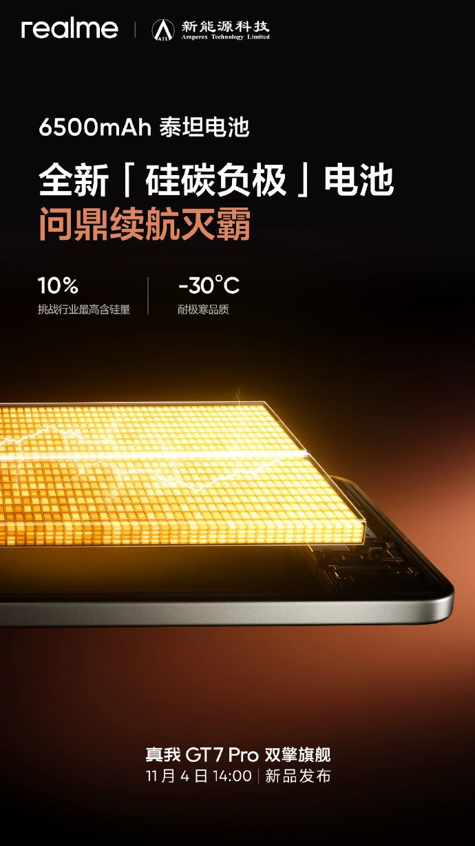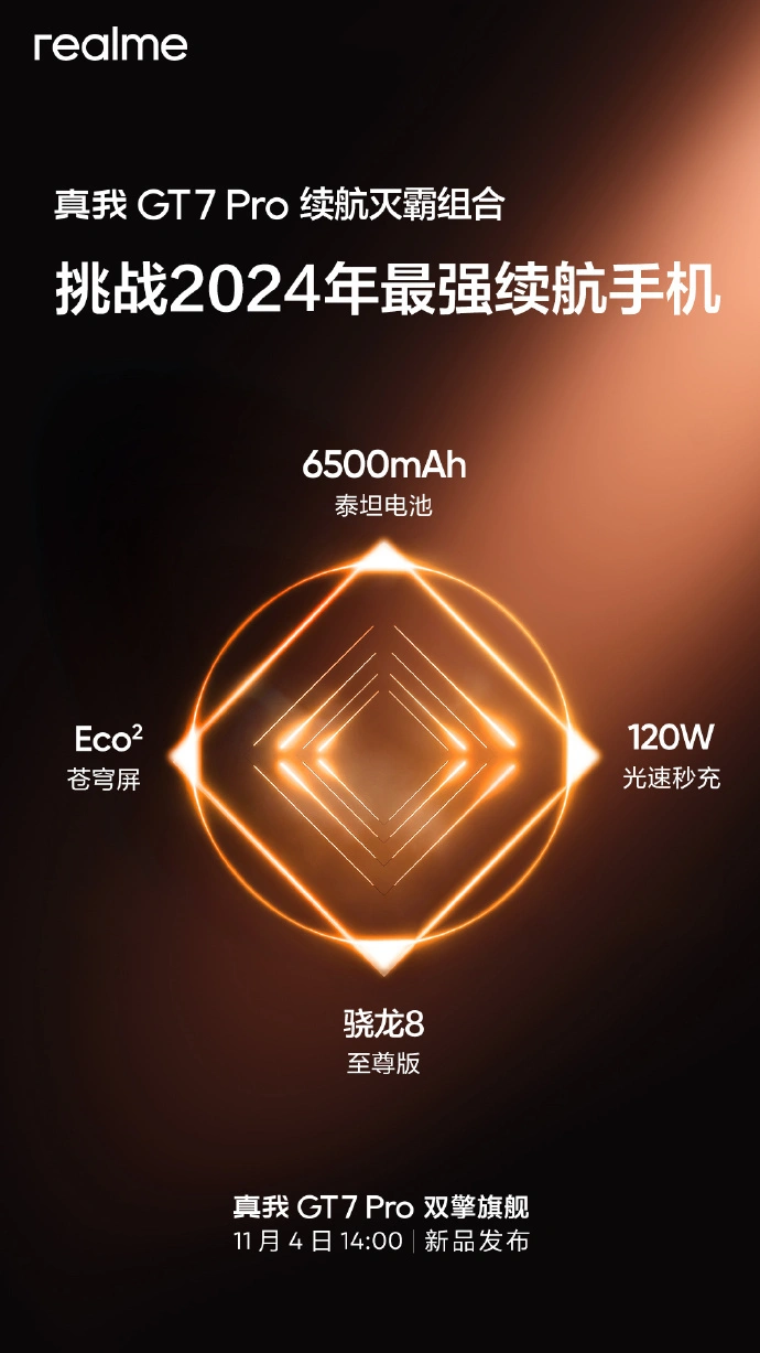 IT之家 10 月 30 日消息,realme 真我手机官微今天继承预热即将发布的真我 GT7 Pro,此次发表了该机的续航相干信息,并放话“挑衅骁龙 8 至尊版最强续航”“挑衅 2024 年最强续航手机”。 据悉,该机搭载 6500mAh 泰坦电池 + 超低功耗 Eco 苍穹屏 + 3nm 旗舰芯的组合,号称“不大概”的续航组合带来“不可思议”的续航表现。 该电池为真我 × 宁德新能源打造的硅碳负极电池,具备“行业最高”10% 含硅量,同时可耐-30℃极寒。 realme 真我 GT7 Pro 手机将于 11 月 4 日 14:00 发布,该机将首发“苍穹通讯体系 2.0”,支持弱网场景游戏在线特性。 IT之家汇总该机现在已知紧张信息如下:
