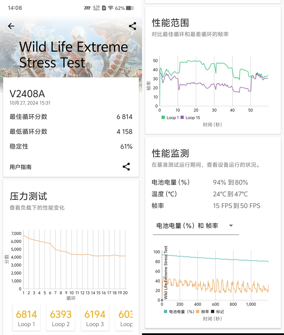 在骁龙8至尊版正式发布后,我们不绝非常等待一款主打性能的旗舰机型能让我们感受一下这颗全新SoC最极限的性能体现,这个时间iQOO 13来了。 在最关键的性能方面,除了搭载骁龙8 至尊版外,iQOO 13采用了蓝晶技能专业调教,并且搭配自研电竞芯片Q2、LPDDR5X Ultra和UFS4.1的性能铁三角,并且蓝厂这次还和高通连合开发了Adreno图像运动引擎2.0和光线追踪2.0,可以说在电竞这块正确“拿捏”了。 必要注意的是测试机型为工程版固件,并且硬件设置为16GB+1TB的顶配版本,测试前打开Monster模式、屏幕亮度手动调至最高。 测试环节我们仍旧选择了安兔兔V10、Geekbench 5、3DMark、哔哩哔哩、百度舆图、《原神》和《崩铁》共计7个项目,测试室温为室内恒定25℃,并使用Perfdog记载帧率与功耗,必要注意的是iQOO 13采用了双电芯操持,截图中的功耗x2才是实际功耗。 在安兔兔V10中,开启Monster模式后我们手中的这台iQOO 13可以跑到301万分,也是我们手中第一台突破300万分的手机。 在Geekbench 5中,iQOO 13单核跑分为2189分,多核跑分为8131分,这一成绩再次革新了我们全部测试机型中的最高分,尤其是多核跑分初次突破8000分。 此时对应的整机功耗分别为4.832W和10.264W,在性能开释上要显着更激进。 在3DMark Wild Life Extreme测试中,iQOO 13最高能跑出40.85帧的均匀帧率和6821分的得分,这个成绩也是再次革新了我们的测试记载,相比上代机型有约1800分和11帧的提升(约28%)。 此时iQOO 13整机的均匀功耗为15.8W左右,相比上代机型功耗仅提升了约3W,3nm工艺和新架构带来的能效提升还黑白常显着的。 在20分钟的3DMark Wild Life Extreme循环测试中可以看到iQOO 13提供了61%的稳固性,手机终极会在4200分左右连续运行。同时从性能曲线下降的过程可以看到iQOO 13并不会出现断崖式的降频,整体的下降幅度较为平滑,这套带有7000mm VC均热板的冰穹双驱散热体系体现不错。 接着是一样平常使用测试场景,使用哔哩哔哩播放4K在线视频且屏幕最高亮度的环境下iQOO 13整机功耗仅为1.61W,对于一款搭载2K屏幕的旗舰手机来说这个功耗已经是比力低的了。 在使用百度舆图举行导航的场景中, iQOO 13的整机功耗只会提升至2.814W左右,整体的功耗控制依然精彩。 接着就是更能体现手机优化和实际性能的游戏环节。 我们先辈行了《原神》最经典的须弥跑图测试。 在最高画质60帧5分钟的测试中,iQOO 13提供了61.1帧的均匀帧率、0.5的稳帧指数,卡顿和严峻卡顿每10分钟3.8次,完善征服《原神》。 固然在调取CPU频率时我们也可以注意到2颗超等核心和6颗性能核心根本都维持在甜品频率下运行;而CPU的使用率就比力复杂了,整体的调治非常动态,并没有出现一颗核心干活,7颗核心围观的环境。 最可骇的是此时整机的均匀功耗仅为3.896W,这个能耗比的体现有点浮夸,能用4W不到的功耗在最高亮度、最高画质60帧下稳固运行,只能说810P的原神已经不能给iQOO 13带来什么性能压力了。 使用温枪丈量手机正反面温度就可以发现,iQOO 13的峰值温度正温度仅为37.2℃,背部温度峰值也仅为36.4℃,别的部分的温度广泛在33℃到35℃之间,这个温度体现非常精彩。 末了是《崩坏·星穹铁道》匹诺康尼跑图测试,为了测试一下iQOO 13的极限,所以我们这次的测试时间就拉长到了15分钟。 首先来看帧率, 在最高画质60帧的模式下,15分钟的测试过程中iQOO 13提供了险些满帧的游戏体验,每10分钟的卡顿和严峻卡顿仅为0.7次,稳帧指数也来到了可怕的1.6,整个过程中完全没有出现降频和颠簸。 联合CPU频率和CPU使用率以及温度厘革可以看到,在15分钟的测试中iQOO 13完全没有出现降频的倾向,始终是用一个游刃有余的频率在运行,2颗超等核心在此时担任了告急的渲染任务。 功耗方面, iQOO 13的均匀功耗为6.288W,最峰值功耗也只会来到8W左右,在《崩铁》这样的超高负载场景中可以说另有发挥的空间,如果将来推出负载更高的场景,大概把测试时间拉长到1小时以上大概才气测试出骁龙8至尊版的极限。 接着我们使用温枪丈量了手机正反面温度。从温度图来看,正面的峰值温度可以来到44.3℃,背部峰值温度则为43.6℃,侧边框温度广泛在35℃~40℃之间,整体的温度分布比力匀称。 从测试的成绩来看,iQOO 13在散热上处置惩罚的非常好,为骁龙8至尊版的连续性能开释提供了富足的空间;运行当下最迟性能的几款游戏时也能提供非常有性价比的功耗和性能组合,整体来说用iQOO 13打游戏的体验照旧很不错的。 其他方面,借助于全新的自研电竞芯片Q2,iQOO 13这次提供了大量的超分超帧组合,比如在《原神》中用户可以最高实现2K+144帧的顶级画质帧率组合,《宁静精英》《穿越火线》《高能好汉》等热门的射击游戏也可以支持2K+144帧组合。 针对游戏场景,iQOO 13这次在摄像头Deco处新增了一个独有的能量光环,用户在启动游戏、游戏过程中开释技能等都会触发差异的光效和色彩。 用《原神》举个例子,差异属性的元素发作以致会带来差异的光效,不外我个人发起在公司摸鱼的时间一定得把这个功能关掉...否则你懂的。 影像方面,iQOO 13采用了JN1超广角+光IMX921主摄+IMX816长焦的组合:此中主摄为1/1.56"大底,2x长焦为1/2.93",以一台性能旗舰来说用这个后置扫码什么的绰绰有余了。 色彩、HDR等方面也与vivo的影像旗舰保持同等,蓝厂并没有因为iQOO的性能旗舰定位而做阉割,这一点值得肯定。 iQOO 13这次将电池容量提升至6150mA