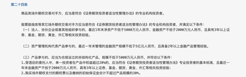 《证券公司场外期权业务管理办法》截图。截图来源:证券期货法规数据库体系 因为提前把控了风险,李玲现在还能相对悠闲地继续运营公司。而其他不少的通道商一边焦头烂额地接洽香港券商,一边安抚客户。为了维护与客户的关系,李玲熟识的一名偕行朋友选择卖掉车子,向客户垫付了凌驾70万元本金。 一名与通道商有互助的内资券贩子士向期间财经透露,如果团体单量不大,金额在一百万元以内的,大概就10单左右,通道商通常另有本事垫付;但如果涉及金额太大,上万万元乃至是过亿元,通道商大概一单都不会垫付。 据期间财经相识,部分符合“532资质”的投资机构是在举行场外期权投资时,顺带设立“通道”业务,仅对机构内部职员开放;但专门以“通道”业务为生的公司,由于手续费收入并不高,须要跑量才气赢利。 香港券商压低资本的意图云云显着,毛病肉眼可见。为什么通道商会甘愿冒双重风险? “要知道,客户都是不理性的。当有另一家通道商的报价更低,期权费低这么多,如果你是客户,你会选谁?”李玲发出灵魂拷问。尽管风险增大,但广泛比内地券商少2个点的期权费率照旧极具勾引力,内地通道商照旧会为了劫掠用户做出选择。 追赔或陷“罗生门” 作为专业投资者,王冲把全部精神都放在向香港券商追赔上;而李玲的偕行朋友,则不停奔波在找券商老板协商、找资方搭线的路上。 针对此次香港多数券商违约的环境,盈科律所商事状师团队高级合资人瞿琨向期间财经指出,香港法规与内地存在差异,要准确分析香港券商是否违规,则须要咨询香港状师的意见。 在此次变乱中涉及的投资者重要分为两种,一种是本身去香港开户下单,一种是走通道商下单,王冲属于前者。 在个人追赔券商的案例中,瞿琨表现,由于这类投资者的投资举动发生在香港,投资者是通过什么方式把资金转到境外去举行投资,是比较核心的题目。 但如果是个人想要向内地通道商举行索赔,无论是前期的法律责任分别,再到后期的实验,都有大概陷入“罗生门”田地。 瞿琨分析,如果通道商的举动构成非法罗致公共存款罪,公检法将会到场;如果不构成,投资者也可以提起民事诉讼,如果通道商违背金融监管法规召募资金,大概导致投资者、通道商两边签署的协议“无效”,投资人可依据法律规定,主张通道商返还投资款。 但瞿琨夸大,部分投资者为了寻求大概的高收益,在明知跨境投资举动大概不合规的环境下,选择通过通道公司入港投资,“投资者自身大概也存在肯定不对。因此,即便法院认定协议‘无效’,也会基于两边的不对程度,来判断是否支持返还全部投资款的要求。” 其次,就算法院支持,“如果通道商没有办法从香港券商中拿回投资款,本身的资金力气又不足以补偿全部投资人,就会陷入无力补偿的局面,也就是我们通常明白的‘实验不到款项’。”瞿琨表明。 10月25日,南方汇发敦促投资者同意归还4成期权费本金的方案。对接职员跟王冲坦言,越到后期,有本事兑付的资金大概会越少,发起王冲同意方案,并包管马上就可以让财政职员排款。