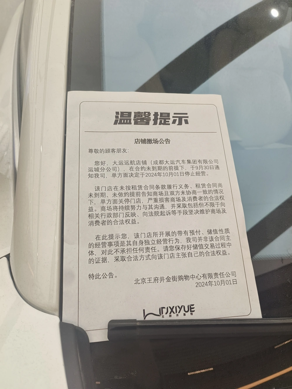 腾讯汽车《远光灯》 特约作者 林珂莹 编辑 杨布丁 10月29日,位于北京王府井喜悦购物中心的远航汽车门店,店内依然灯光豁亮,但内部没有一个工作职员,三台展车已经蒙上薄灰。 唯一显眼的地方是,展车挡风玻璃处张贴着一张来自北京王府井金街购物中心有限责任公司的店肆撤场公告。公告称,大运远航店肆在合约未到期条件下,于9月30日关照商场,片面决定于2024年10月1日克制谋划,商场将接纳向行政部分反映、向法院告状等本领维护权益。 (王府井喜悦购物中心的远航汽车门店,空无一人。图片为作者拍摄) 此前,网络上已经有消息连续传出,远航汽车遭遇谋划危机,已经邻近倒闭。腾讯汽车《远光灯》多方观察求证得知,远航汽车本年以来已关闭大量门店,六月开始出现员工工资拖欠环境。一王谢店贩卖称,远航正在向当地政府沟通未来发展和寻求投资,希望得到政府“接受”。 10月31日,一名离职员工向腾讯汽车《远光灯》透露,本日中午远航已发送关照公布全员放假,将先和政府方面洽谈一个月,期间贩卖、售后、生产等部分会正常运营,也会安排职员值班。 远航是大运团体旗下高端新能源汽车品牌,于2022年8月正式发布。旗下共四款车型,包罗远航Y6、Y7两款豪华轿车,以及远航H8、H9两款豪华SUV。 对于绝大部分人而言,这个标志类似宾利的汽车品牌秘密而生疏:两年多以来,远航险些没有举行过试驾运动,也少少开辟布会,能见到的地方根本只有机场户外广告和各大车展。直到10月下旬,都城机场远航汽车的广告牌还仍旧亮眼,对其的界说是,“由大运团体与博世、华为、斑马智行等行业先辈技术共研打造的D级豪华新能源汽车”。 (位于北京都城机场二号航站楼的远航汽车广告牌,图片为作者拍摄) 一位浸淫汽车圈多年的业内人士坦言,自己也只在车展和机场看到过远航汽车的相关展示,“只知道是一个豪华而秘密的品牌”,但从未接触过产物。 腾讯汽车《远光灯》致电远航汽车扣问欠薪、闭店等题目,接线职员称没有接到关照,对于相关题目不予回应。 摩托车企造 “中国版宾利”,“就是组装车” 10月29日下战书,腾讯汽车《远光灯》到北京一家远航汽车门店,这也是如今北京仅剩还在营运的远航汽车三家门店之一。当天为工作日,四周包罗极氪、深蓝等品牌在内的汽车门店均人气岑寂,但只有远航仅一名员工在店。 腾讯汽车《远光灯》以顾客身份向店内贩卖职员李浩(化名)咨询。他否认远航邻近倒闭的传闻,称远航只是如今不处于大量投资的阶段,正向市政府寻求资助。“它究竟背靠大运,大运肯定不会倒,你看它根本全部财产都跟政府有关系,以是说白了远航他们如今也是想让市政府来掺和一下。” 但当详细问及该门店短期内是否会关闭时,李浩回复称 “说不好”,“究竟新能源都是很竞争,你要销量不好人家品牌也不让你在这儿待”。 公开资料表现,李浩口中的大运团体,创建于1987年,总部位于山西省运城经济技术开辟区,以摩托车发迹,曾是2008年北京奥运会摩托车独家供应商,“风驰天下,大运摩托”的广告语曾风靡天下。2004年,大运进军商用车行业,先后开始制造重卡、轻卡、中卡,其重卡销量长期位于行业前十,是此中少数民营企业之一。 随着新能源汽车财产海潮滚滚而来,大运也涉足此中,于2016年启动新能源商用车开辟,进入纯电动物流车市场;2017年又启动新能源乘用车战略,随后推出远志 M1和悦虎两款量产车型。此中,前者为20万元左右的MPV,对准网约车市场;后者则为7万元左右的SUV,定位为经济代步车。 大运没能在乘用车范畴复制其此前的乐成,两款车型销量均不如人意。市场数据表现,本年1—9月,远志M1累计销量6205辆,悦虎累计销量9159辆。此中,部分销量来自于政府采购。在2020年《关于大运汽车股份有限公司初次公开辟行股票并在创业板上市申请文件的考核问询函的回复》中,大运汽车称,如今公司乘用车产物已纳入山西省政府采购目次,大运汽车作为山西省重点汽车生产企业,在 “晋品晋用”“运品运用”政策的指导下,会获取部分出租车辆订单。 只管乘用车初步成果不佳,大运没有放弃其造车的想法。2022年8月,远航汽车在成都车展上正式发布。与此前两款乘用车差别,远航主打30万—60万高端市场,定位D级,表态即发布四款豪华纯电车型。2023年11月8日,远航汽车正式投产下线。 匆匆的节奏决定了远航无暇创建自己的技术壁垒。公开资料表现,远航汽车接纳博世的电子电气架构、一体化智能底盘集成技术、高级驾驶辅助系统,华为的整车域控制器、一体化热管理技术、中心网关、智能转向系统,斑马智行的智能座舱。 李浩表明称,远航有一些自研技术,但没什么太大亮点,只能选择多方互助。本年九月离职的贩卖刘蔓(化名)更是直言远航汽车很一般,“就是组装车。” 远航汽车四款车型在发布之初售价均在30万元以上,最昂贵的远航H9上市售价区间为40.98-51.98万元。今后则一起贬价,并推出新的低价版本。比方上市代价为34.98~55.98万元的大型纯电动SUV远航H8,于本年9月推出560 公里后驱智享动身版,售价探低至21.98万元。 作为省级链主企业,大运的发展与当地政府精密相连。招股书表现,2017—2019年间,大运汽车第一大客户均为建运贩卖及其关联方,对其贩卖额占当期业务收入比重分别为33.52%、26.28%、30.60%。建运贩卖脱胎于大运汽车原有贩卖体系,其所
