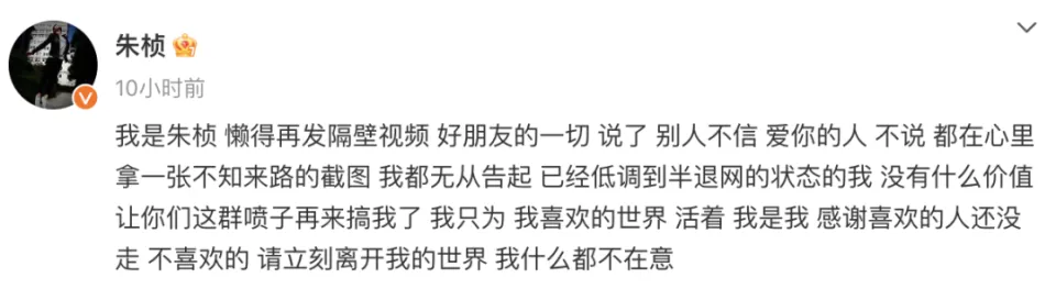 克日,一则针对已逝演员乔任梁及其好友朱桢的负面听说,在互联网上引起一连关注。 10月31日,朱桢先后在个人交际账号上发布笔墨和视频声明回应相关听说,称本身将于本日下战书去派出所报警。 声明内容如下: |