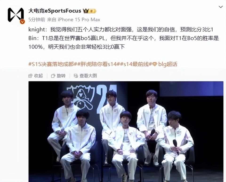Bin赛前狠话:5个中国人也能夺冠,要3:0干碎T1! 隔断S14环球总决赛的终极决赛还剩下不到一天的时间,赛前BLG和T1举行了决赛发布会,在发布会上两队各自给出了自己对于决赛的看法,而且相互放狠话。 起首是BLG这边的采访,knight表现:我们5个人的力气都比对面强,预测3-1得胜!Bin则是一如既往自负亮相:不在乎Faker在决赛没输给过LPL的队伍,由于我们在BO5打T1的胜率是100%,以是决赛我们也会3-0非常轻松赢下。 接着Bin也表现:这次大概是第一次五个中国人夺冠,不但仅是为了中国观众,为了LPL,也为了我们自己,都要拿下这个冠军! 之跋文者追问:五个中国选手夺冠意味着什么?bin也说出那句经典的话:对我来说,代表着5个中国人大于5个韩国人。 而到了T1这边的采访,Faker先是表现就算这次决赛夺冠,也不会是自己末了一场比赛,自己会继续打下去,当然决赛也会积极。 谈到再次交手Knight,Faker也表现:跟knight在国际大赛中交手过许多次了,输过许多次,但是决赛会努力赢下,只要自己尽了最大积极,就会有好的结果。 而对于决赛的结果,T1这边也给出了和BLG完全不一样的答案。锻练Kkoma表现盼望选手可以打出不留遗憾的表现,Faker则是表现:之前很看重冠军,很在乎职业的结果,但是如今更加注意享受比赛,盼望为粉丝们献上精彩的比赛。 当然gumayusi则是以为:跟玄学无关,T1会延续对LPL战队的不败记录,由于前期运营我们更强一些。 总的来看由于Faker已经是4冠王了,感觉对于比赛的结果,他更加重视比赛的过程,当然他也信任只要自己打好,结果就不会差。当然gumayusi这种年轻的选手,肯定照旧更加重视结果。 而BLG这边确实是压力稍微大一点,又是全华班的盼望,又是初次夺冠的大概,另有来岁赛区比赛热度的拜托,确实更渴望夺冠,得当的压力可以酿成动力鼓舞选手,让他们在赛场上有更加超常的发挥,但是太多也会成为负担,容易在掉队的时间压垮自己,以是须要锻练组这边好好辅导和排解,盼望来岁不论结果怎样,选手们都真的努力发挥,不留遗憾吧! 那么,对于这次决赛前的采访,你们有什么想说的吗?你们看好BLG照旧T1夺冠呢?欢迎在批评区留言探讨。 |