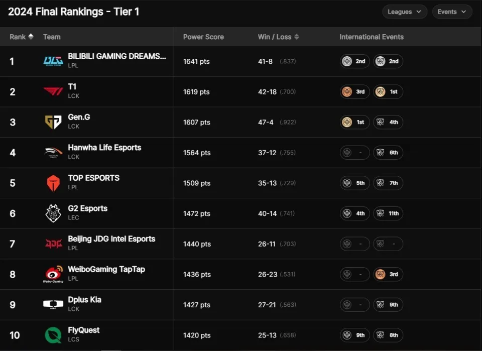 BLG在S14环球总决赛中,2-3不敌T1,无缘本年的天下冠军。而本年天下赛开赛之前,拳头官方发布了天下各大战队的气力排行榜,并且体现将根据天下赛的胜负举行实时调整。没想到就在决赛第二天,T1刚刚夺冠后,官方更新了环球战队排行榜,BLG居然排在天下第一的位置,刚夺冠的T1仅排第二。 详细的排名如下,BLG以1641分排名天下第一,背面标注了BLG在本年国际大赛的结果,MSI亚军和S14天下赛亚军。T1以1619分排名第二,本年古偶及大赛的结果是MSI季军和S14天下赛冠军。第三名是GEN,本年拿到了MSI冠军和S14天下赛殿军。第四名是HLE,第五名是TES,第六名是G2,第七名是JDG,第八名是WBG,第九名是DK,第十名是FLY,第十一名是LNG。 这份榜单主要是根据分数来排名的,分数要参考本年比赛的总体胜率,以及在国际大赛的荣誉综合考量后的结果,所以算是整年战力排名,BLG两个国际大赛亚军,而且尚有LPL冠军,综合来当作绩确实还不错。不过由于刚刚竣事了S14天下赛,BLG没能夺冠让很多LPL观众非常扫兴,所以这份排名看起来也很讽刺。 很多LPL观众也纷纷吐槽:官方为了热度,故意把BLG排在第一,是为了来岁造势,怕LPL真的凉了。也有人嘲讽:无冠强于五冠吗?刚刚输比赛,就排名天下第一,真的太幽默了。固然也有粉丝认为:BLG团体气力确实不弱,这次夺冠也就差一点点,渴望累积履历,来岁再加油吧。 有大概是不想要失去中国市场,所以决赛第二天BLG就冲上了榜首,但是在LPL观众看来,不光不能起到任何安慰的作用,反而让人感到很可笑。说白了评分冠军、战力冠军都没有任何意义,竞技比赛要看终极的比赛结果,好汉同盟最有代价的就是S赛的天下冠军,输了最关键的一场,战力排名再高也不能服众,先看看转会期BLG这边会有什么变更吧,本年已经竣事,来岁又是新的一年,大概会有新的渴望吧。 那么,对于这份榜单,你们有什么想说的吗?欢迎在批评区留言探究。 |