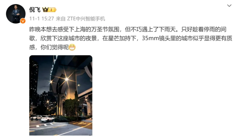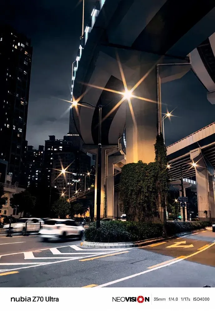 从倪飞公布的拍摄样张来看,努比亚Z70 Ultra支持拍摄星芒灯光结果。同时,团结照片的参数信息来看,新机预计将接纳可变光圈筹划、支持等效35mm镜头拍摄。
