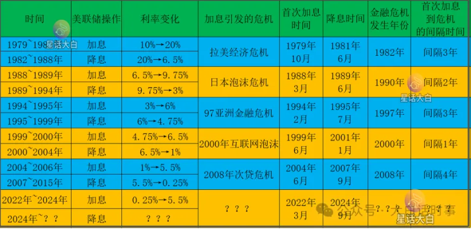 我已往两年多次梳理分析了美联储1980年以来,每次加息到5%以上利率,都会在初次加息后的2-4年内,发作金融危急,无一破例。