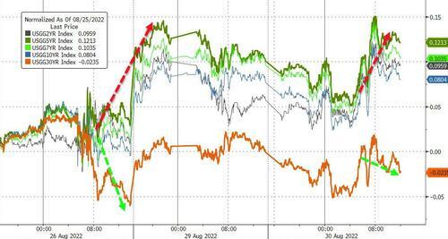 美国7月JOLTS职位空缺数凌驾1120万,是可用劳动力的两倍,暗示薪资压力不减。8月咨商会消耗者信心指数止步三个月连跌,现况指数自3月以来初次上涨,预期指数从9年最低反弹,但受访美国人对通胀担心保持高企,代表阑珊风险仍然存在。美国6月标普-凯斯席勒房价指数较上月涨幅降温,代表楼市一连出现利率走高之下的回调态势。德国8月通胀升至近50年最高。 西欧央行官员继承开释鹰派信号。纽约联储主席威廉姆斯称,需加息至限定性水平后维持一段时间,预计来岁不会降息。里士满联储主席提到“不吝统统代价”抗击通胀,但亚特兰大联储主席称,如果数据明确表现通胀正在放缓,美联储大概会“撤回”75个基点的暴力加息幅度。爱沙尼亚央行行长支持9月欧央行讨论加息75个基点。荷兰央行行长称不应清除将加息前置化的大概。 投资者关注周三公布的欧元区8月通胀初读数据,经济学家推测,与7月同比蹿升8.9%相比,8月欧元区通胀大概以9%的增幅创汗青新高,这将支持欧央行鹰派加息的市场预期。周五公布的美国8月非农就业数据也备受瞩目,大概提供美联储能否一连第三次加息75个基点的线索。 货币市场对美联储9月加息75个基点的押注进一步升至约77%,对欧洲央行于9月8日公布加息75个基点的押注仍凌驾50%,不外较周一近2/3的发生概率有所降温,上周押注仅为24%。 8月30日周二,西欧股市继承受到西欧央行即将睁开鹰派加息的预期打压,美股小幅高开后敏捷团体转跌,午盘前便齐跌超1%,石油领导大宗商品下跌,欧股午盘后也止涨转跌。 道指最深跌超450点或跌1.4%,失守3.2万点整数位。标普500指数最深跌1.6%并失守4000点。纳指最深跌近230点或跌1.9%,失守1.2万点。纳指100最深跌超240点或跌2%,罗素2000小盘股指数最深跌1.9%。 制止收盘,美股齐跌三日并革新一个月低位,标普大盘自7月28日以来初次跌破4000点,以及7月26日来初次失守50日均线。油价深跌令标普500能源指数跌4%,创两周来最大盘中跌幅: 标普500指数收跌44.45点,跌幅1.10%,报3986.16点。道指收跌308.12点,跌幅0.96%,报31790.87点。纳指收跌134.53点,跌幅1.12%,报11883.14点。纳斯达克100指数收跌1.13%,罗素2000小盘股指数跌1.5%。标普和道指8月累跌超2%,纳指跌超3%,标普夏季反弹砍半。 标普11个板块周二齐跌,能源板块收跌3.36%表现最差,原质料、工业、公用古迹、房地产、可选消耗、信息技能/科技板块至多跌超1.7%,金融板块跌0.42%跌幅最小。不外,能源和公用古迹在8月分别累涨2.7%和1.3%,是当月和整年迄今唯二累涨的板块,医疗保健和信息技能8月领跌,分别累跌5.1%和5.7%。 纳指较8月中旬高位跌10%,从上周五鲍威尔发言前跌超6%,标普、道指和纳指均失守50日均线 油企股在标普大盘和道指中领跌,盘中油服巨头哈里伯顿跌超5%,美孚和雪佛龙石油跌约3%,巴菲特青睐的西方石油,以及Diamondback Energy和马拉松石油等均跌超4%。美股铝板块走低,美国铝业跌近9%,世纪铝业跌超6%,美国铝业将部分淘汰挪威冶炼厂的产量应对能源本钱飙升。 对利率敏感的明星科技股齐跌。“元宇宙”Meta跌1.3%,连跌三日至6月22日来最低。亚马逊跌0.8%,苹果跌1.5%,均连跌三日至7月28日来最低。微软跌0.9%,谷歌母公司Alphabet跌0.4%,均连跌三日至7月26日来最低,奈飞跌1.8%,特斯拉跌2.5%,也创五周新低。 消息面上,奈飞否认昨日媒体对广告支持套餐月费7至9美元的报道,称仍处于早期规划阶段,尚未作出订价决定。特斯拉CEO马斯克第二次发布关照停止收购推特,但推特称关照“无效”,将继承推进按照原有协议的收购要约,推特跌1.8%,创7月25日来的五周最低。 芯片股同样普跌。费城半导体指数跌超1%委曲守住2700点整数位,连跌三日,靠近抹去7月18日以来涨幅。英特尔跌2%再创六年低位,AMD跌近2%,连跌三日至7月26日来最低。英伟达跌超2%,连跌三日至7月14日来最低。花旗预计费城半导体指数再跌25%至新低,来由是半导体行业“正进入十年来最严峻的阑珊期”,宏观经济不佳和库存累计都有损企业红利。VanEck Semiconductor ETF跌超1%,本年迄今跌约30%,深陷技能位熊市。 其他变动较大的重点个股包罗: 交际媒体公司Snap跌2.5%至一个月新低,其操持裁人20%,二季度财报好于预期但仍亏损,担心广告市场下滑。 3C零售巨头百思买逆市涨近2%,二季度财报超预期且维持整年指引,同店贩卖额降幅小于预期。不外,公司预警消耗者淘汰非须要付出,二季度贩卖额同比降约13%,7月已下调解年推测。 近期大涨的散户抱团股3B家居盘初涨超13%后转跌超9%,回吐昨日近半涨幅,将于嫡发布业务和战略更新,此前曾在8月股价翻倍,已往12个月中仍跌超53%、股价砍半。 美国最大光伏面板制造商First Solar最高涨7%,革新十一年最高。公司将投资12亿美元在美国新建一家光伏面板工厂并升级现有制造办法,受益于近期通过的《通胀低落法案》。 电动汽车初创公司Lucid和Nikola准备通过发行新股额外融资,分别跌超6%和跌超9%。被称为“特斯拉劲敌”之一的Lucid将有权在三年内发行高达80亿美元新股,Nikola操持按照现行市场代价发行股票筹集最多4亿美元。 加州基于大麻的烟草公司Hempacco(HPCO)美国IPO首日开盘上涨533.33%,报38美元,此前给出的IPO发行价为每股6美元,日内最高涨近600%,收涨近30%,盘后跌超5%。 热门中概跟随美股大盘走低。中概ETF KWEB跌2.9%,CQQQ跌2.7%,纳斯达克金龙中国指数(HXC)跌近2%。纳斯达克100四只成份股中,京东跌1.3%,网易