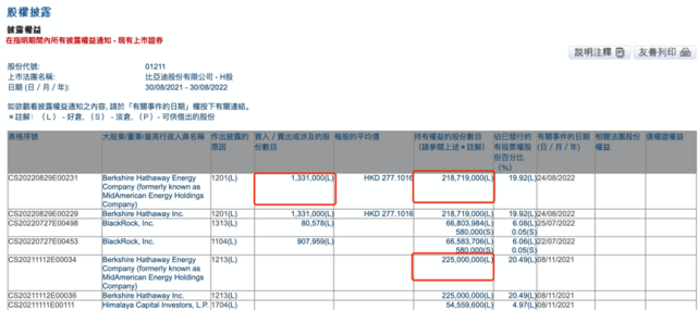 此前的市场推测得到印证,巴菲特持股14年来初次减持了比亚迪。 8月30日,港交所文件表现,巴菲特旗下的伯克希尔哈撒韦在8月24日出售了133万股比亚迪H股,均匀代价277.1016港元/股,以此盘算这笔减持套现近3.69亿港元。 实际上,巴菲特减持的并不止133万股。据港交所数据,8月24日,伯克希尔哈撒韦持有的股份数量降至2.19亿股,占已发行的有投票权的股份比例降至19.92%。而在比亚迪半年报中,克制6月30日,伯克希尔哈撒韦持股数量仍为2.25亿股。这意味着在两个月内,伯克希尔哈撒韦实际累计减持了628.1万股。 根据港交所披露易规定,大股东增减持股票只有高出某个整数百分比时,才必要作出披露。这也是为何上述文件中只披露了133万股这笔减持的缘故原由。 这批减持此前已有征兆。7月12日的港交所文件表现,花旗银行持有比亚迪的股份增长了2.25亿股,终极持股到达3.89亿股。由于这部门增量与伯克希尔哈撒韦彼时的持股同等,市场推测巴菲特将其持有的比亚迪股份转让给了花旗银行,是在为减持做准备。听说导致当日比亚迪A股跌4.72%;港股大跌11.93%。 其时比亚迪否认了减持听说,并称根据香港联交所及证监会干系规则,大股东减持需举行权益申报,香港联交所权益披露平台未表现减持信息。 但现在看来,巴菲特确实出现了减持动作。市场还担心后续会有更多减持。受此影响,8月30日晚间比亚迪ADR已经跌超8%。 巴菲特在比亚迪的投资已经劳绩颇丰。早在2008年9月,巴菲特通过伯克希尔哈撒韦以8港元/股的代价认购2.25亿股比亚迪H股,耗资约18亿港元。按照最新263港元/股的收盘价,巴菲特持仓增值已近33倍,现有的2.19亿股代价达576亿港元。 伯克希尔哈撒韦在刚刚已往的二季度出现亏损。财报表现,公司二季度归属于股东的净亏损为 438 亿美元,客岁同期为净利润 280.94 亿美元。这归咎于公司二季度在投资和衍生品方面出现了 530 亿美元的亏损,此中包罗苹果公司、美国银行和美国运通公司三大持股的跌幅凌驾 21%,而客岁同期这项科目为收益 273.94 亿美元。 在新能源车热销拉动下,比亚迪则处在业绩高速增恒久。半年报表现,公司上半年实现业务收入1506.07亿元,同比增长65.71%;实现归母净利润35.95亿元,同比增长206.35%。这一效果创下积年同期新高,而且净利润已凌驾了客岁整年。7月比亚迪新能源车贩卖16.25万辆,再度革新记载。 汽车干系业务已经成为比亚迪紧张的业绩驱动力,这部门营收占比由客岁同期的52.2%提升至72.55%;而手机部件干系业务固然营收下滑,但对总体业绩的影响渐渐减小。 在上半年原质料代价高涨的压力下,比亚迪的毛利率仍略受影响。上半年汽车干系产物毛利率为16.3%,同比下滑1.73个百分点。 随着提价传导本钱压力,市场预计比亚迪红利本领有望改善。东吴证券预计,比亚迪二季度单车红利提升至6000元,下半年有望进一步提升至7000-8000元,整年单车利润近6000元,同增近2倍。预计整年销量凌驾170万辆。 值得留意的是,陪同着越来越多车型麋集上市,下半年的新能源汽车市场竞争也会更加猛烈。比亚迪则将眼光投向外洋市场,近期相继公布进军日本、德国、瑞典等国家。 (责编:张骞爻) 这些,用户都在看 |