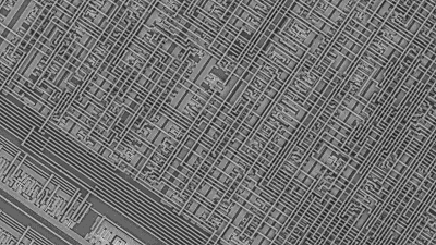 CPU外观 没错,都是立体的,有许多许多层,密密麻麻,就像一个超级迷宫,也像一座未来都会。 |